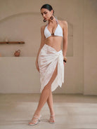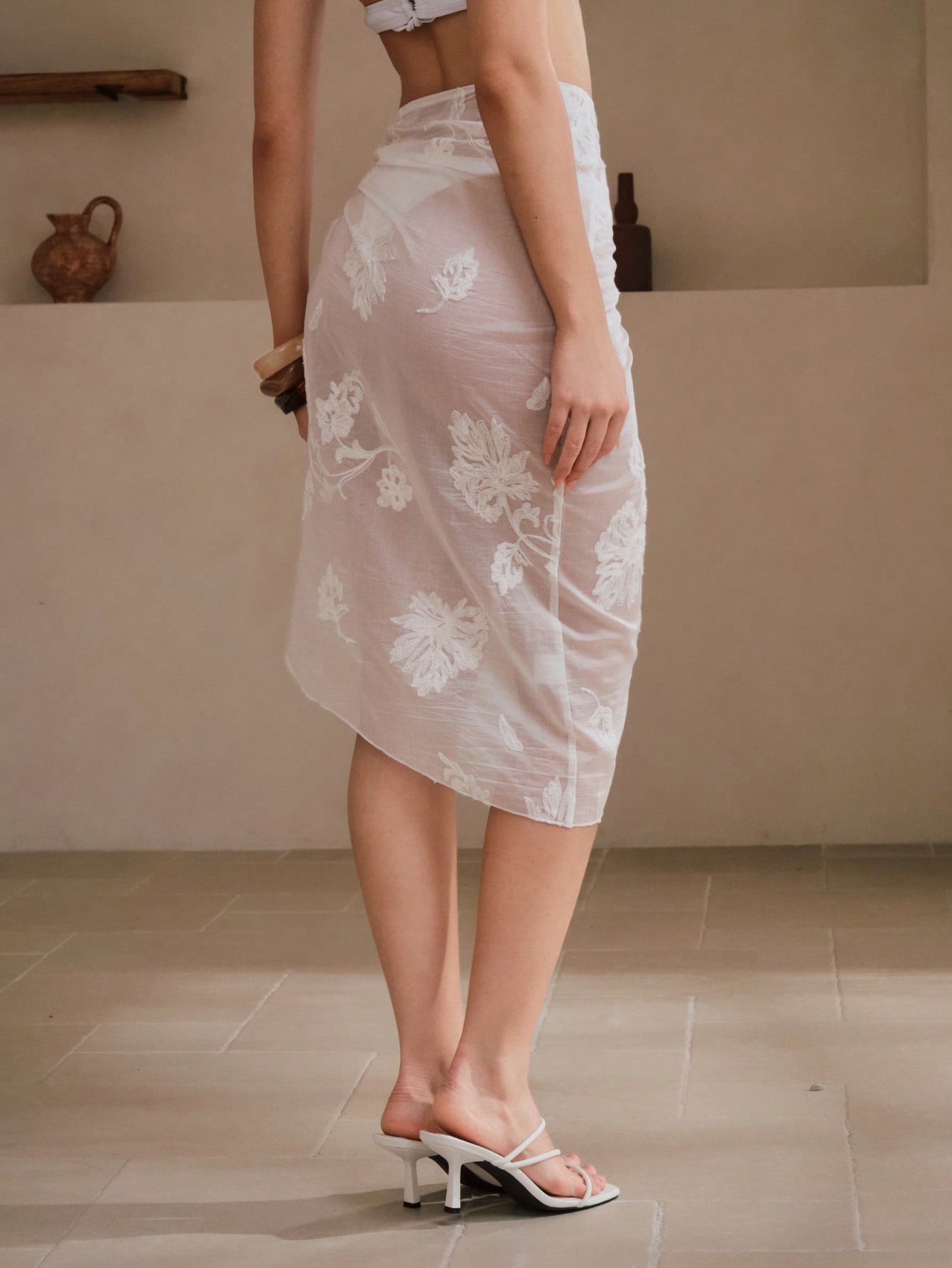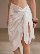 Swim Oasis Floral Embroidery Cover-Up Skirt, Vacation Style For Summer