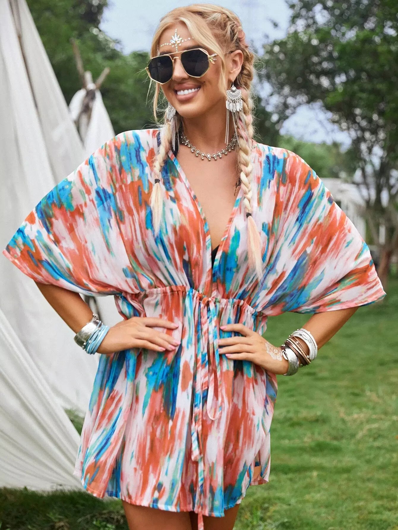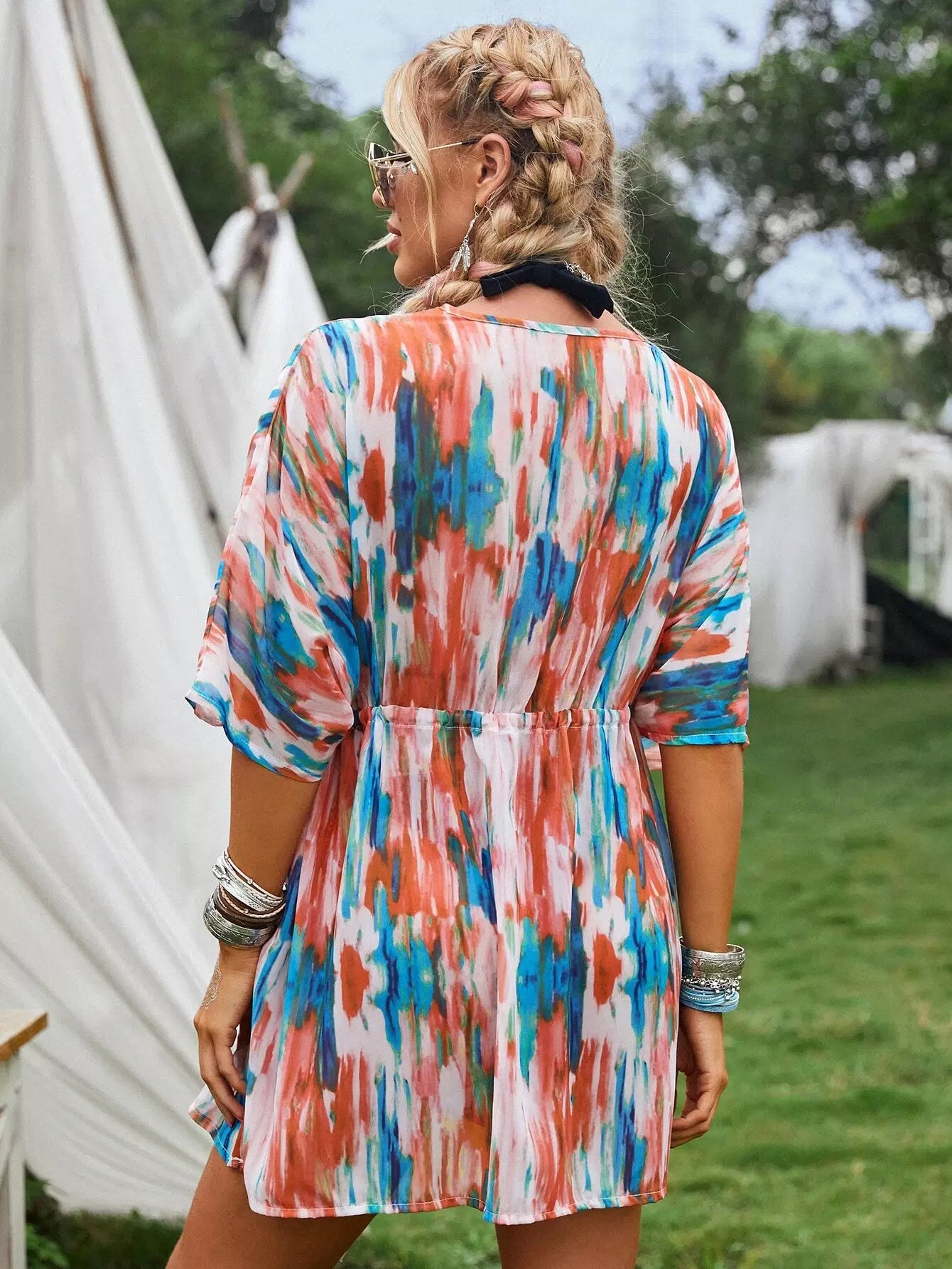 Tie Dye Drawstring Cover Up