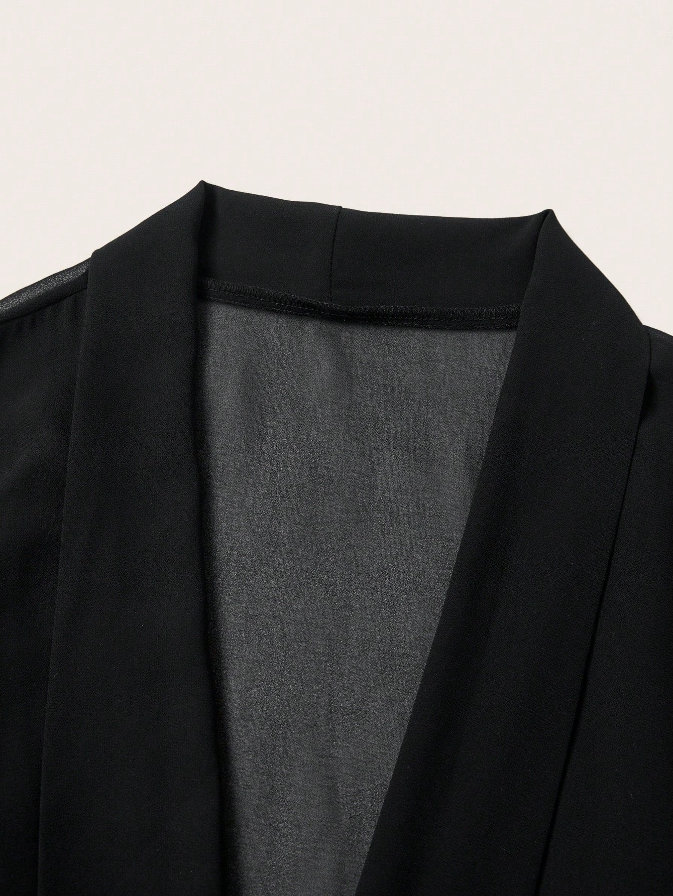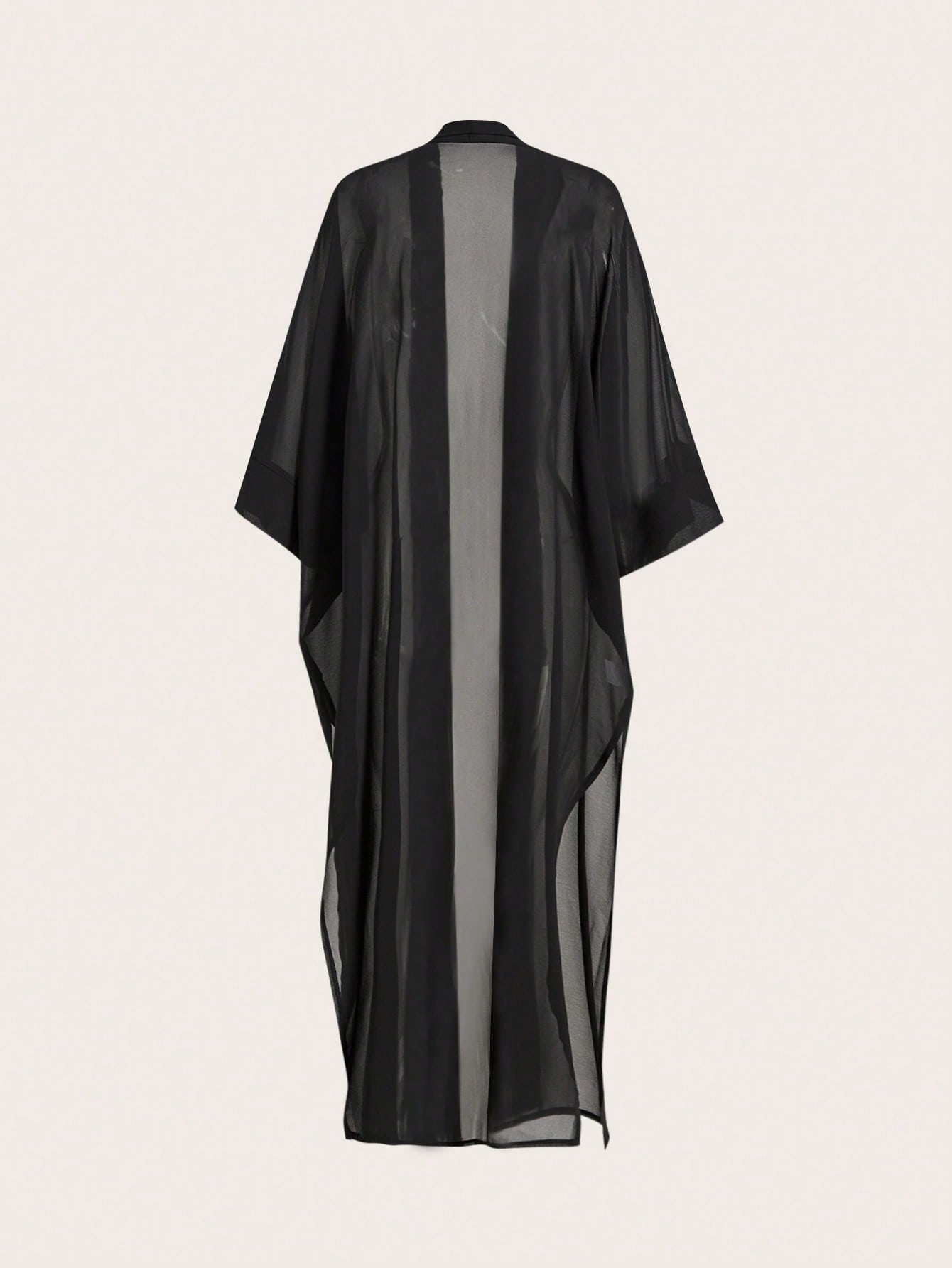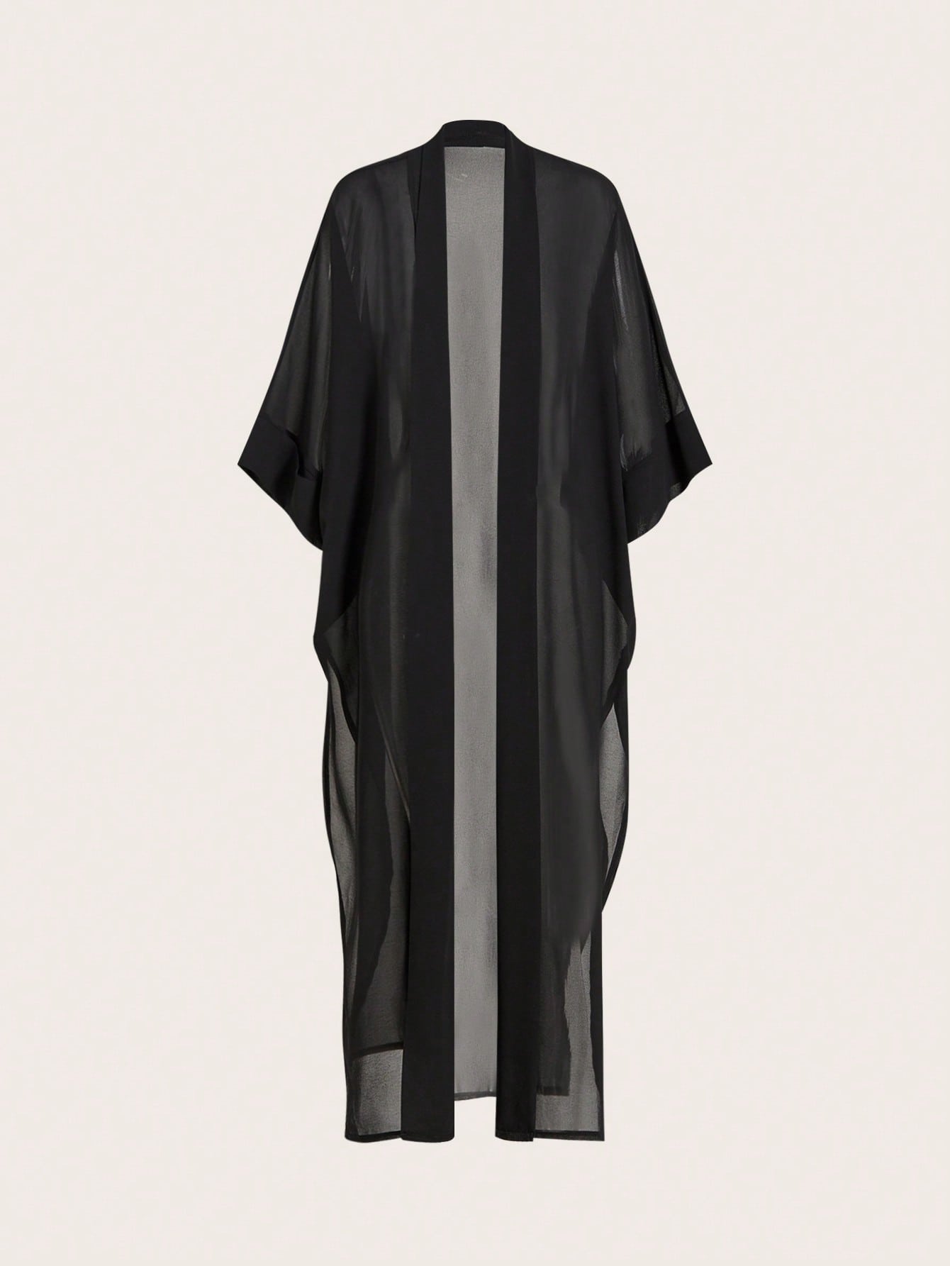 Swim Chiccia Women Summer Beach Solid Sheer Black Kimono