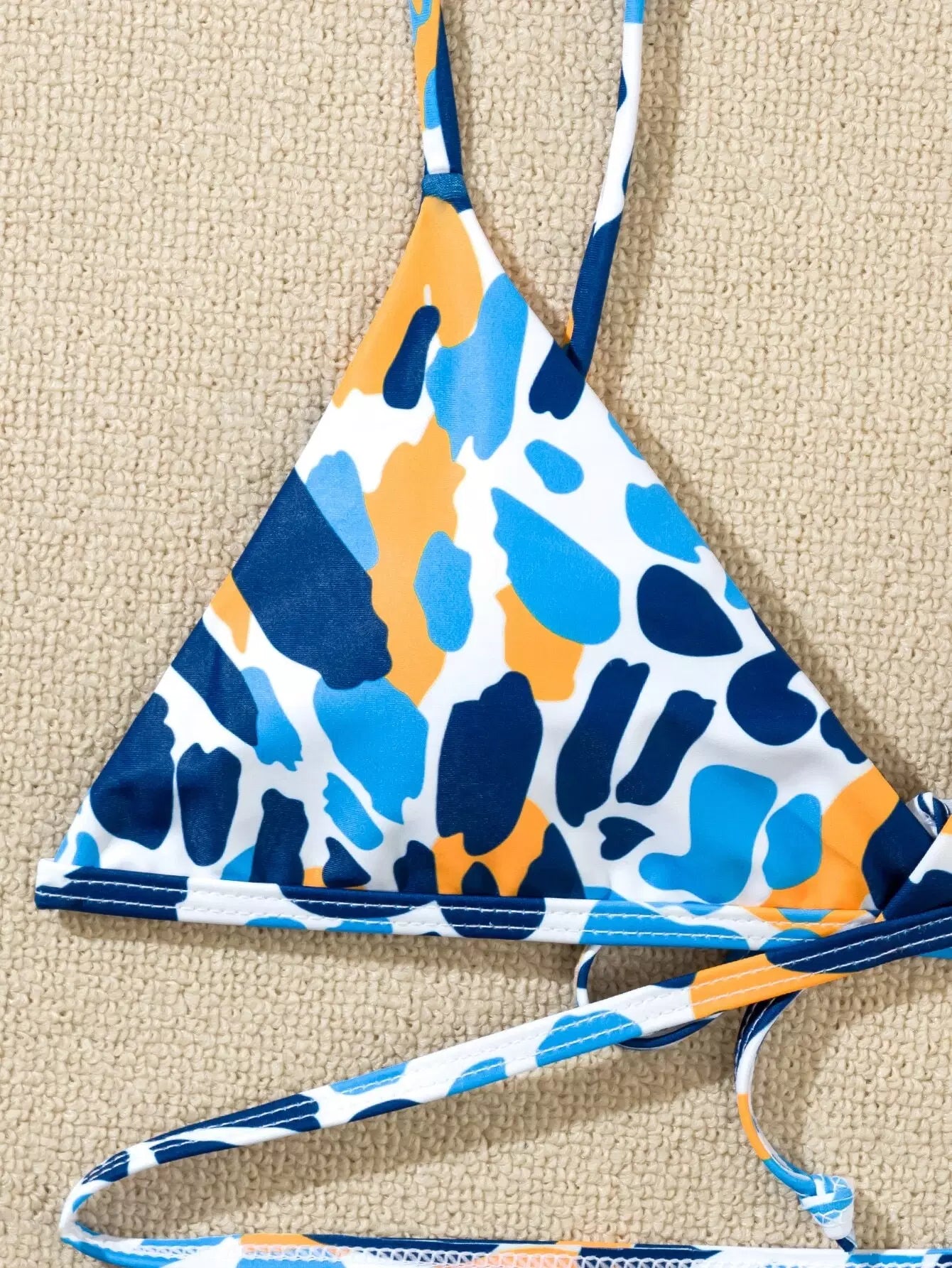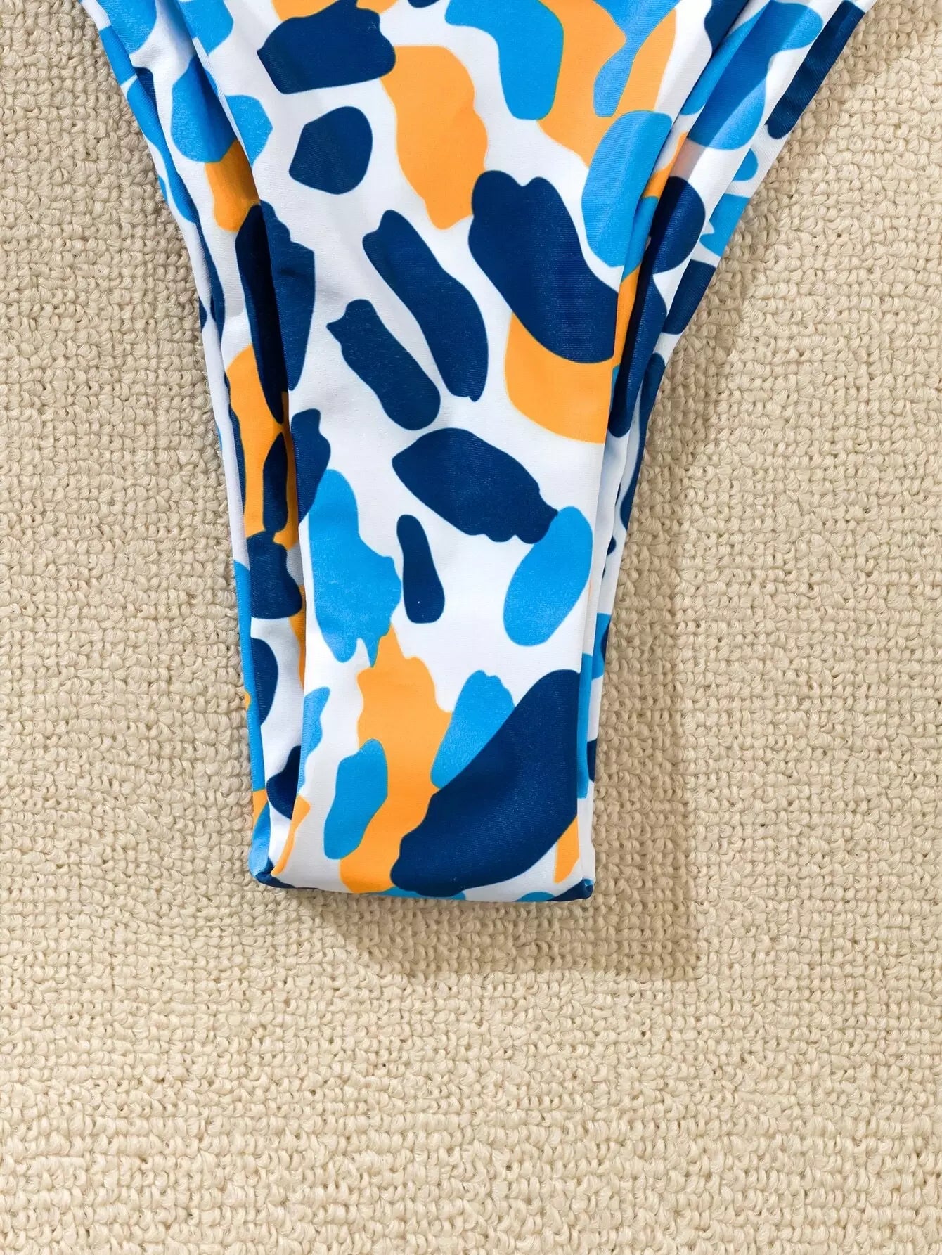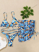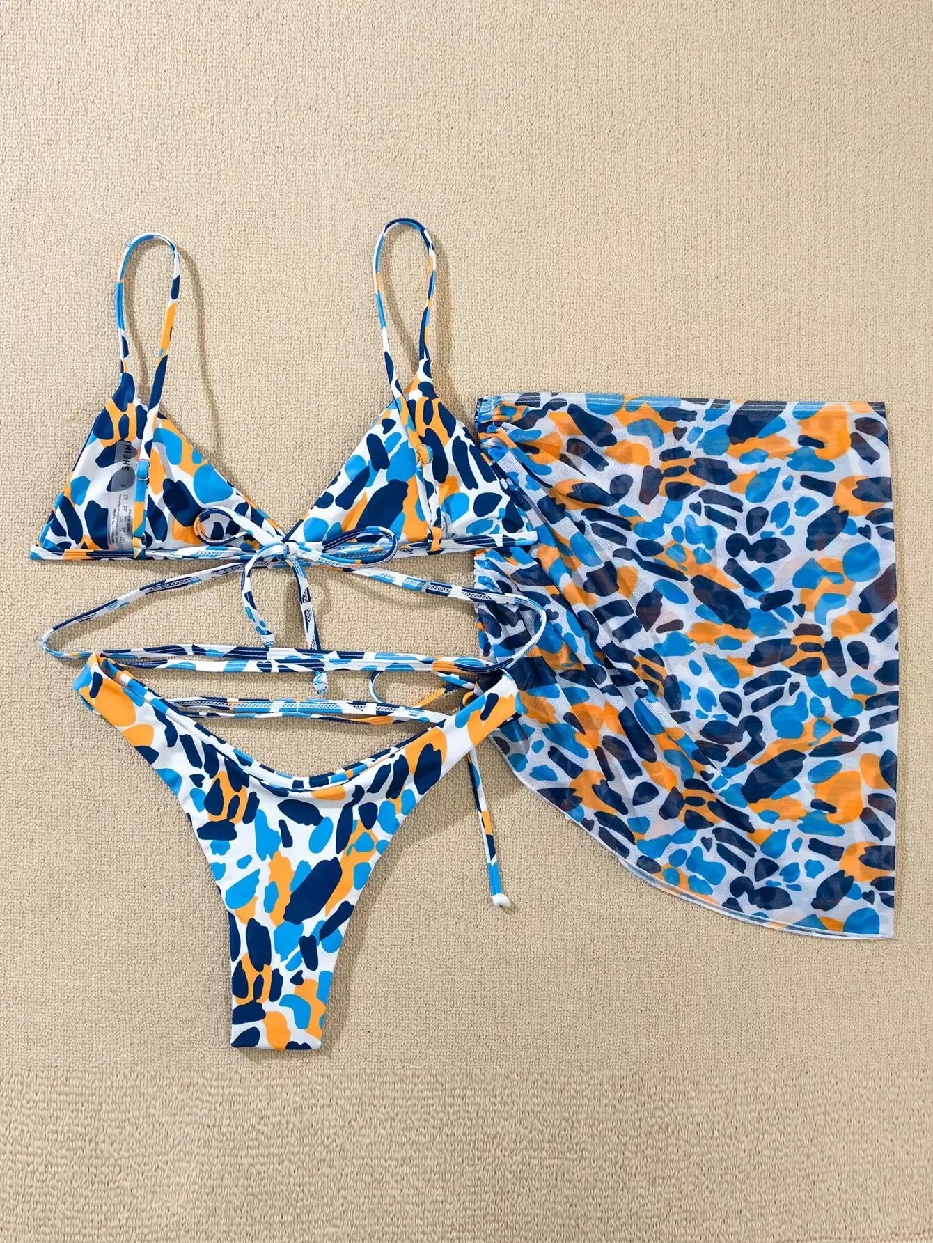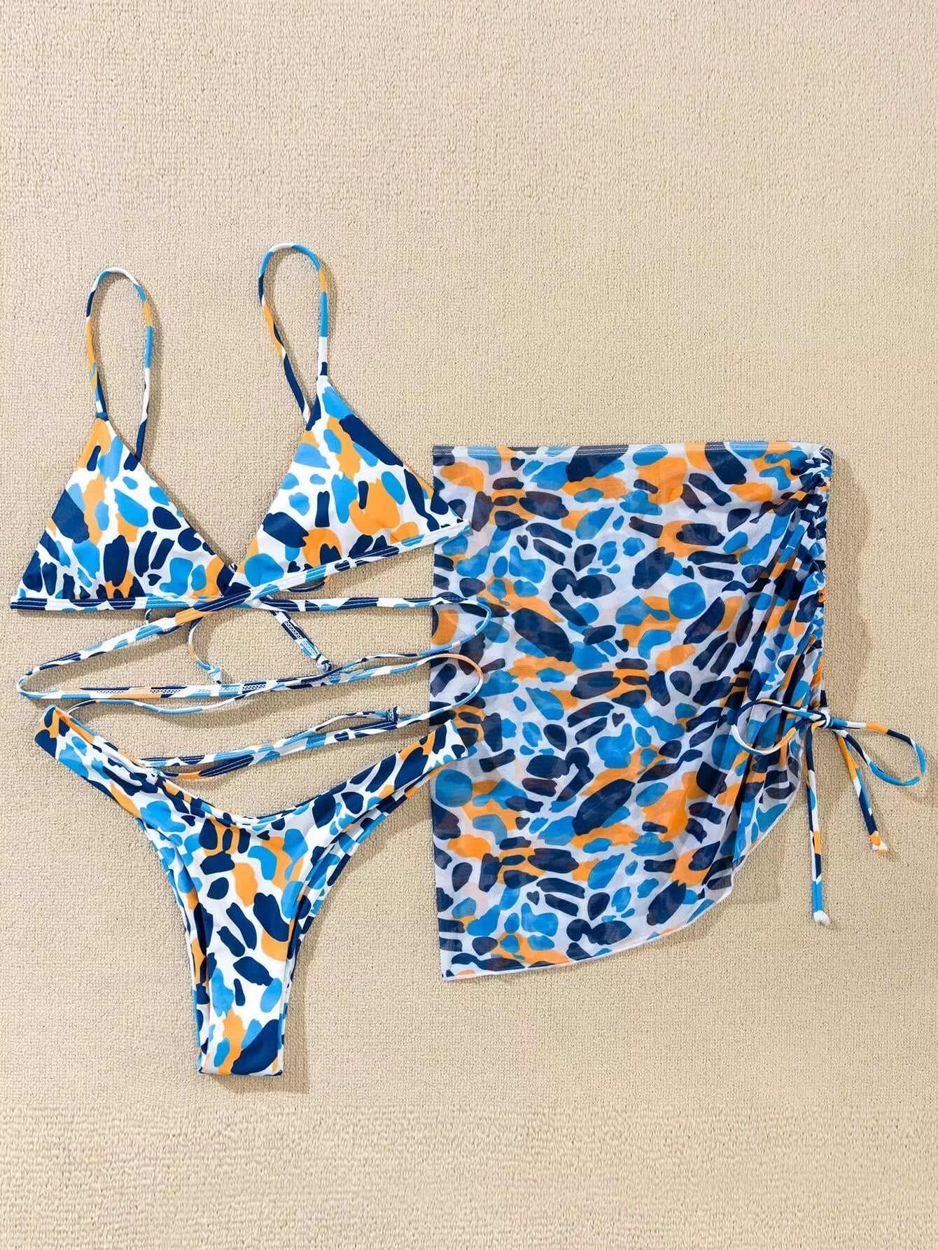 3pack Allover Graphic Bikini Swimsuit With Beach Skirt