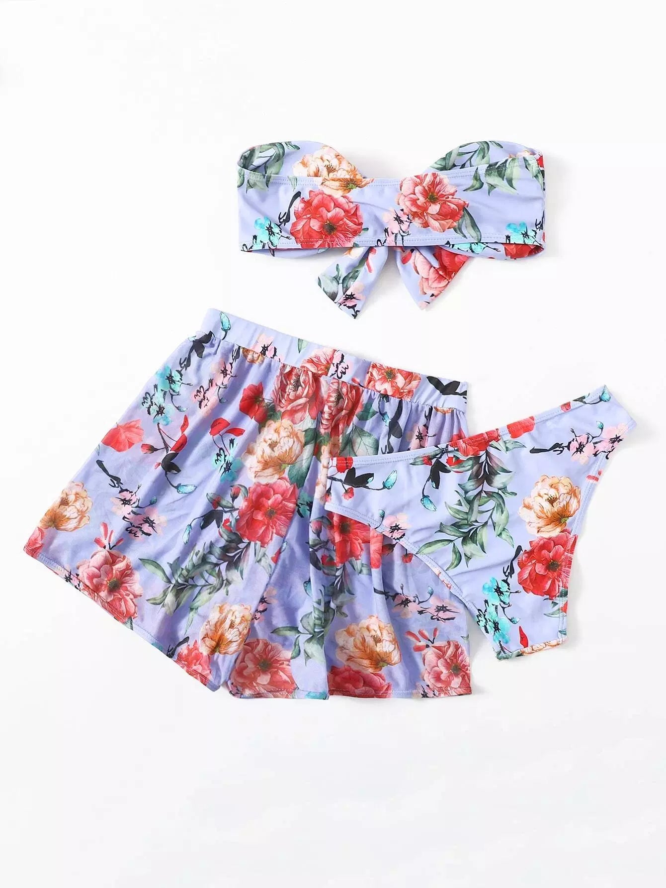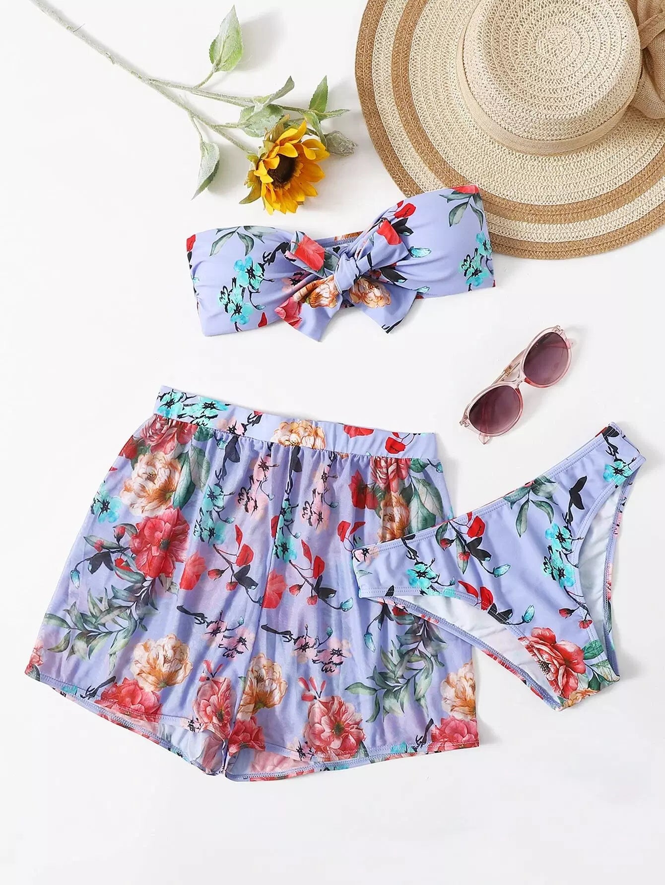 3pack Floral Knot Front Bandeau Bikini Swimsuit