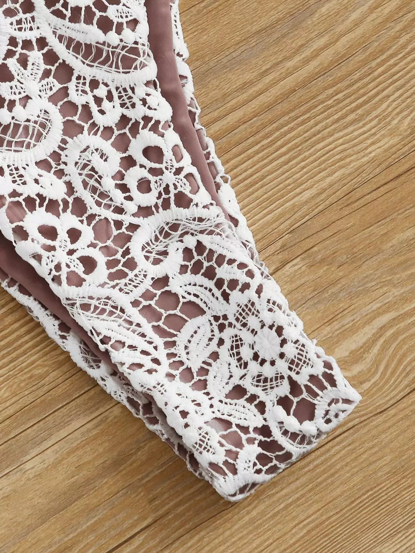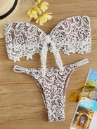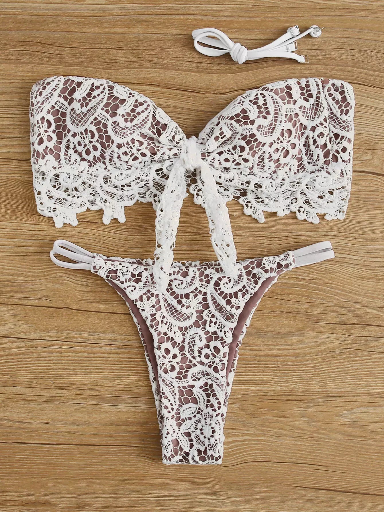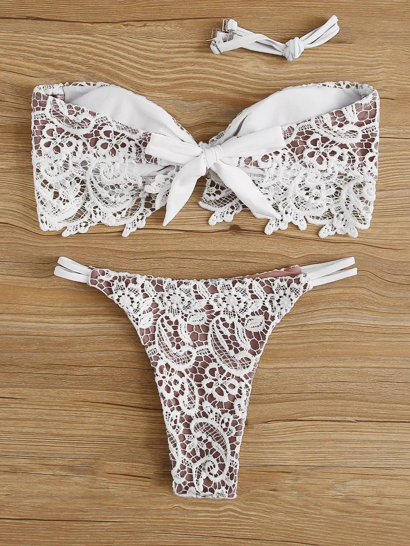 Contrast Lace Knot Front Thong Bikini Swimsuit