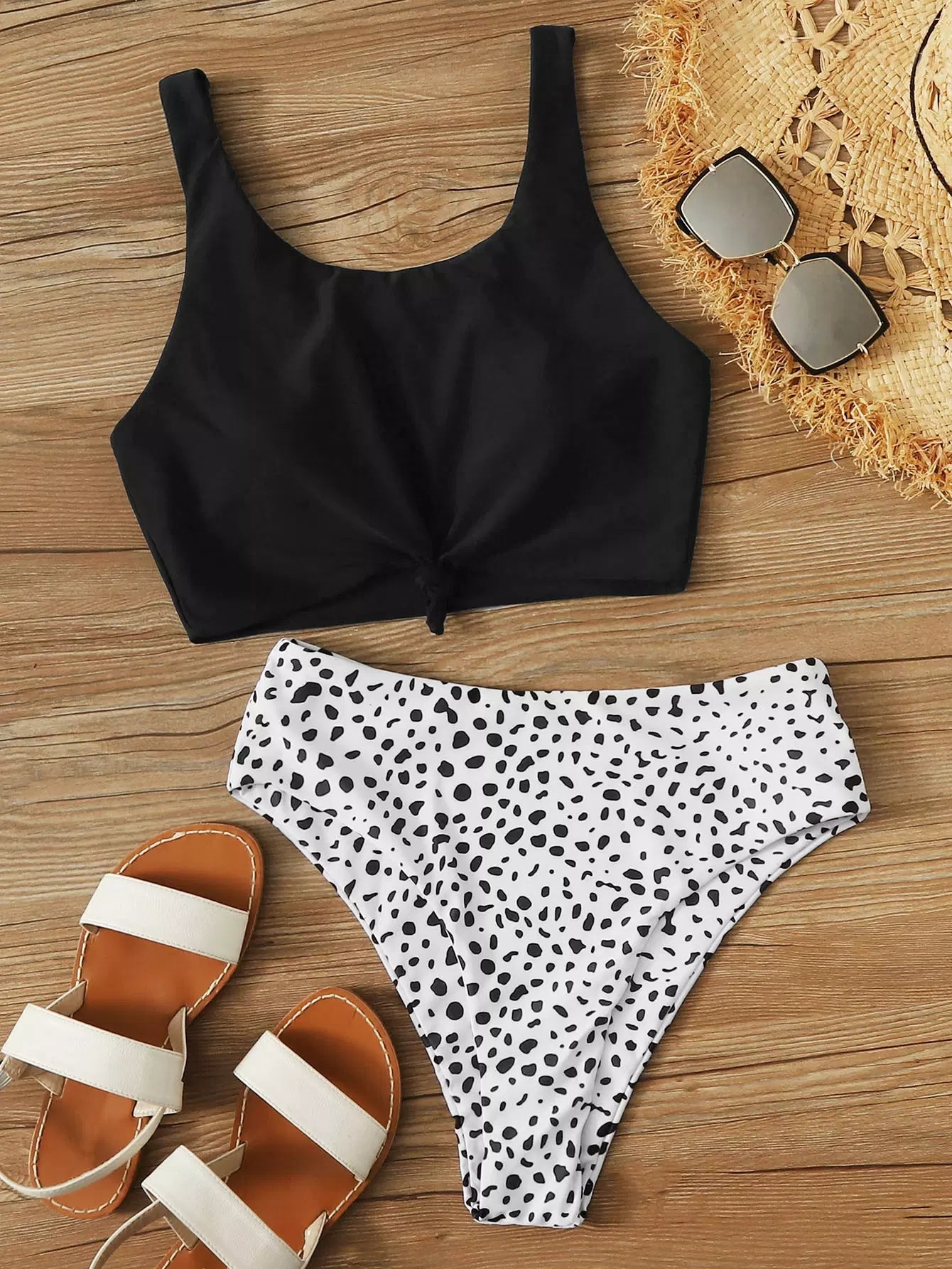 Dalmatian Knot Detail High Waisted Bikini Swimsuit