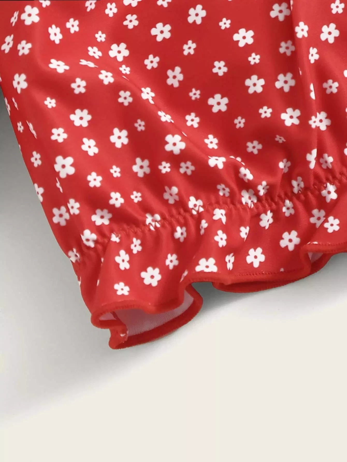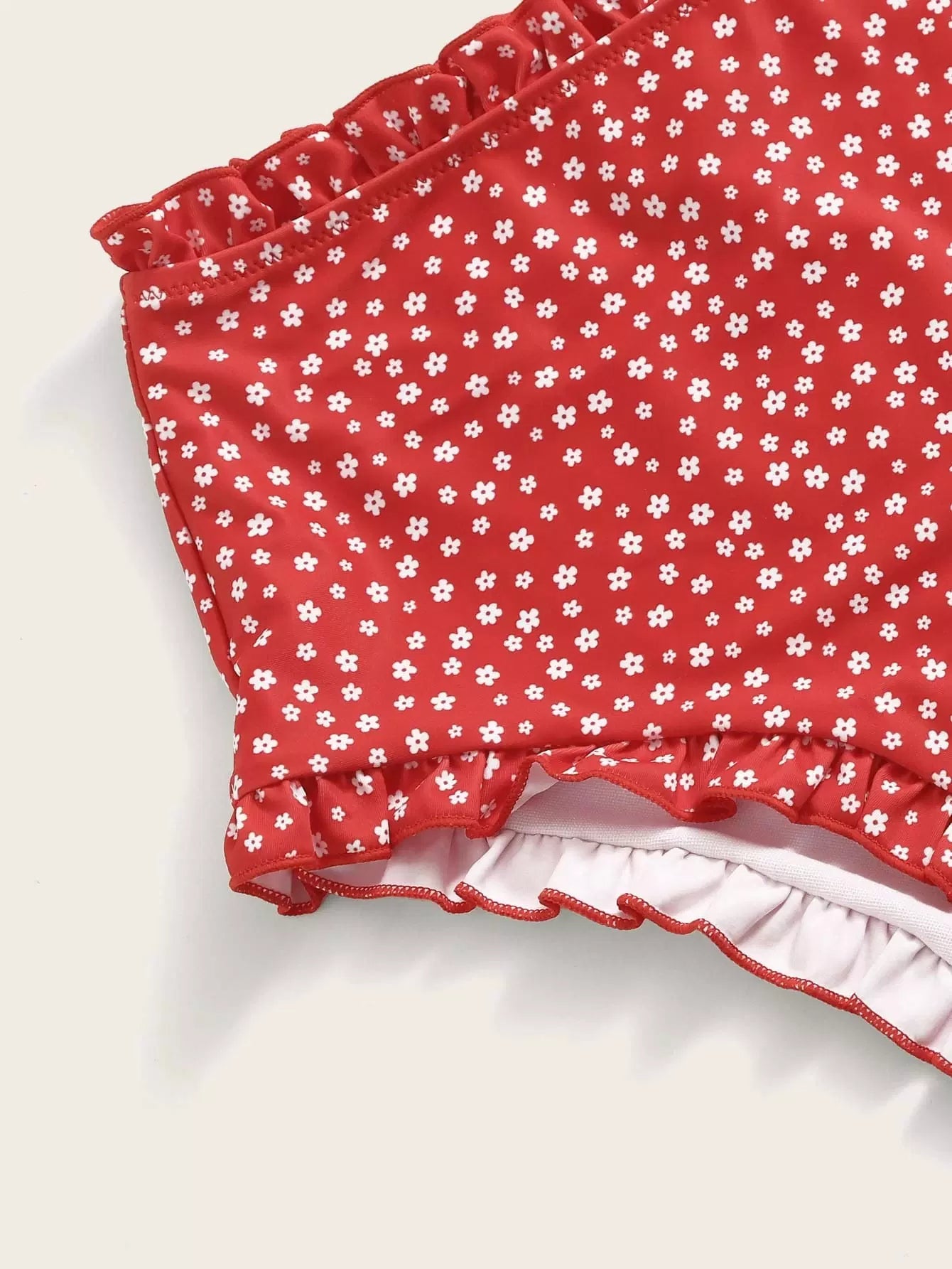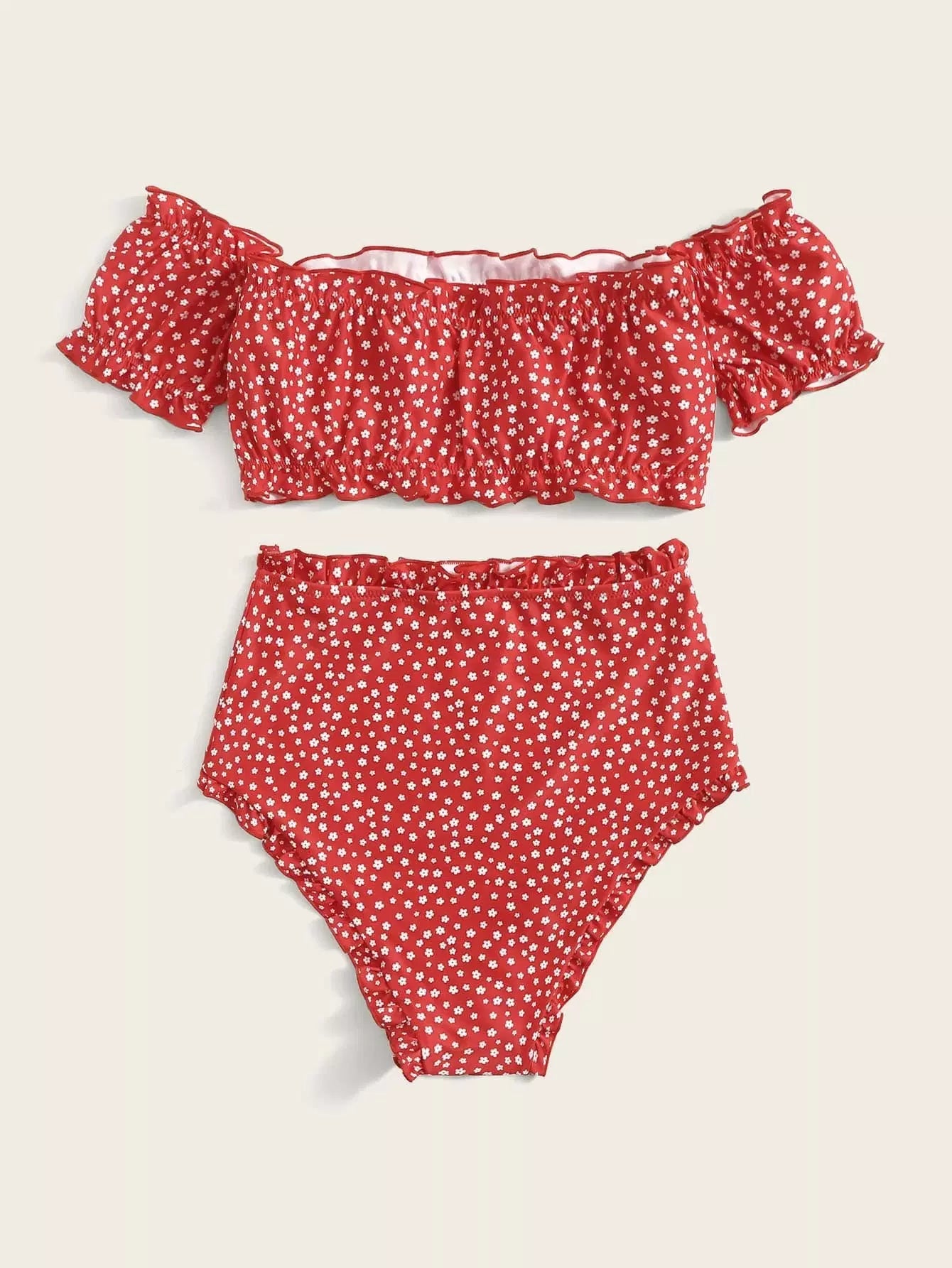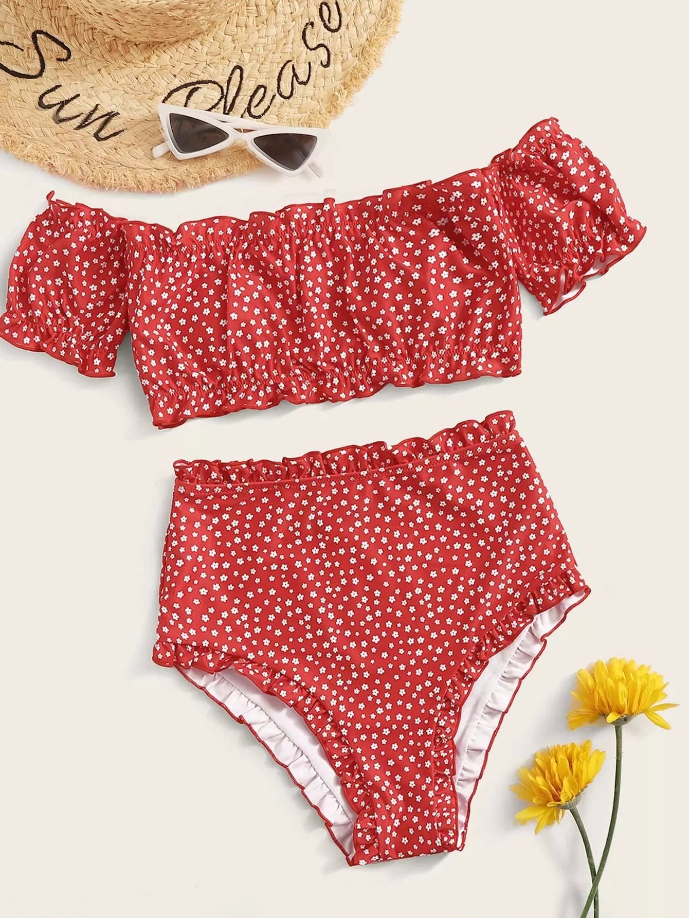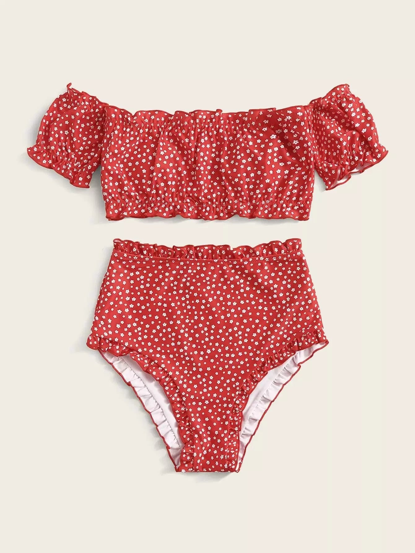 Ditsy Floral Frill Trim Bardot Bikini Swimsuit