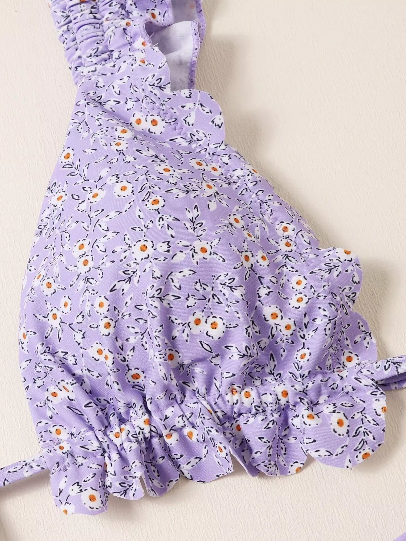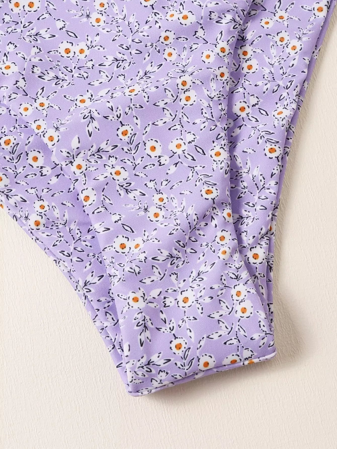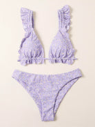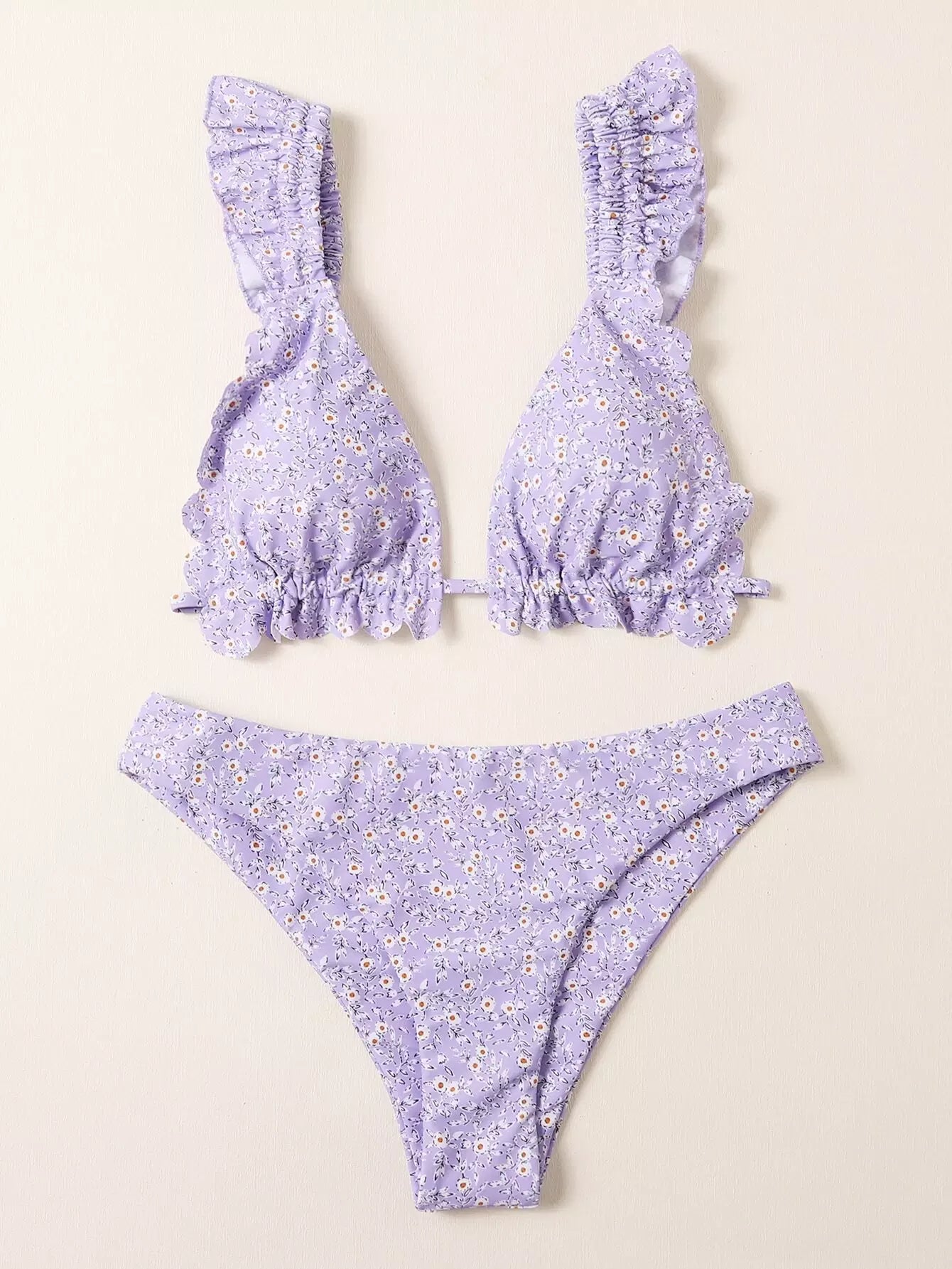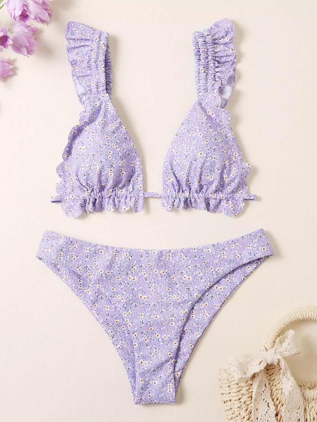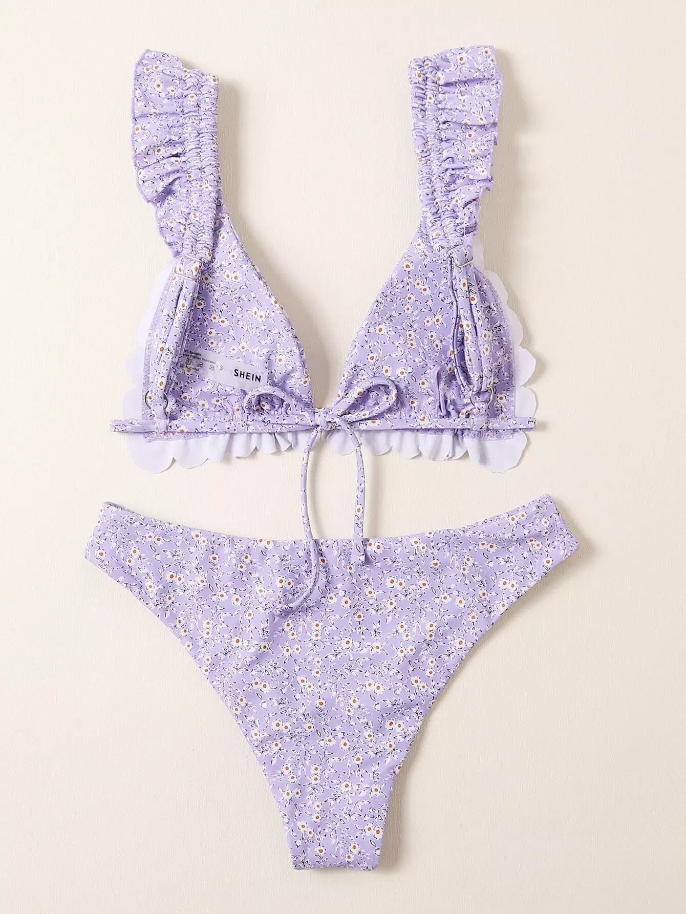 Ditsy Floral Scallop Trim Triangle Bikini Swimsuit