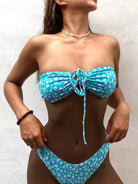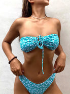 Ditsy Floral Tie Front Bandeau Bikini Swimsuit