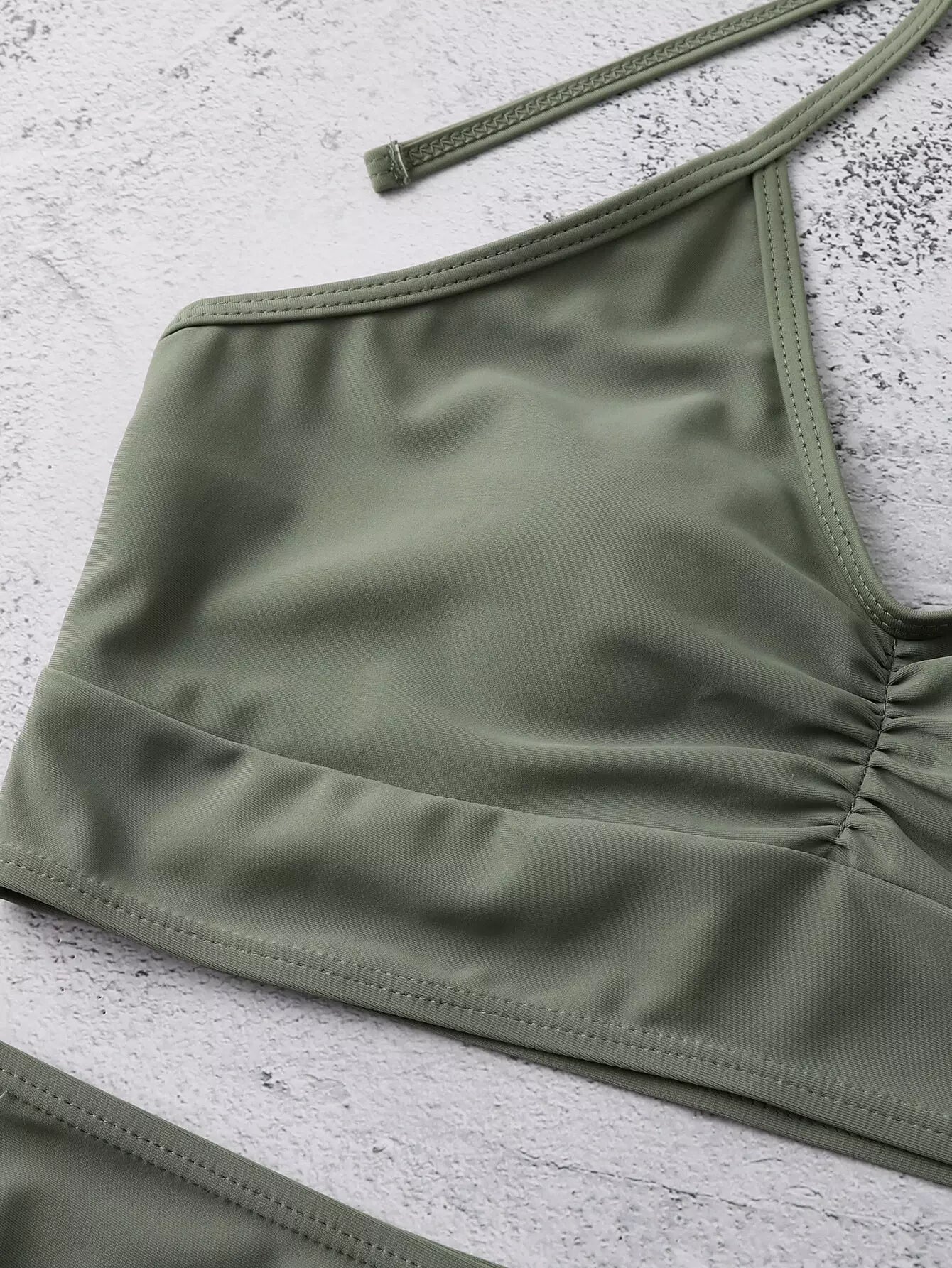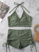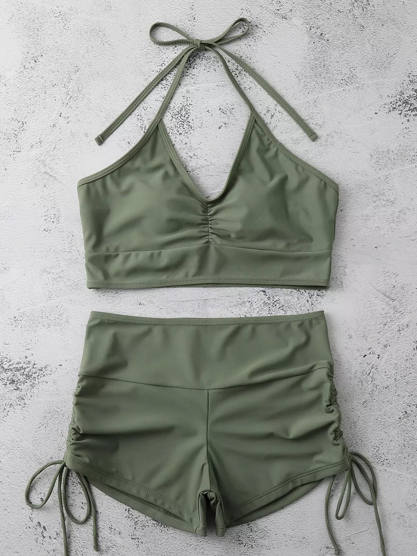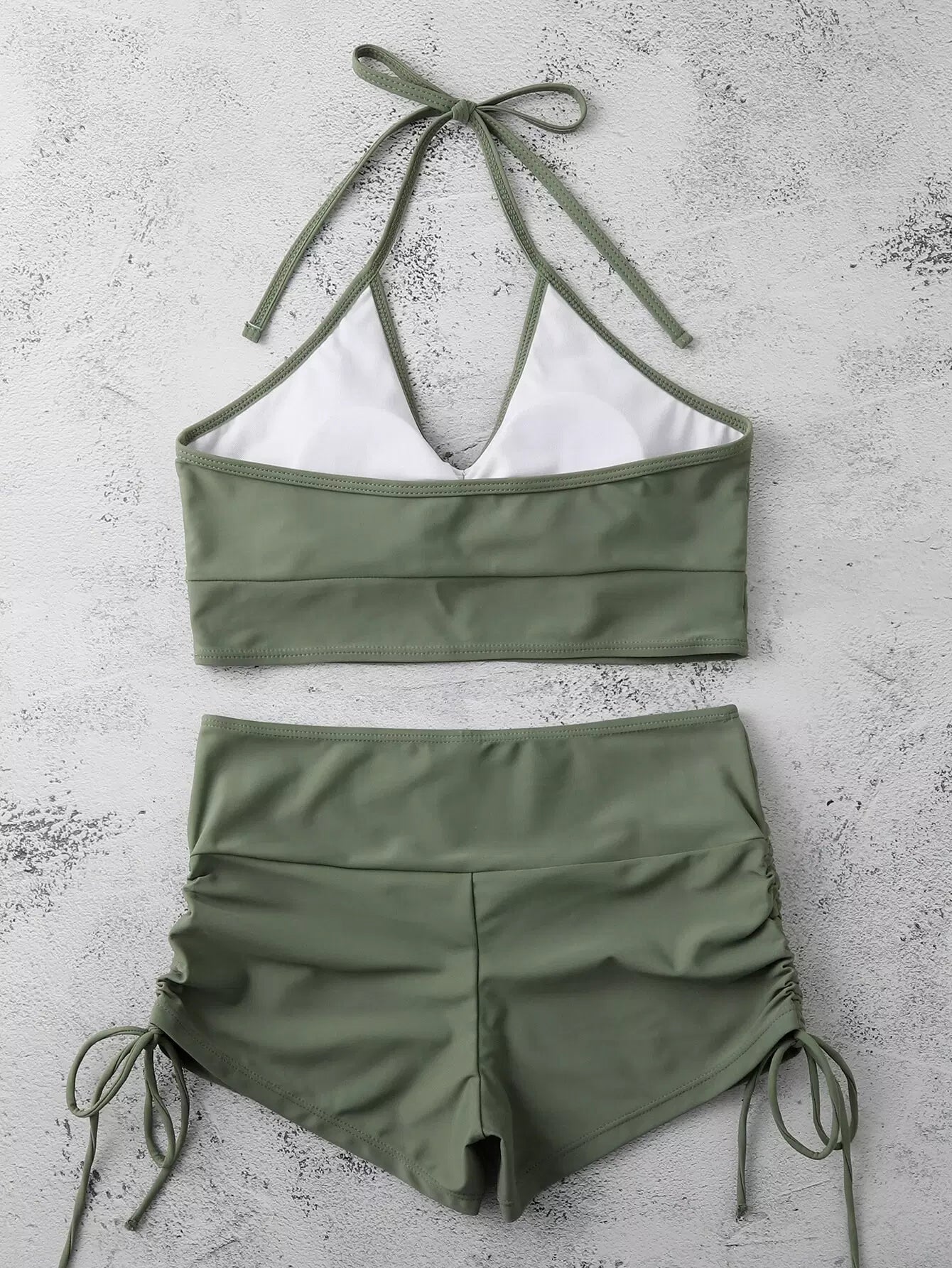 Drawstring Side Halter Shorts Bikini Swimsuit