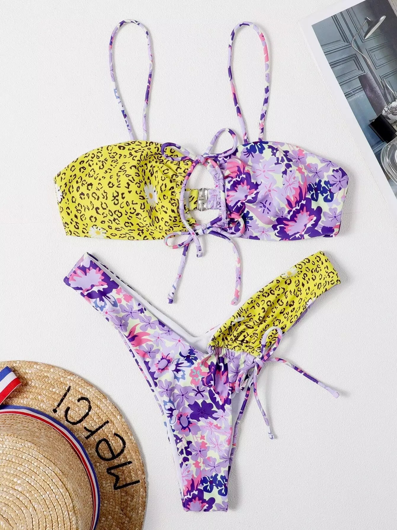 Floral & Leopard High Cut Bikini Swimsuit