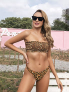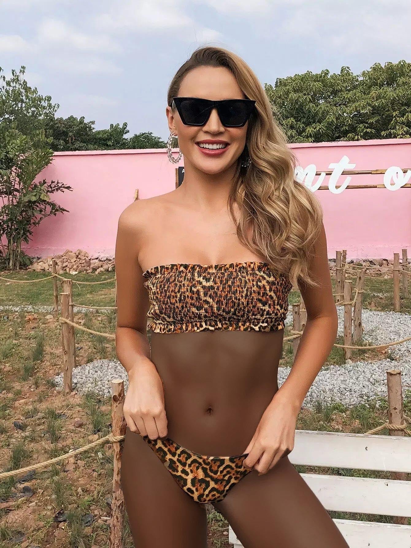 Leopard Smocked Frill Bandeau Bikini Swimsuit