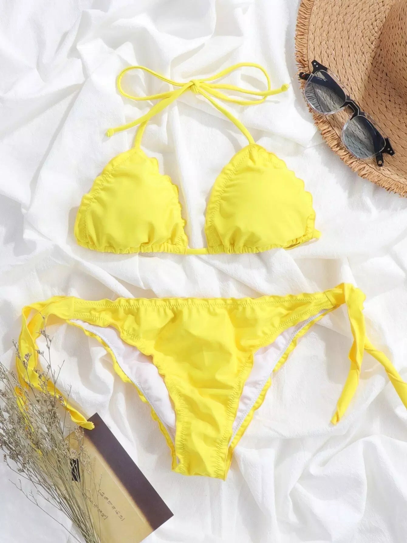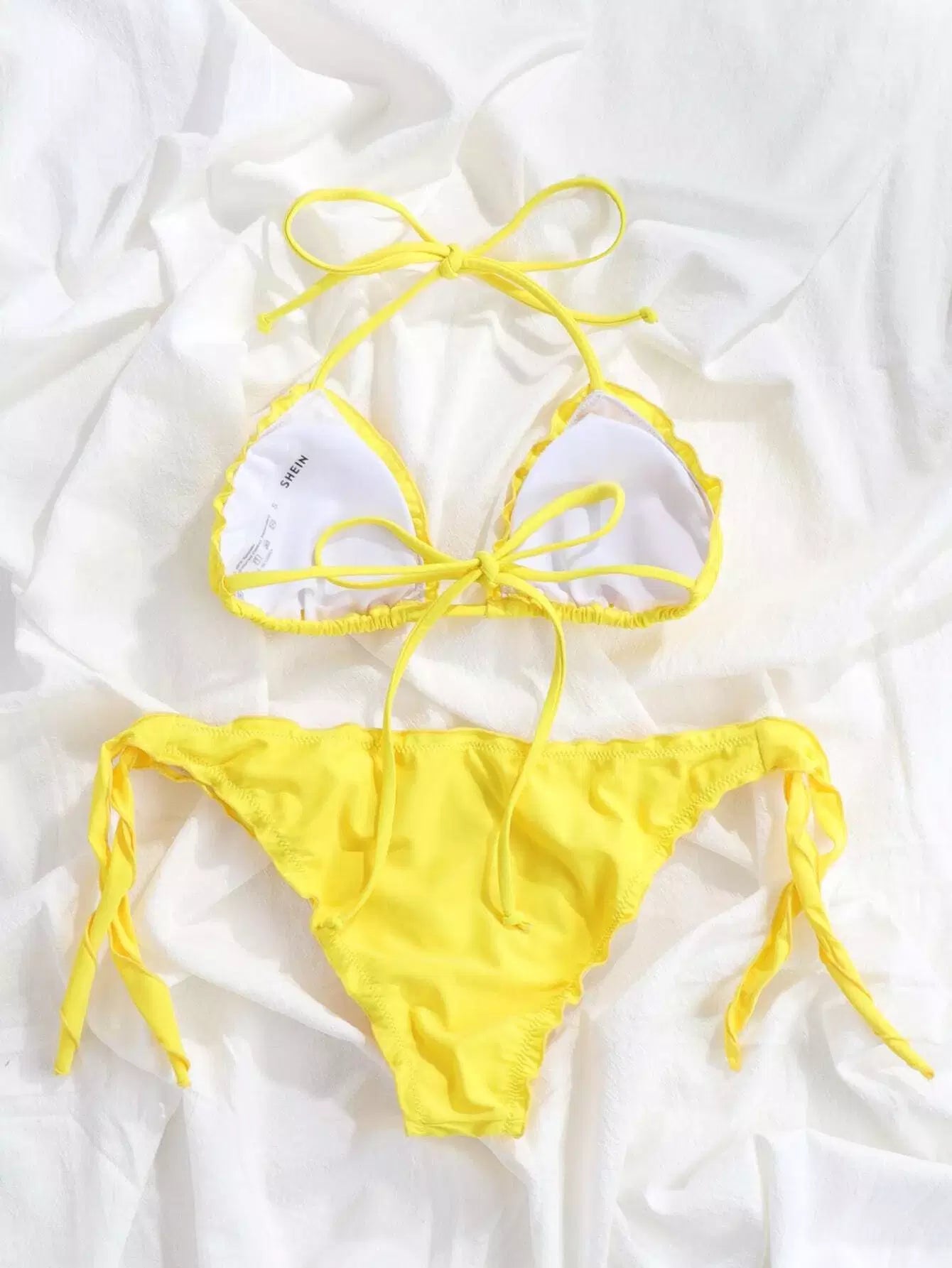 Lettuce Trim Triangle Tie Side Bikini Swimsuit