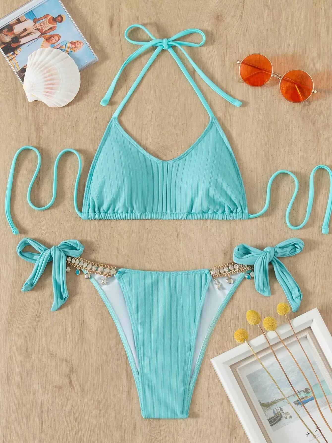 Rhinestone Decor Chain Linked Bikini Swimsuit