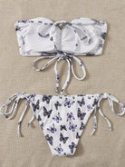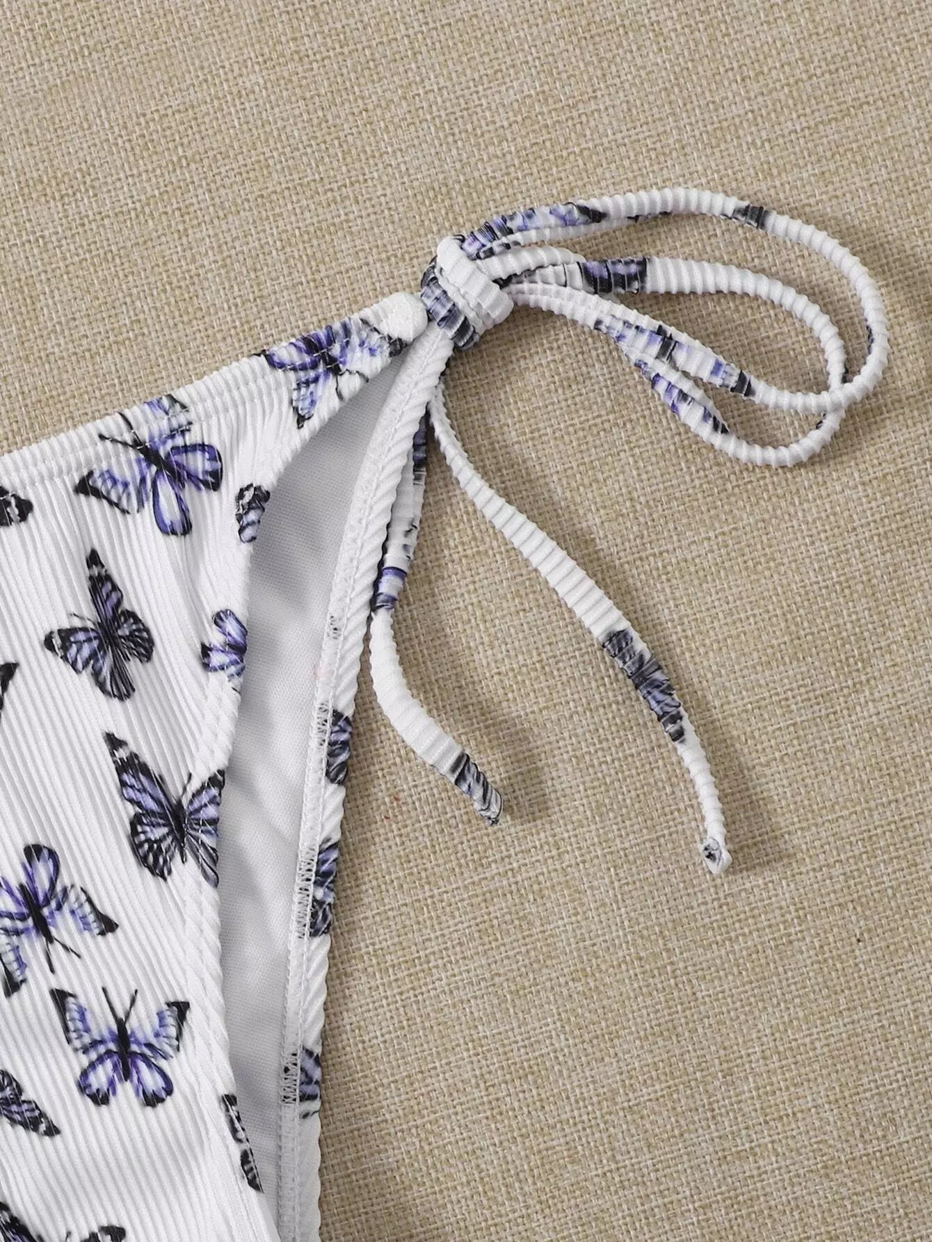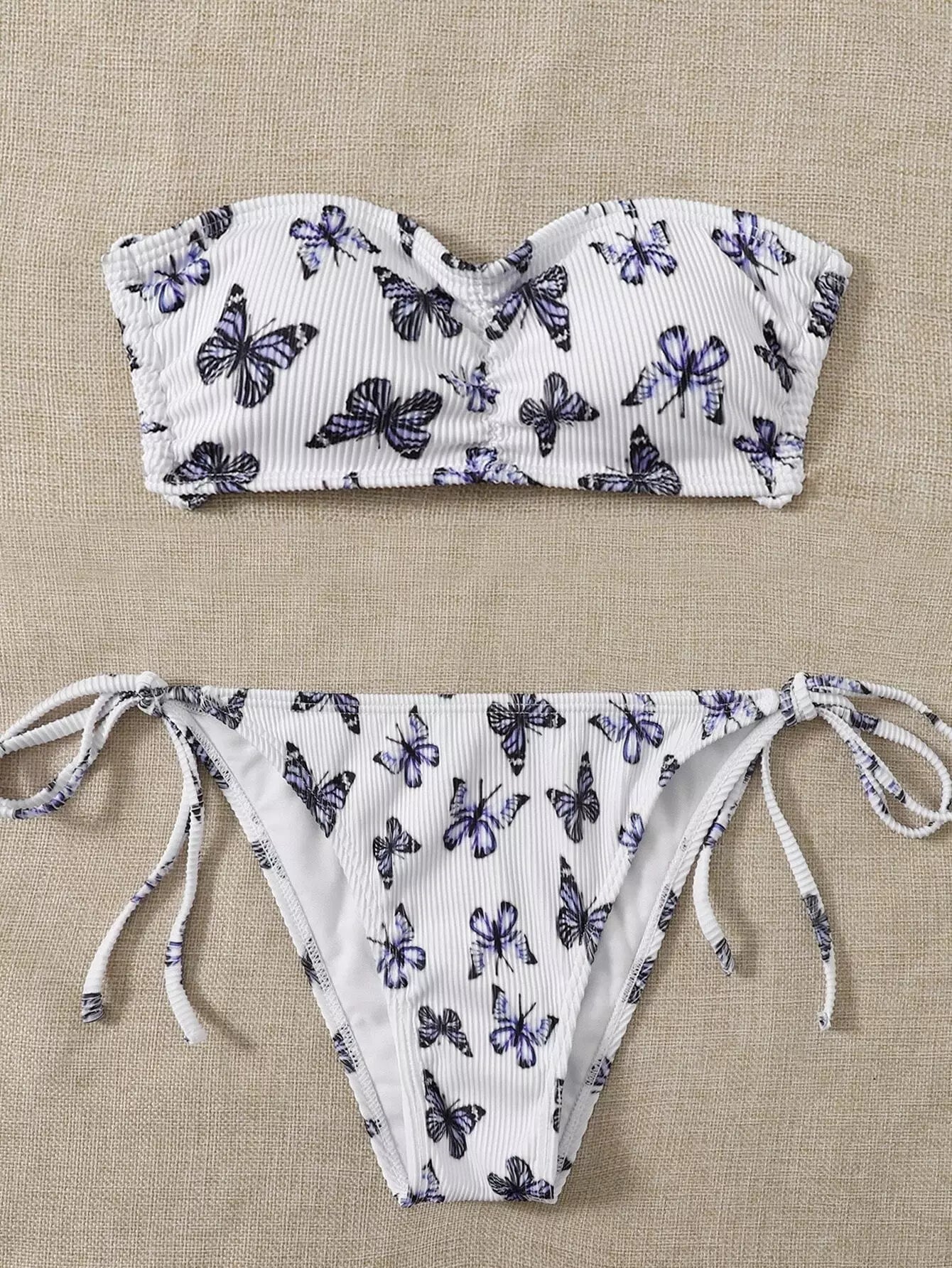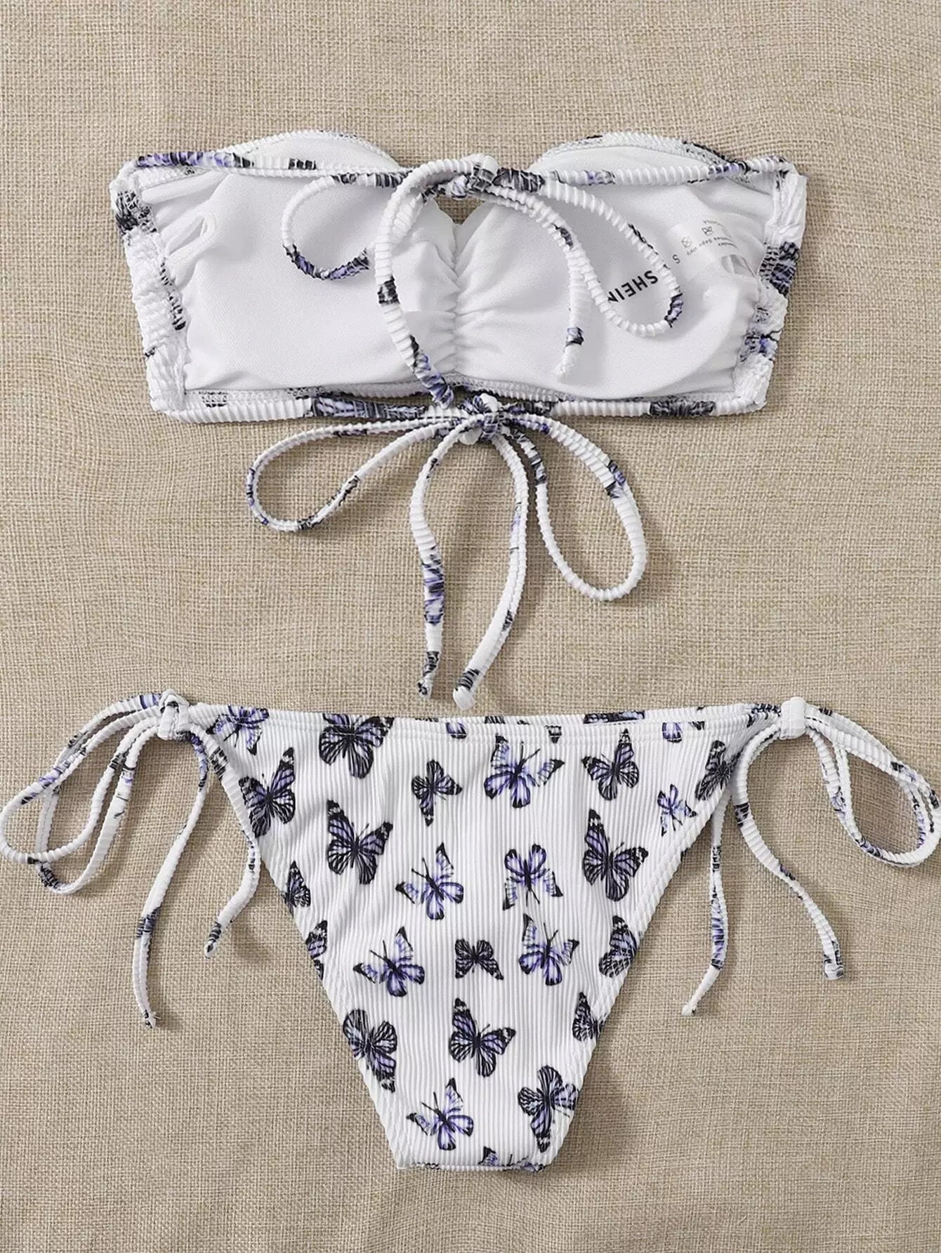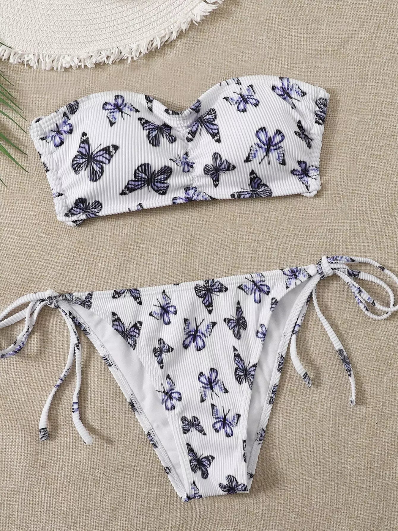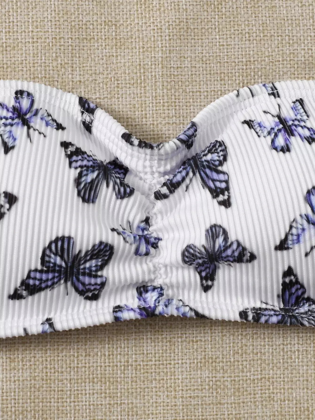 Rib Butterfly Print Bandeau Bikini Swimsuit