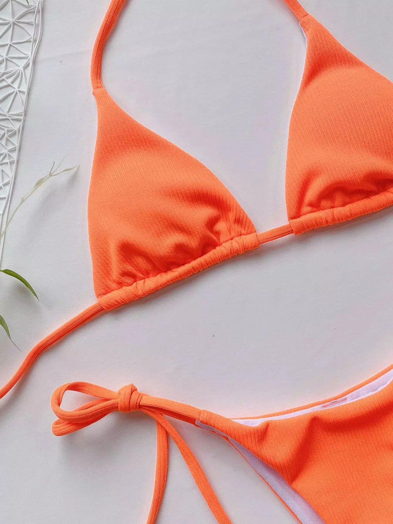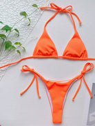 Rib Halter Tie Side Bikini Swimsuit