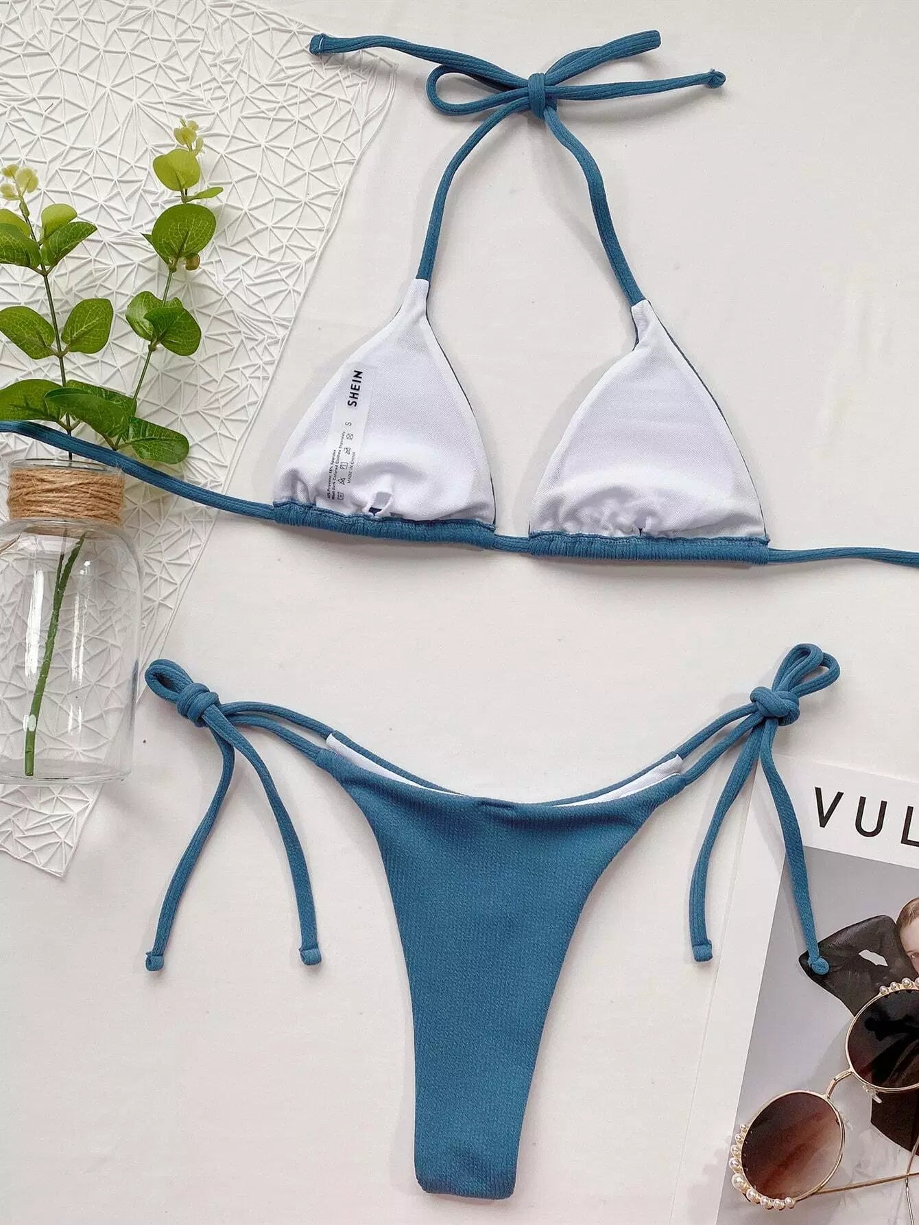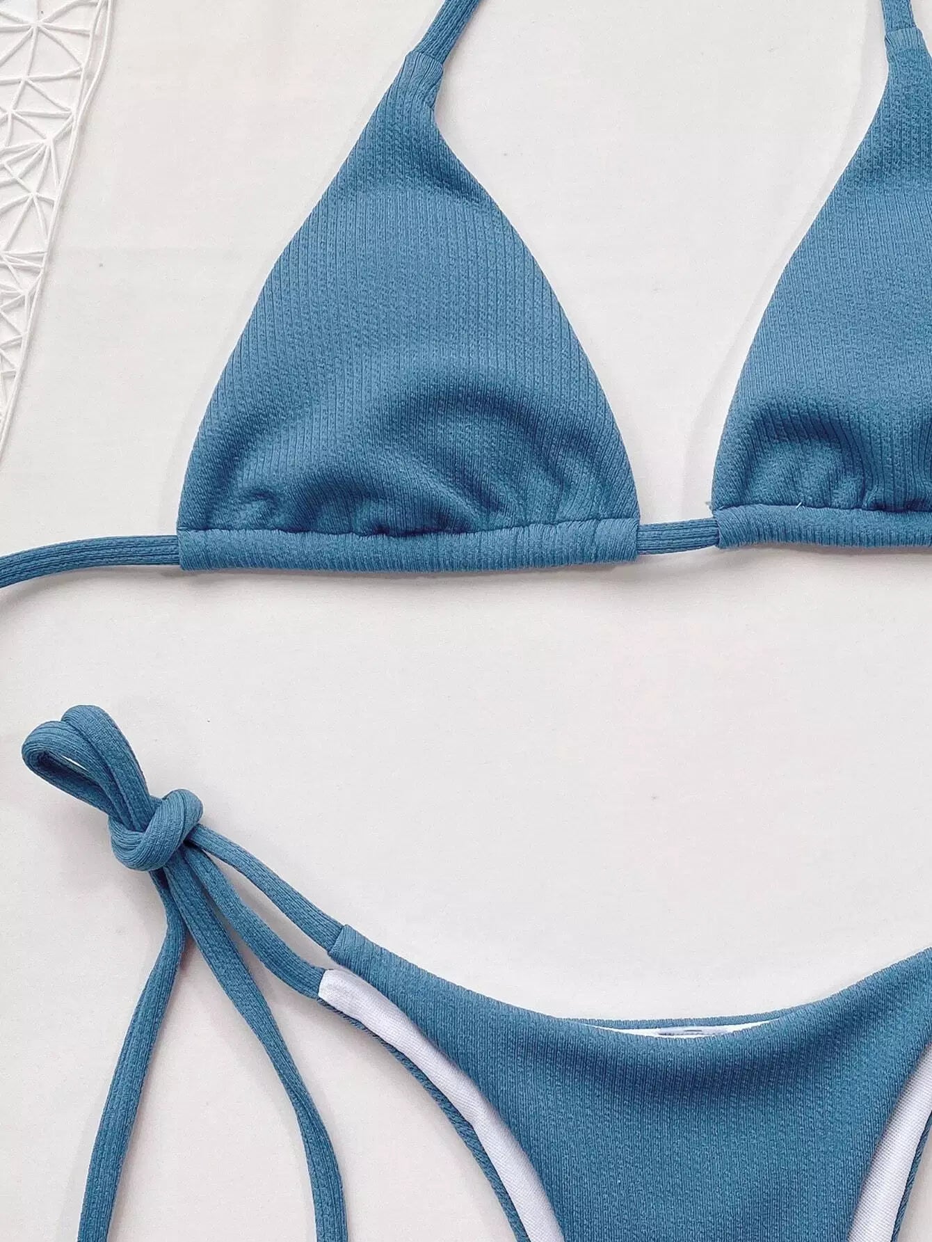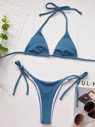 Rib Halter Tie Side Bikini Swimsuit