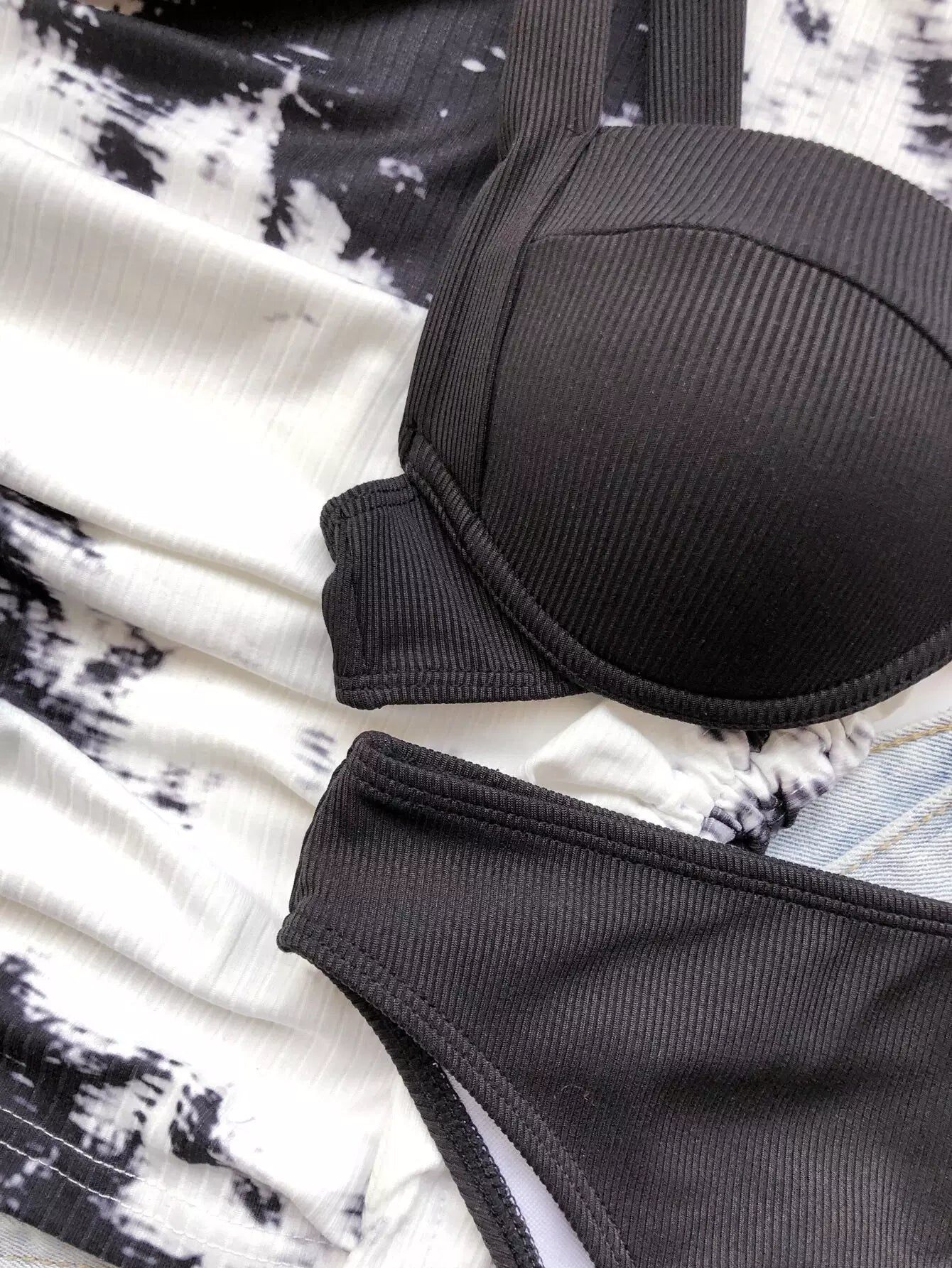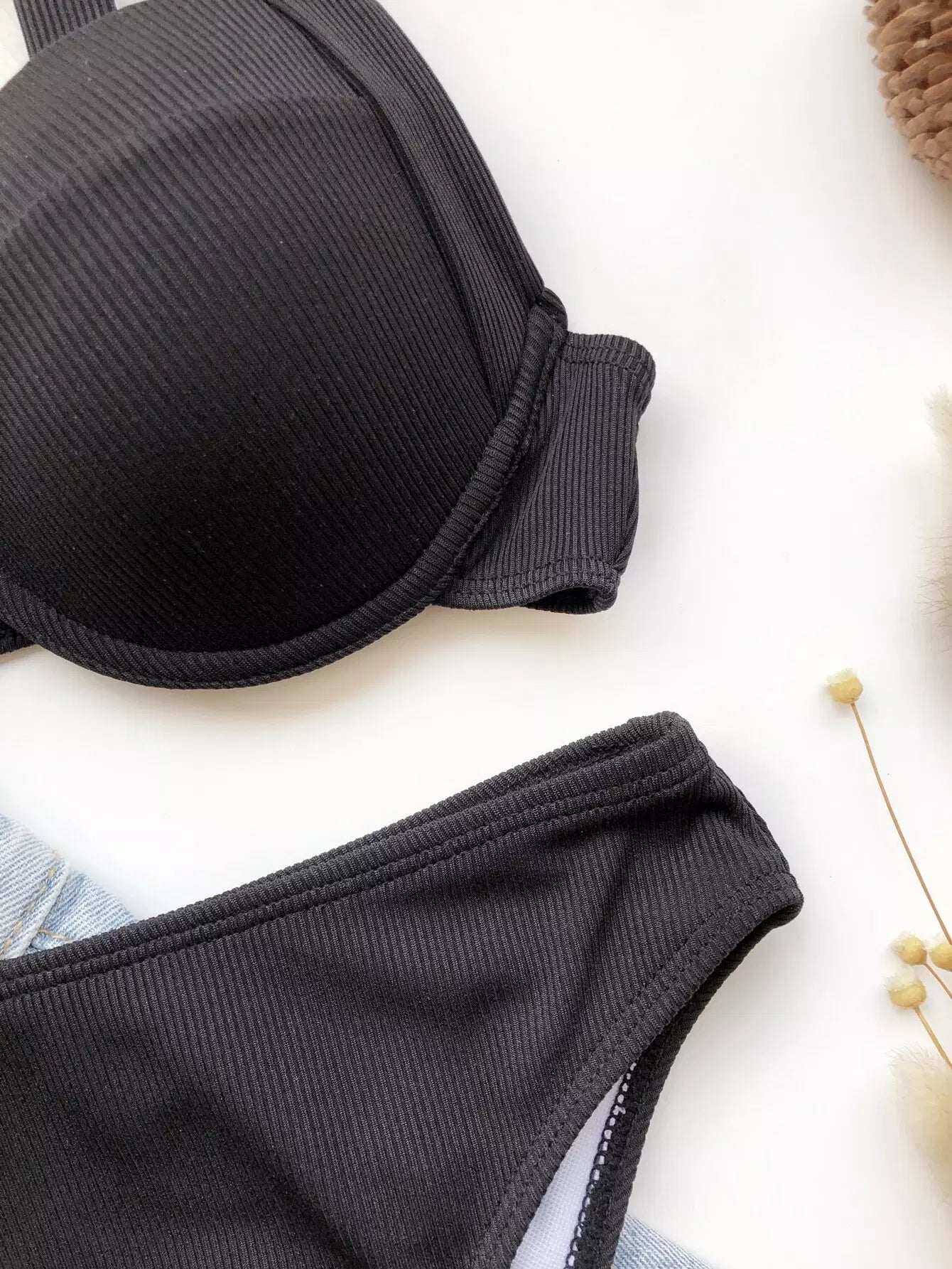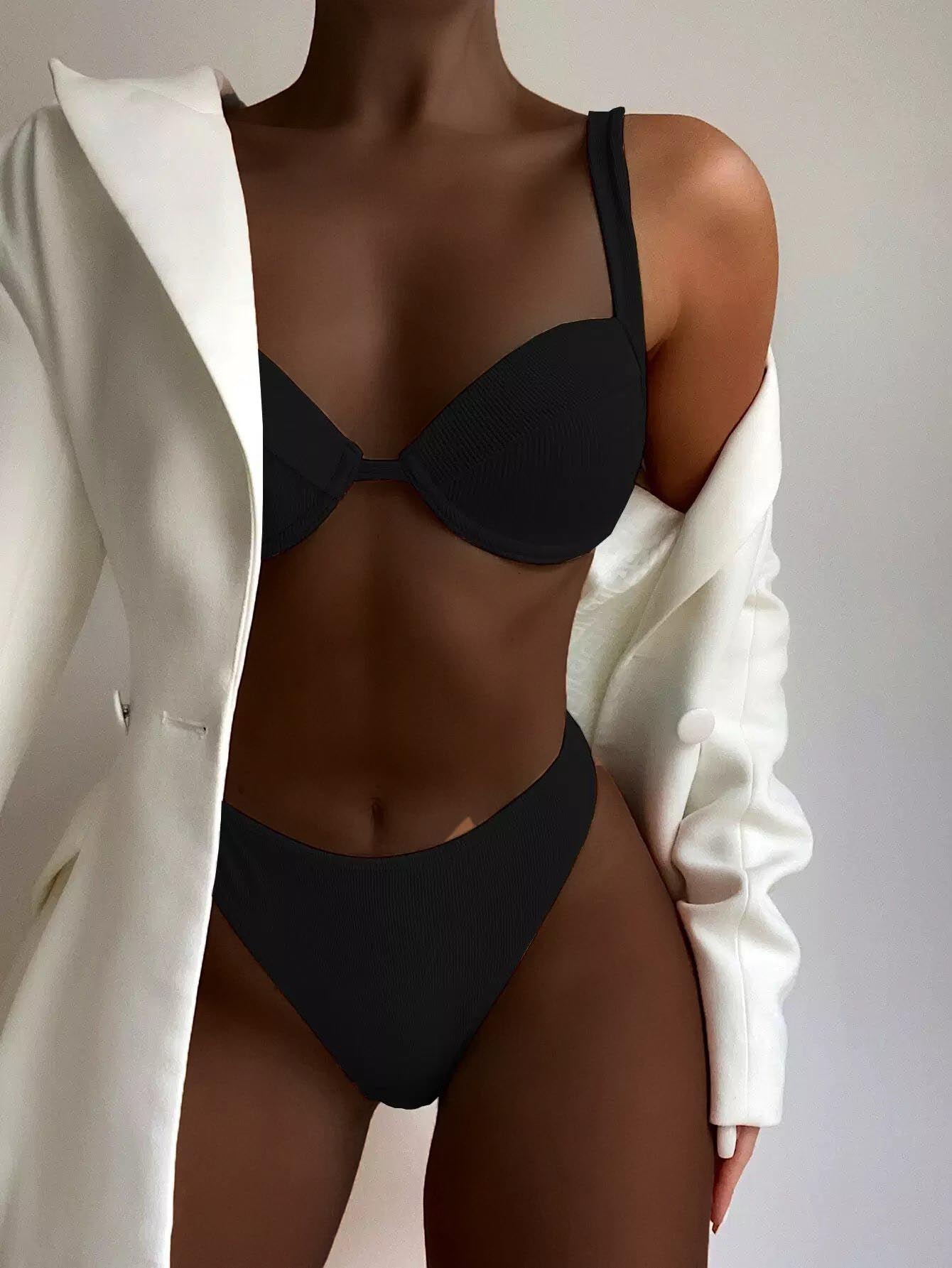 Rib Push Up High Waisted Bikini Swimsuit