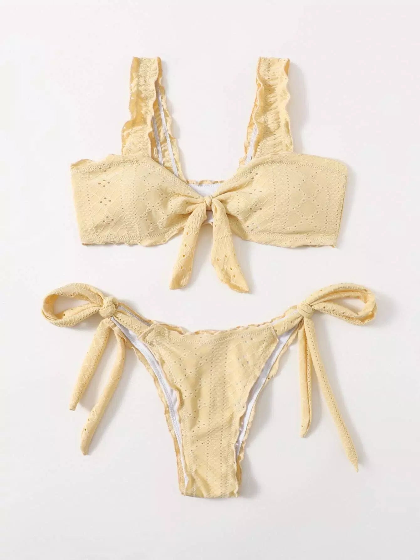 Schiffy Knot Front Tie Side Bikini Swimsuit