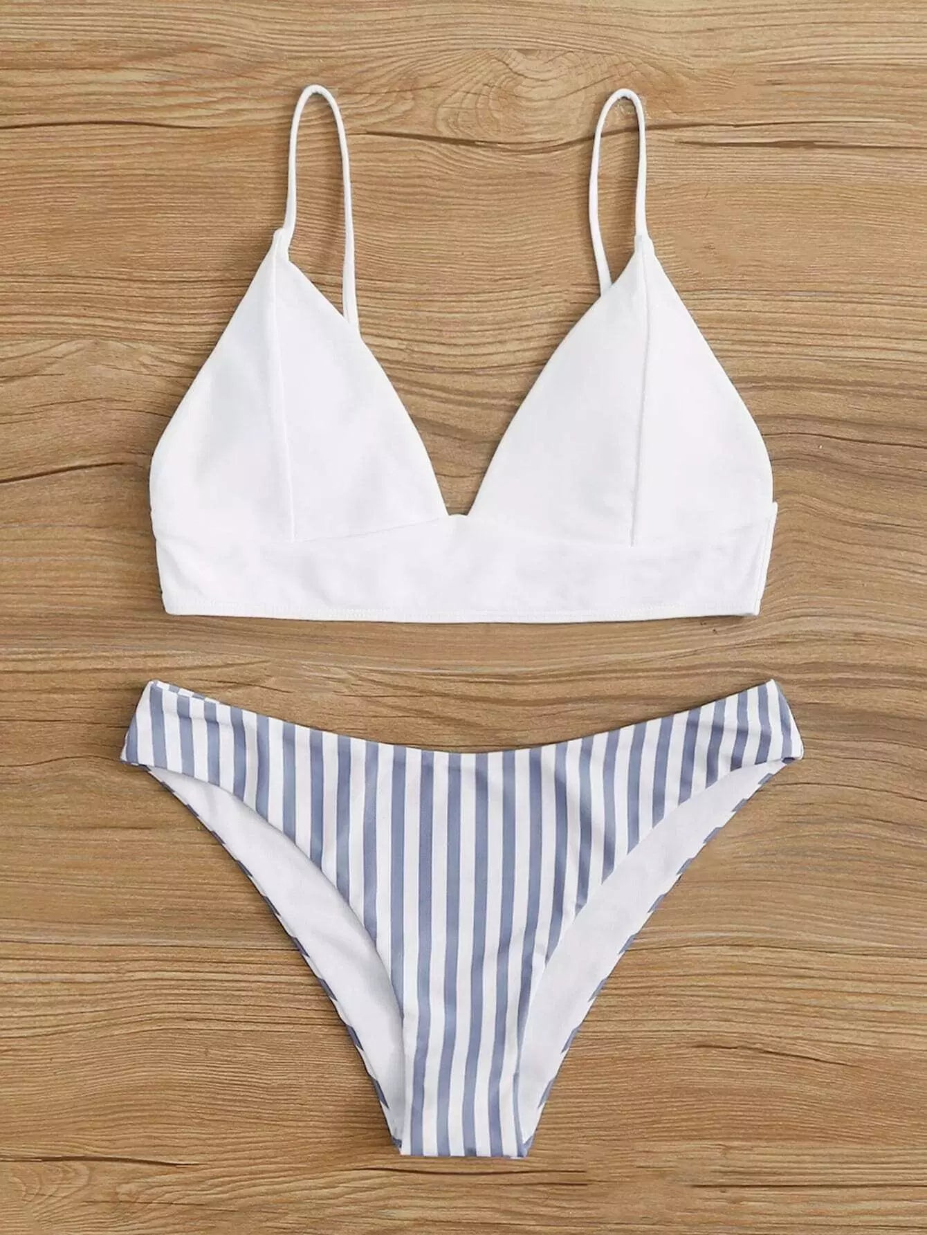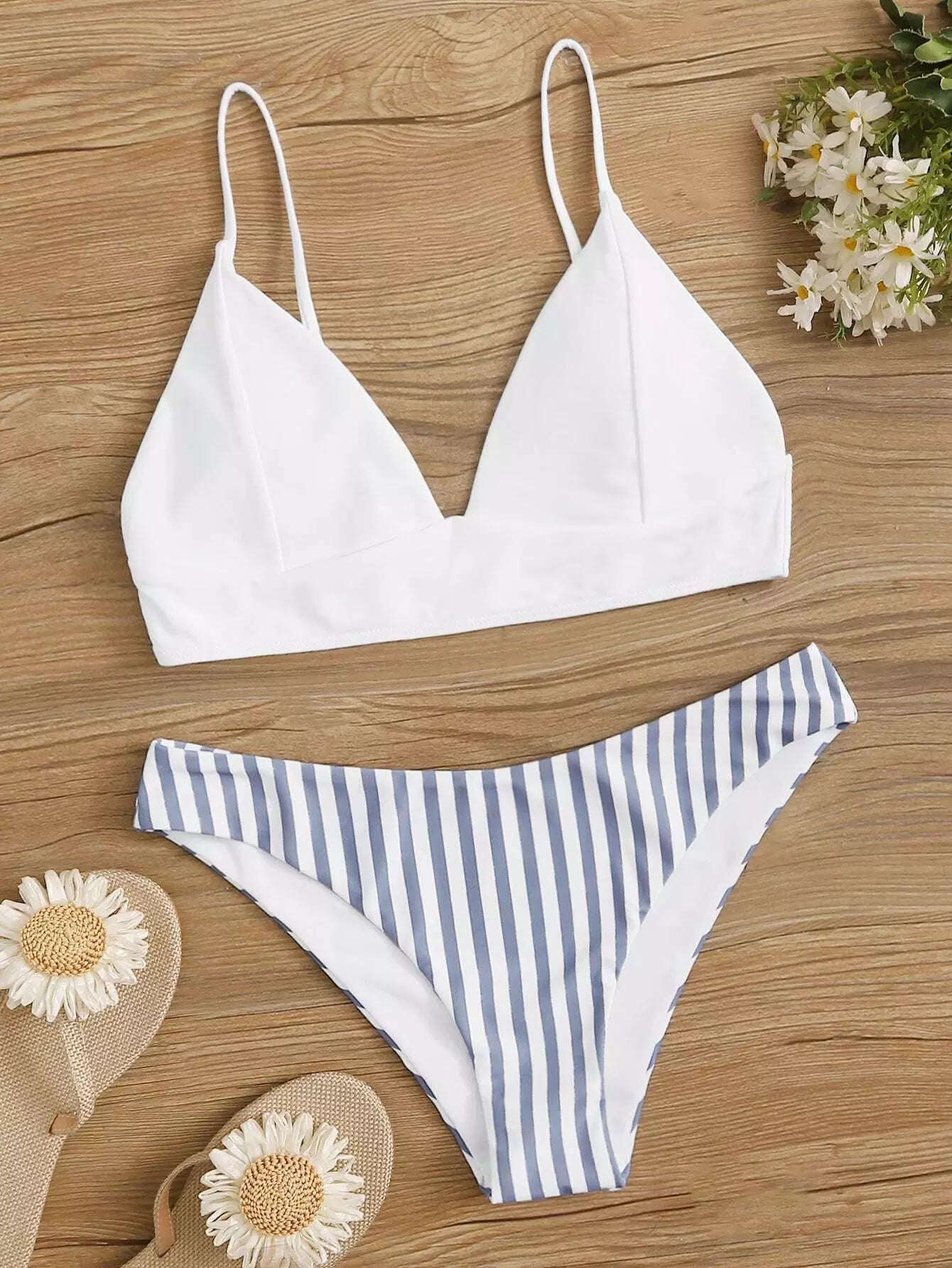 Women - Striped Mix & Match Triangle Bikini Swimsuit