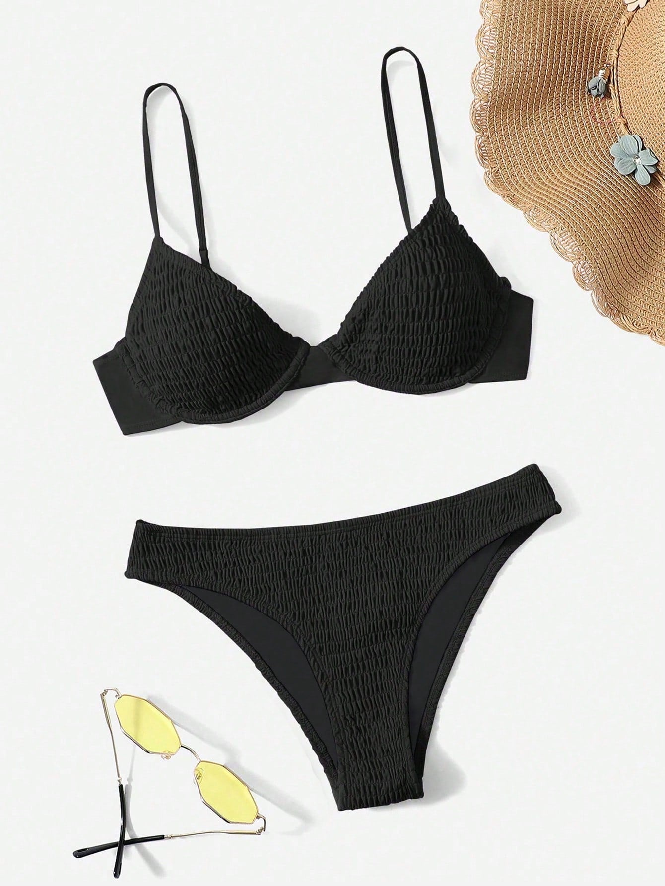 Swim Basics Summer Beach Smocked Underwire Bikini Set