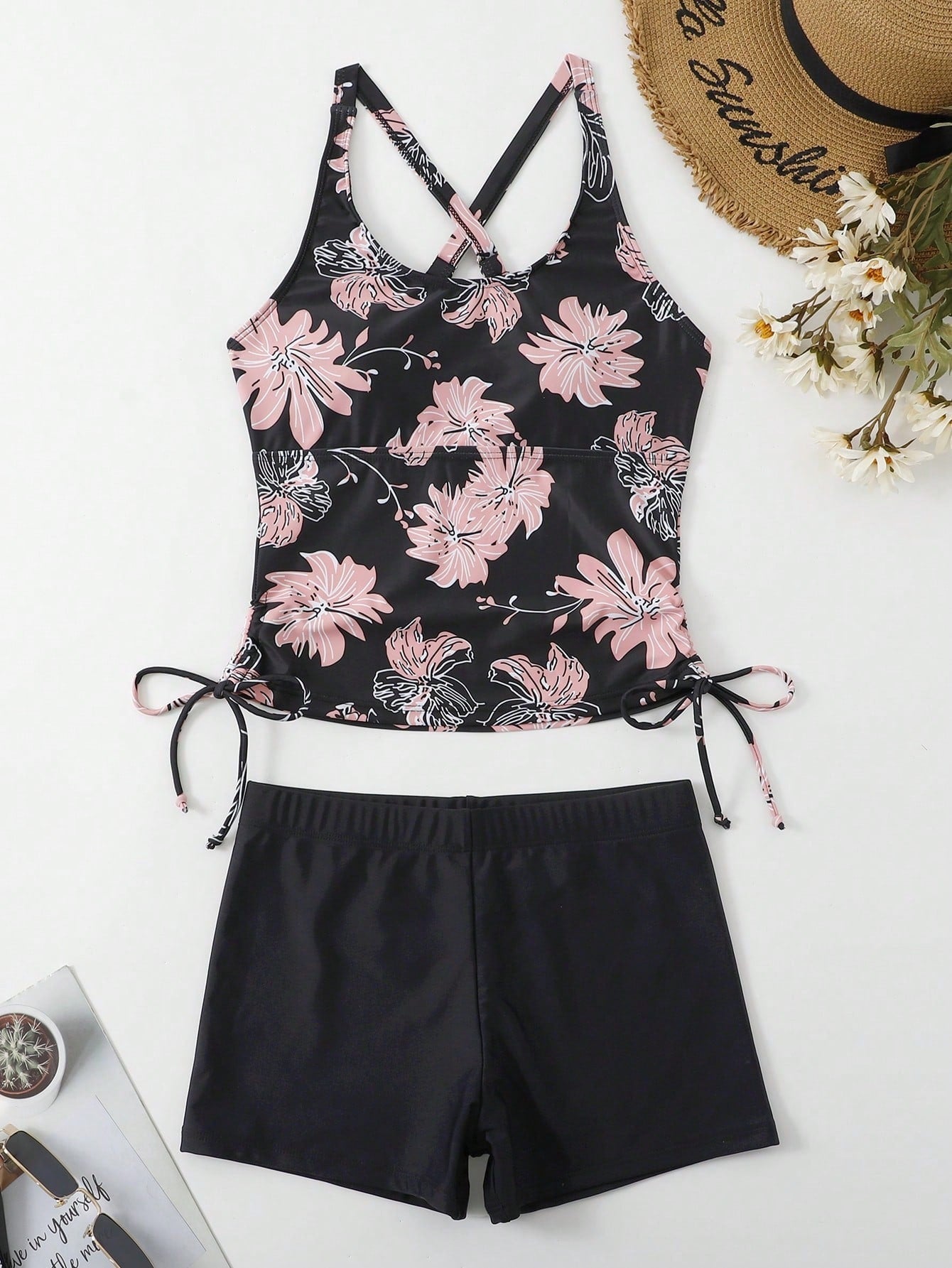 Swim Lushoire 2pcs/Set Halter Neck Top And Swim Trunks