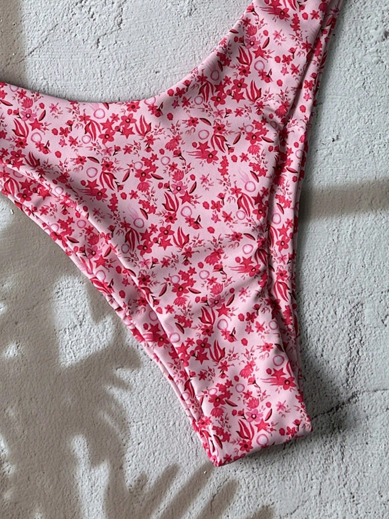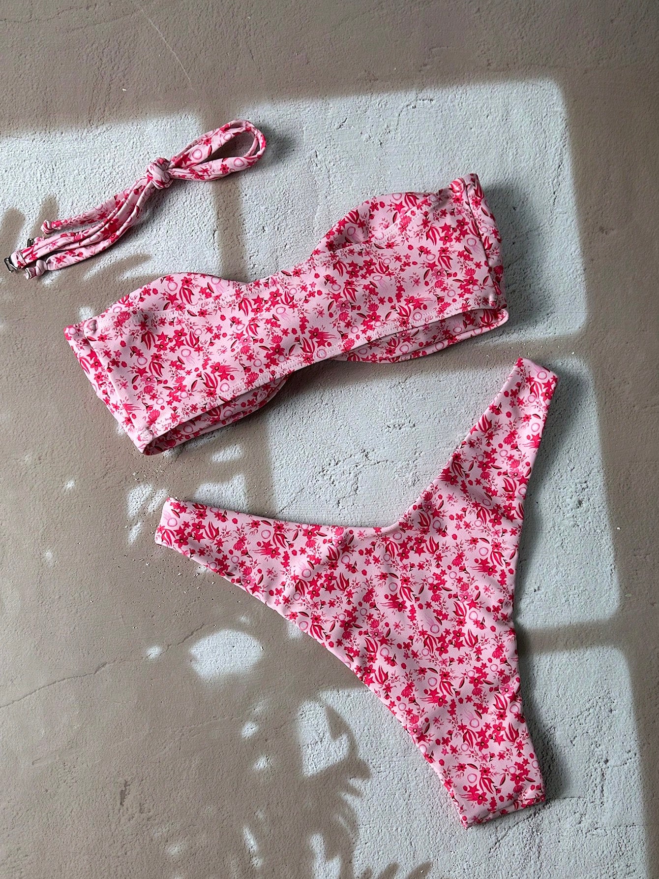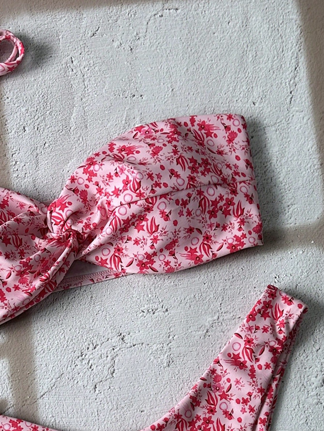 Swim Mod Springbreak Women's Summer Random Print Bandeau Twist High Cut Beach Vacation Bikini Set