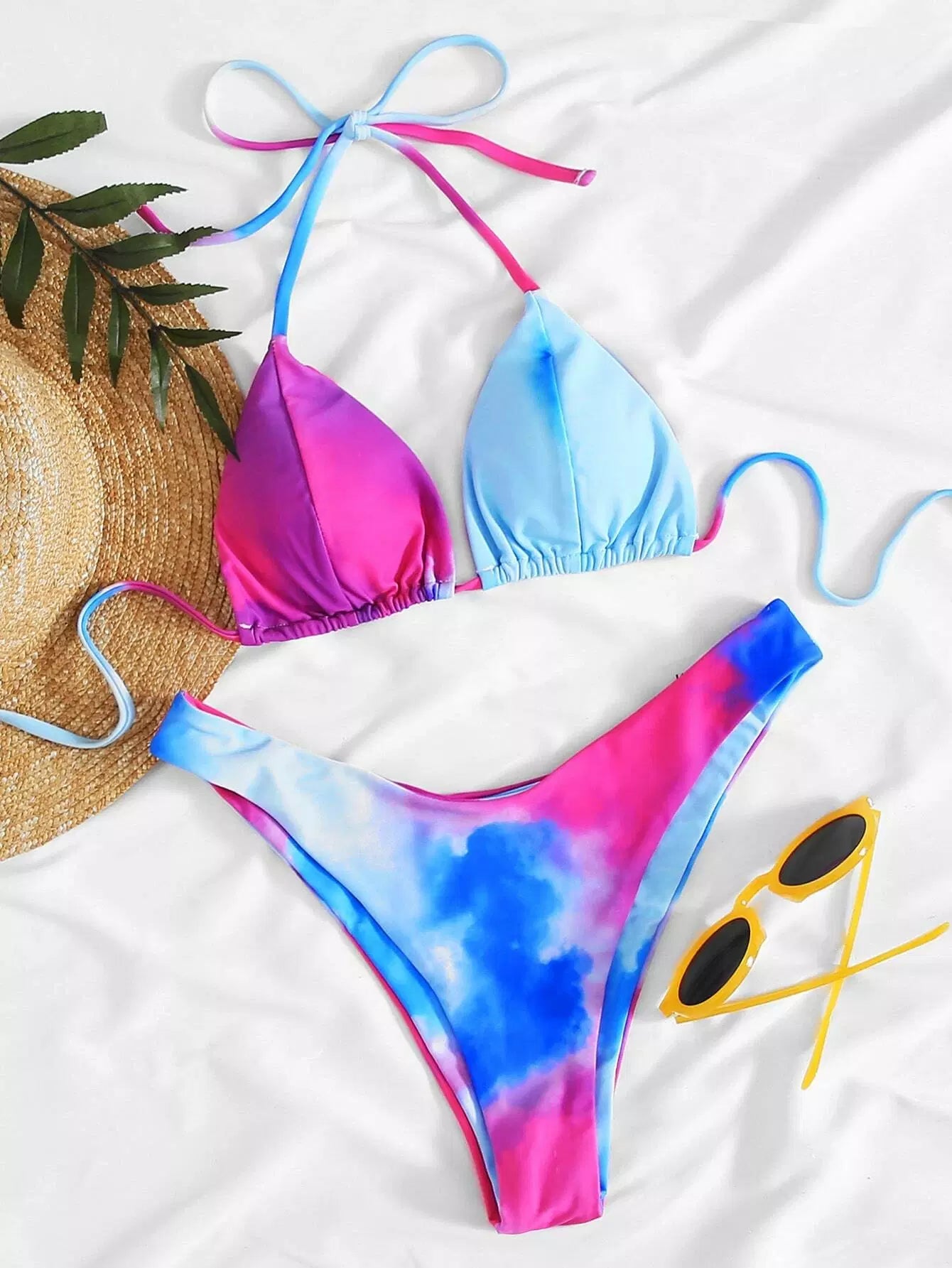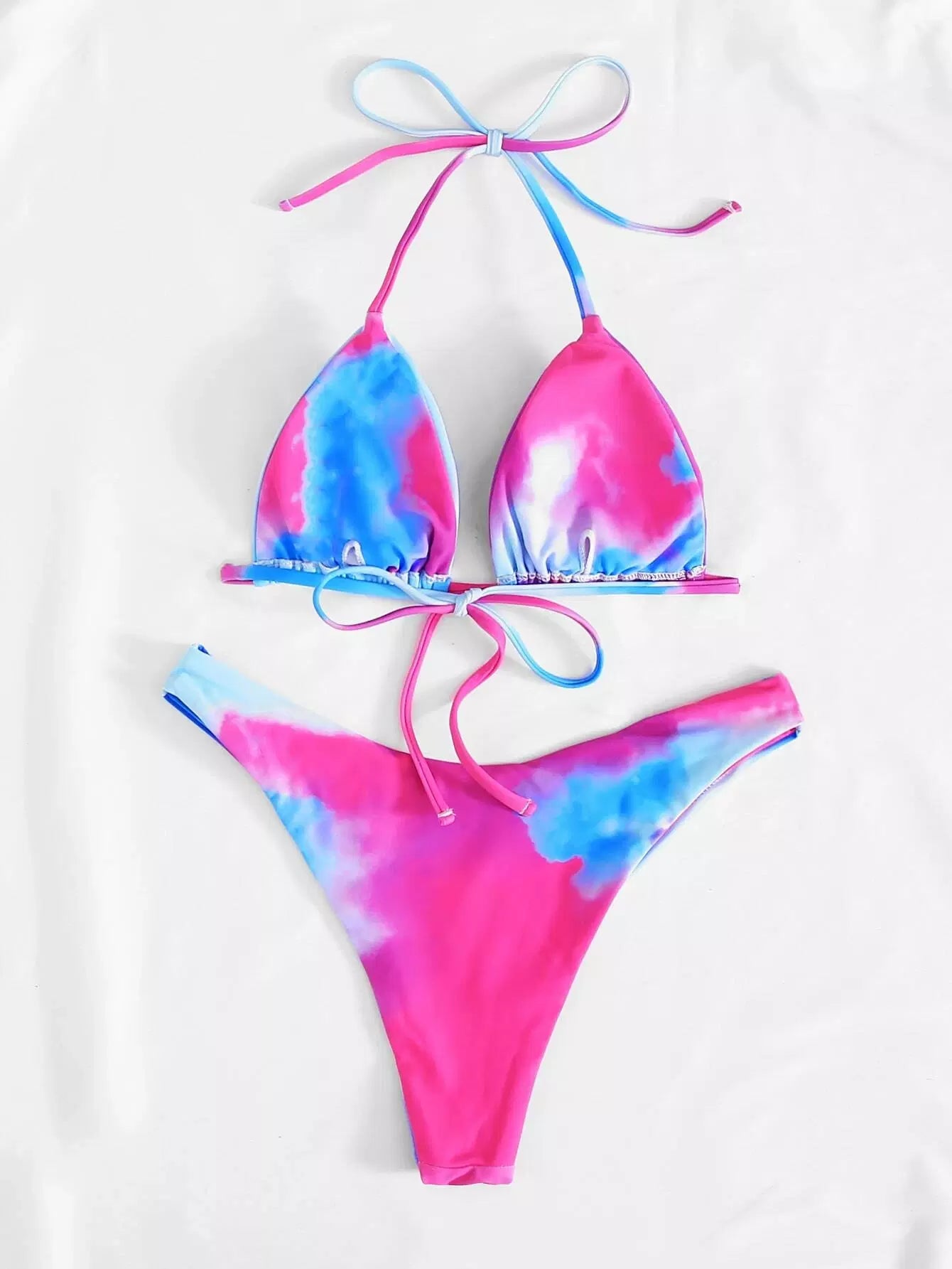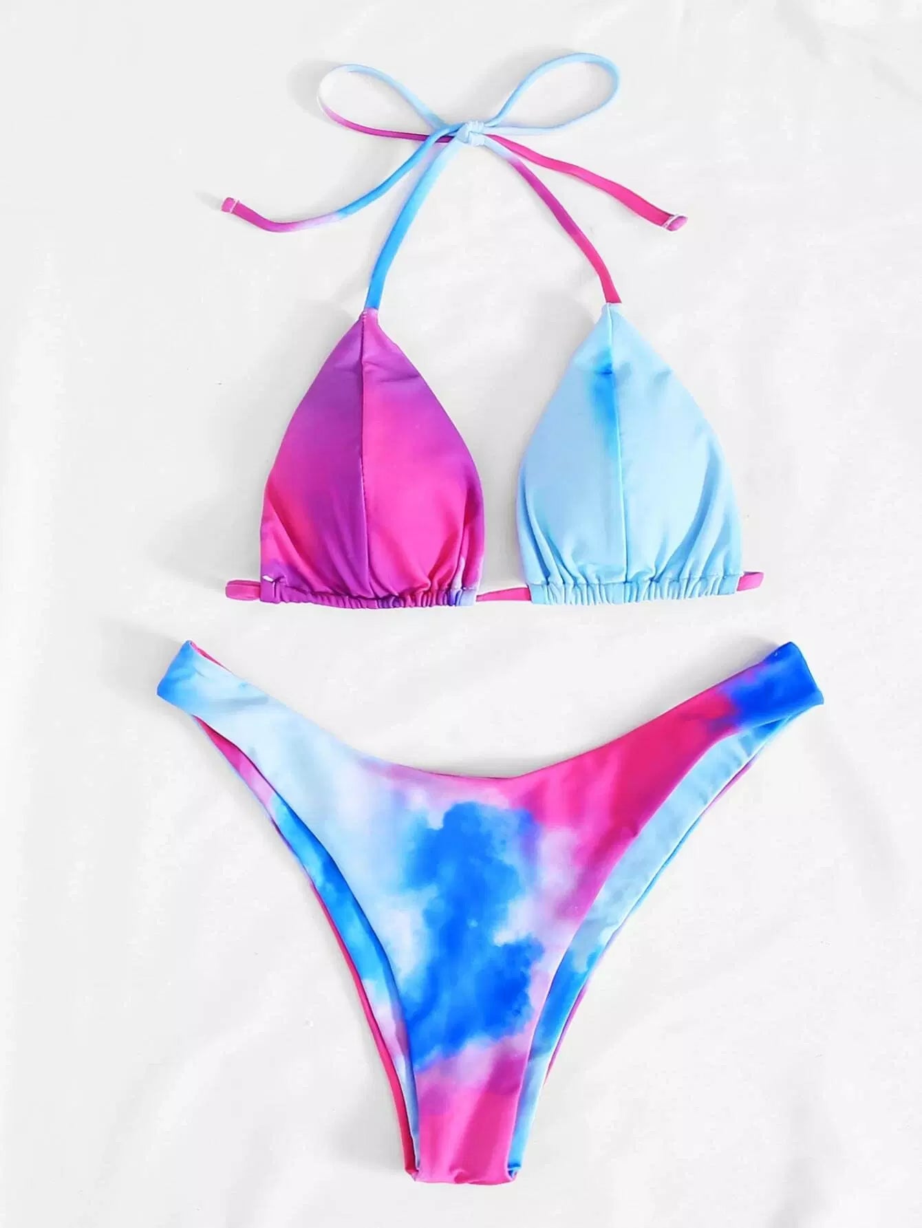 Tie-Dye Wash Triangle Self-Tie Bikini Swimsuit