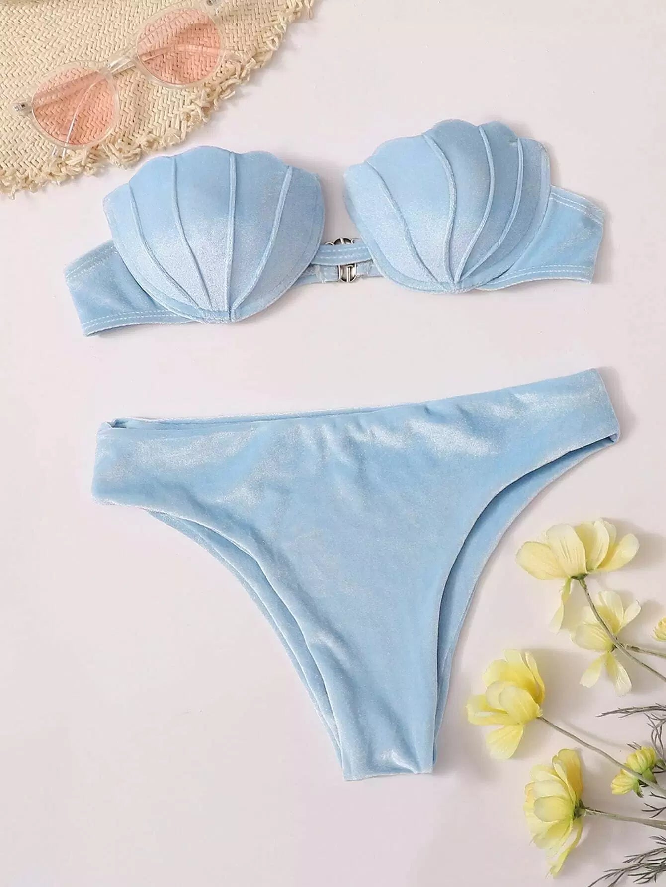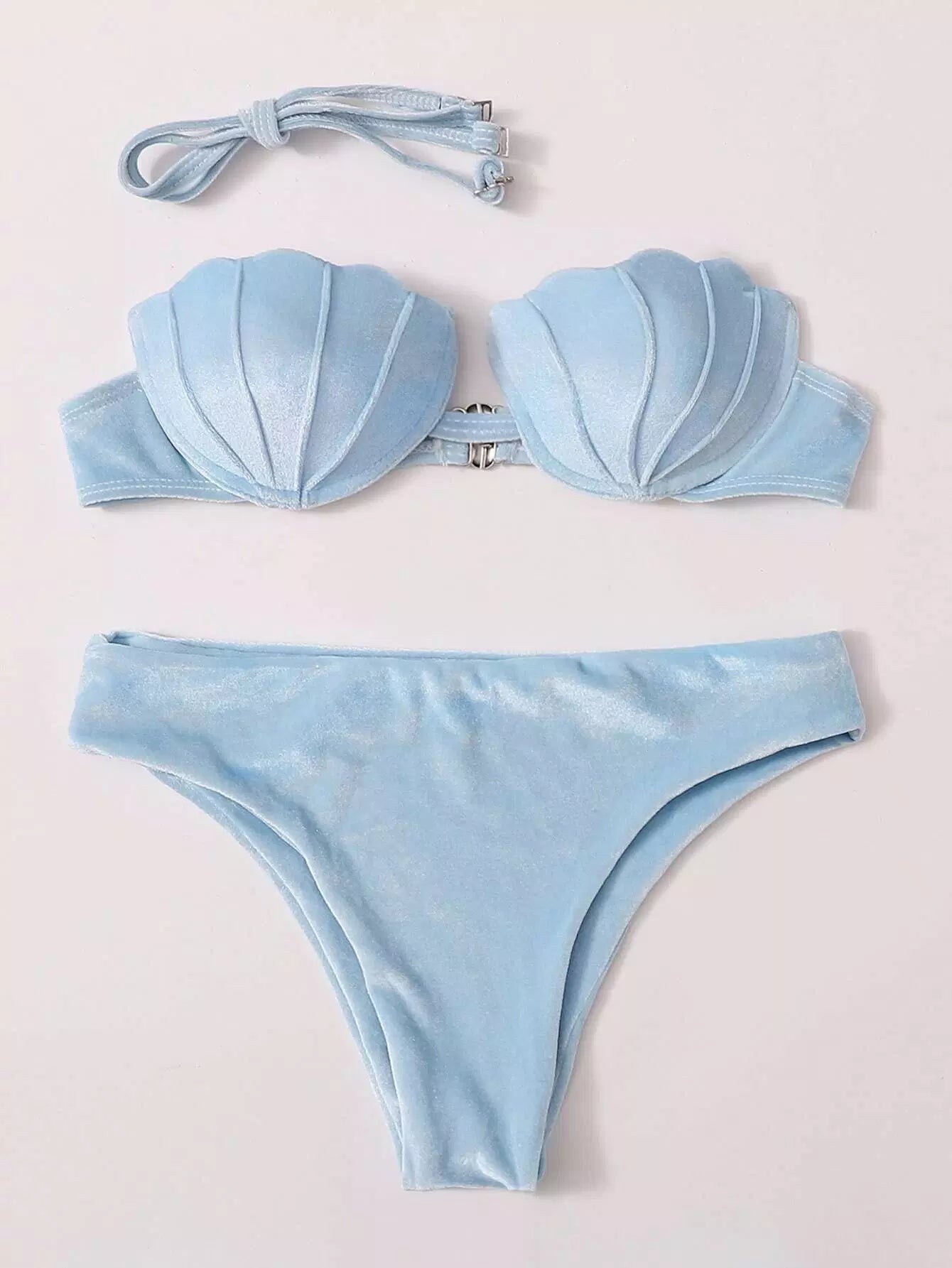 Velvet Scallop Underwire Bandeau Bikini Swimsuit