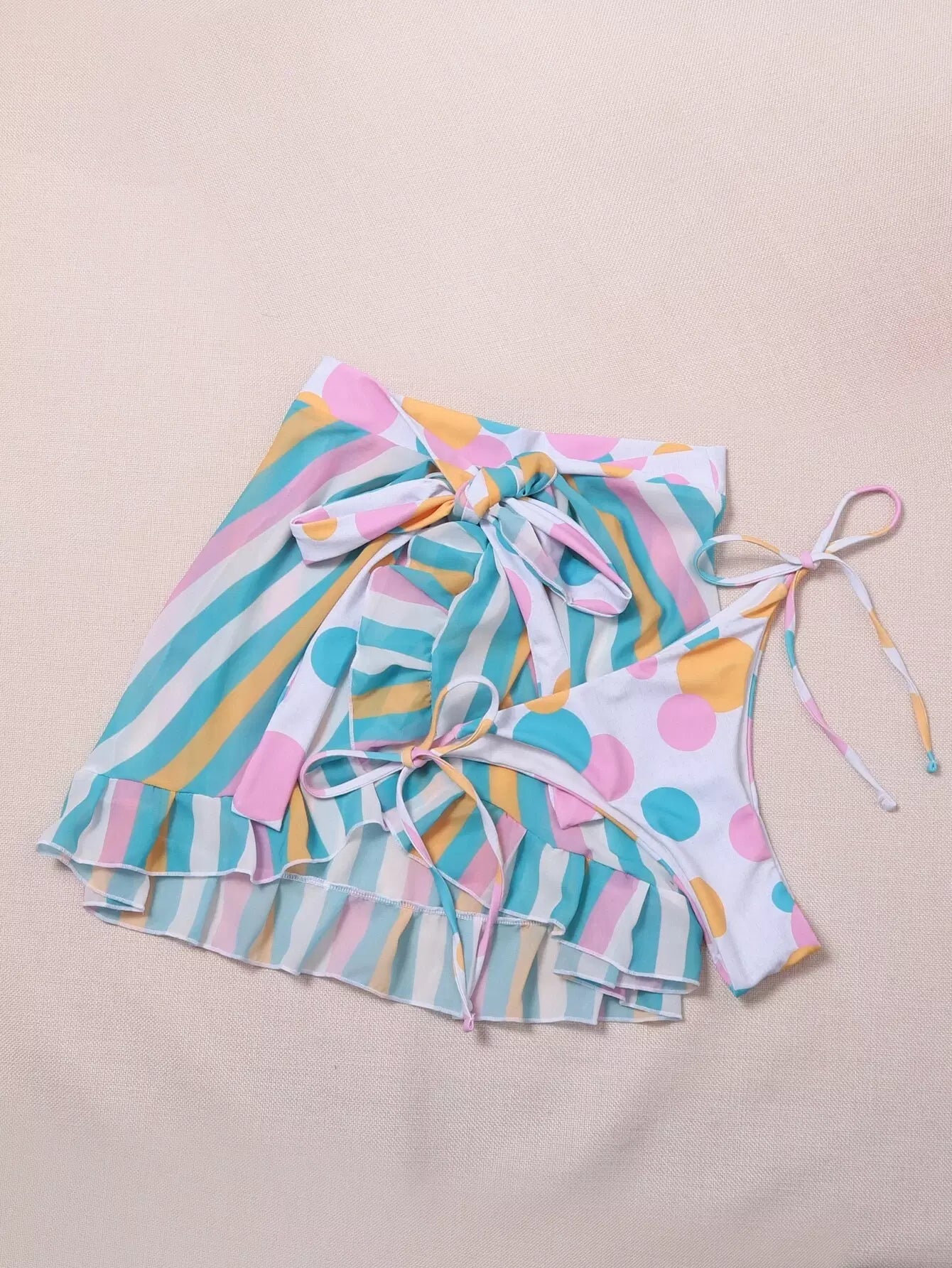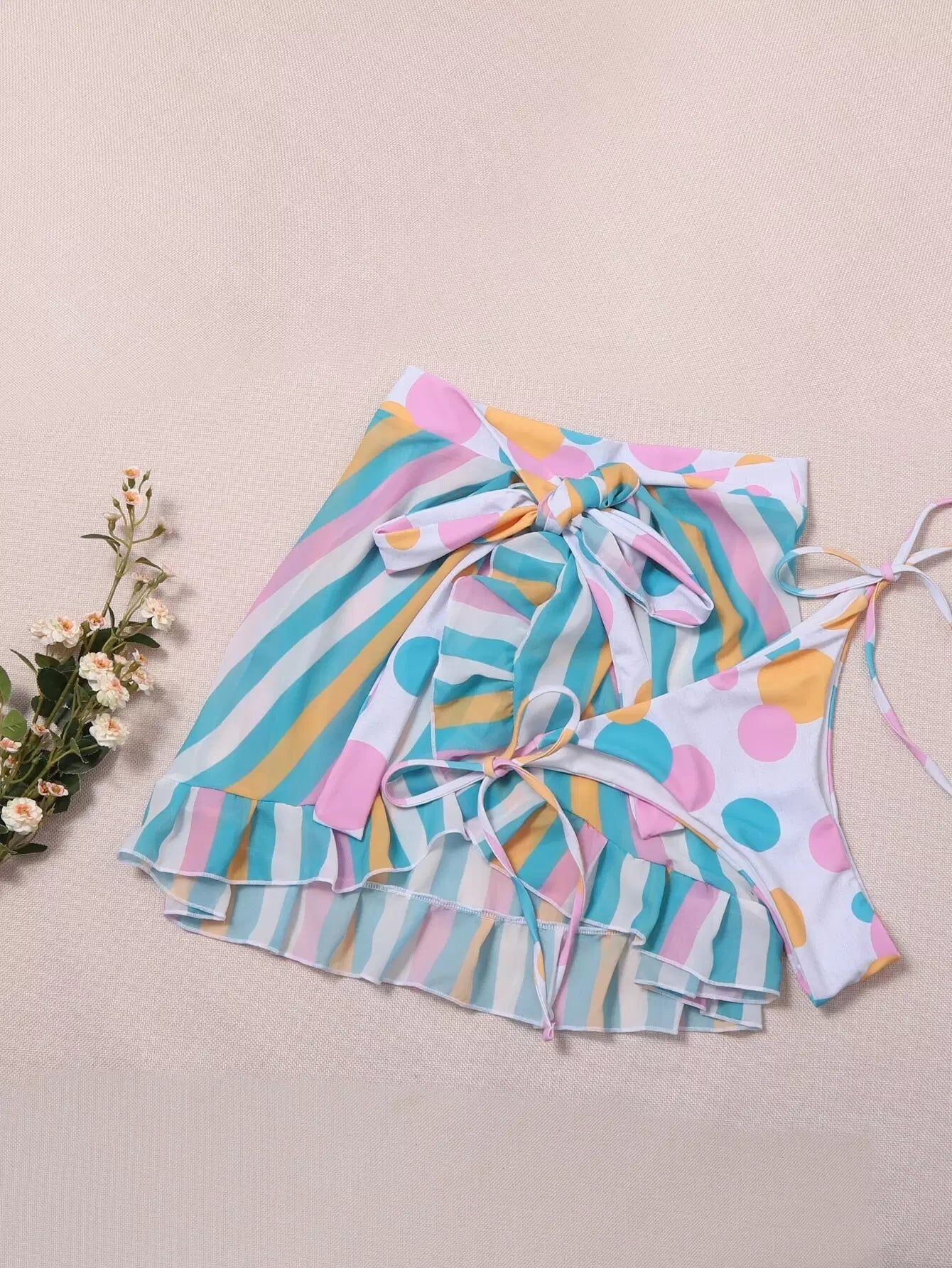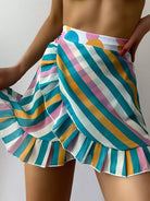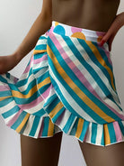 2pack Striped Bikini Panty With Beach Skirt