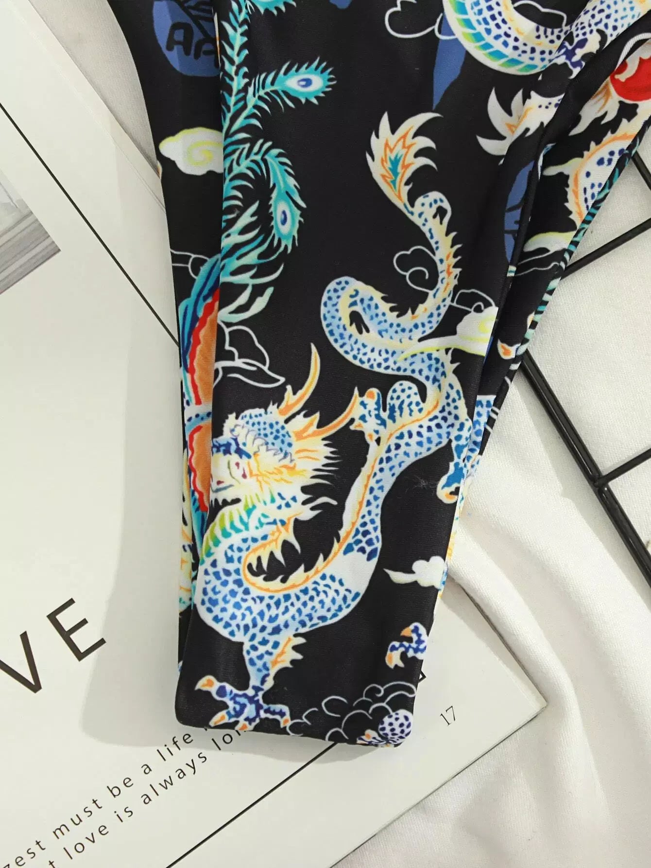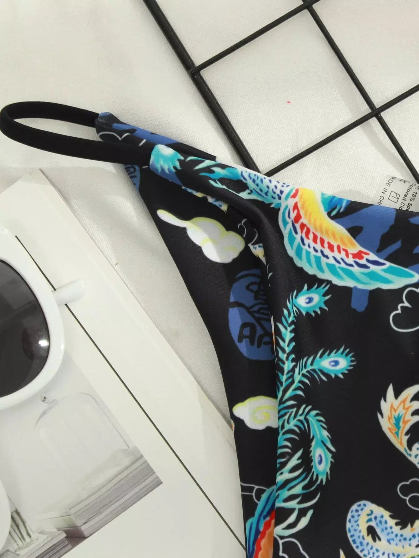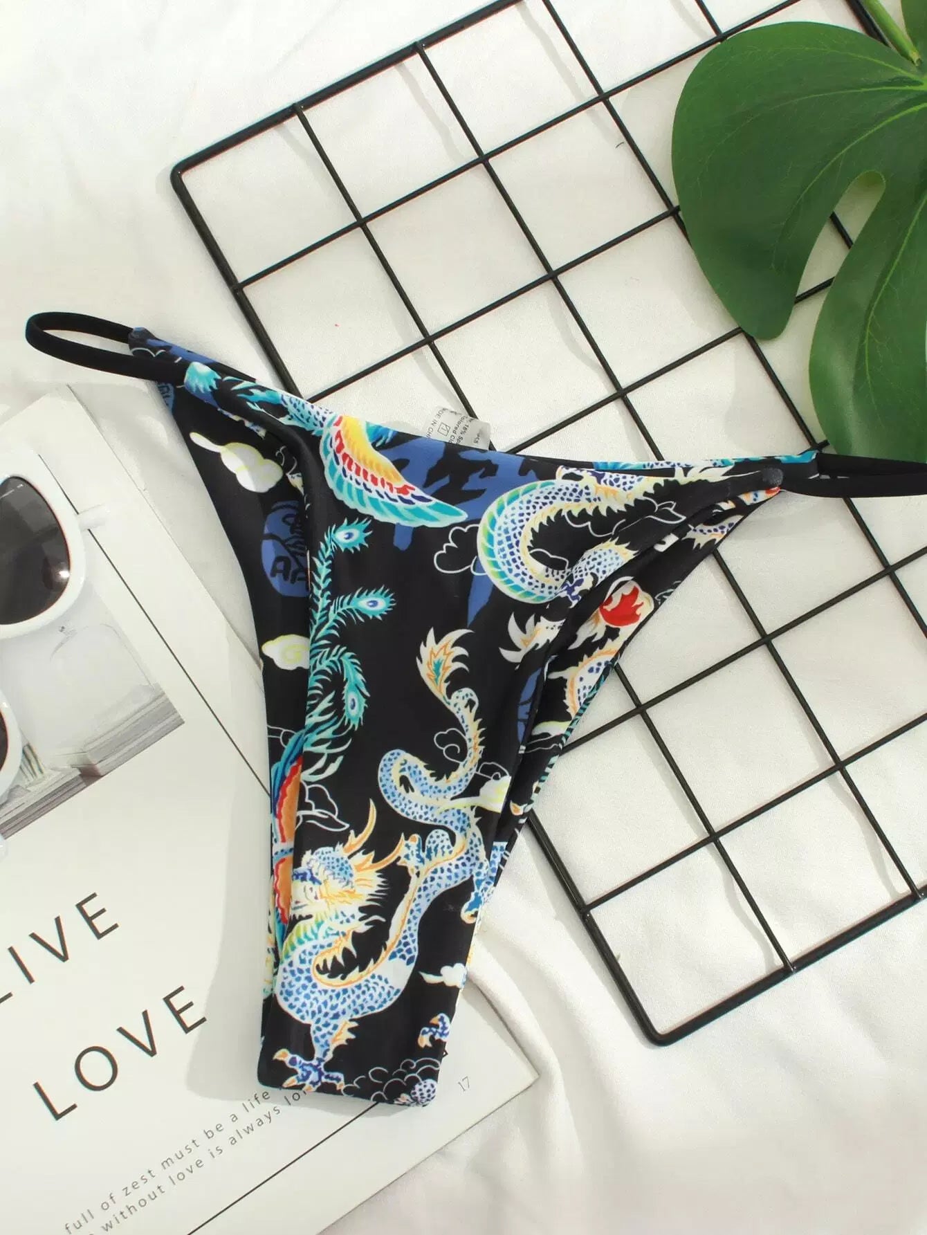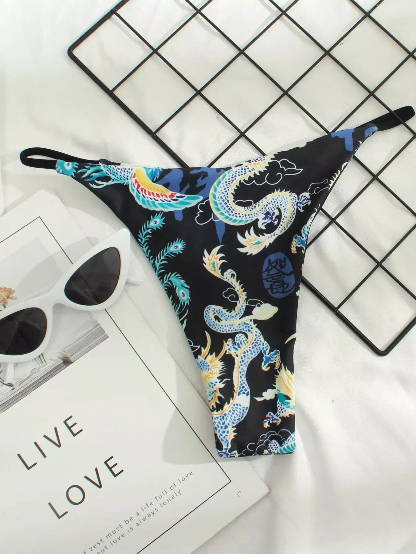 Chinese Dragon & Phoenix Print Thong Bikini Panty