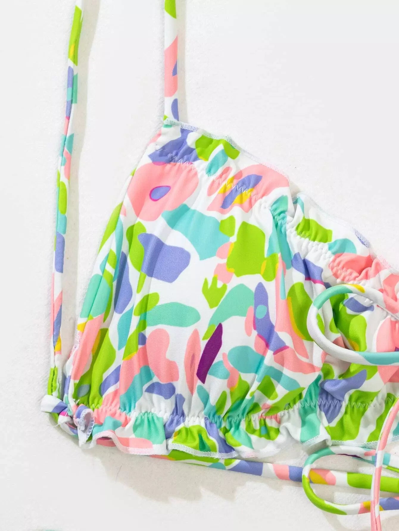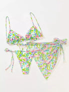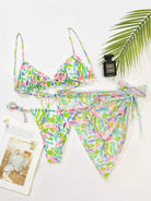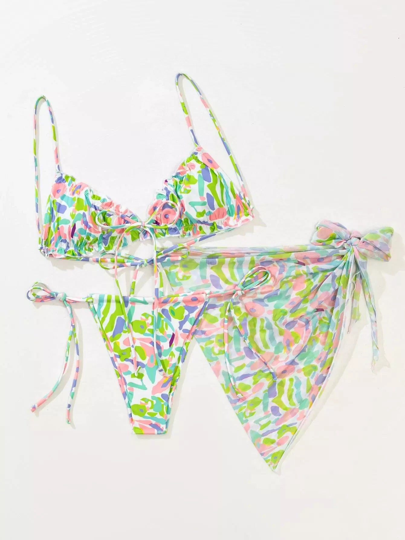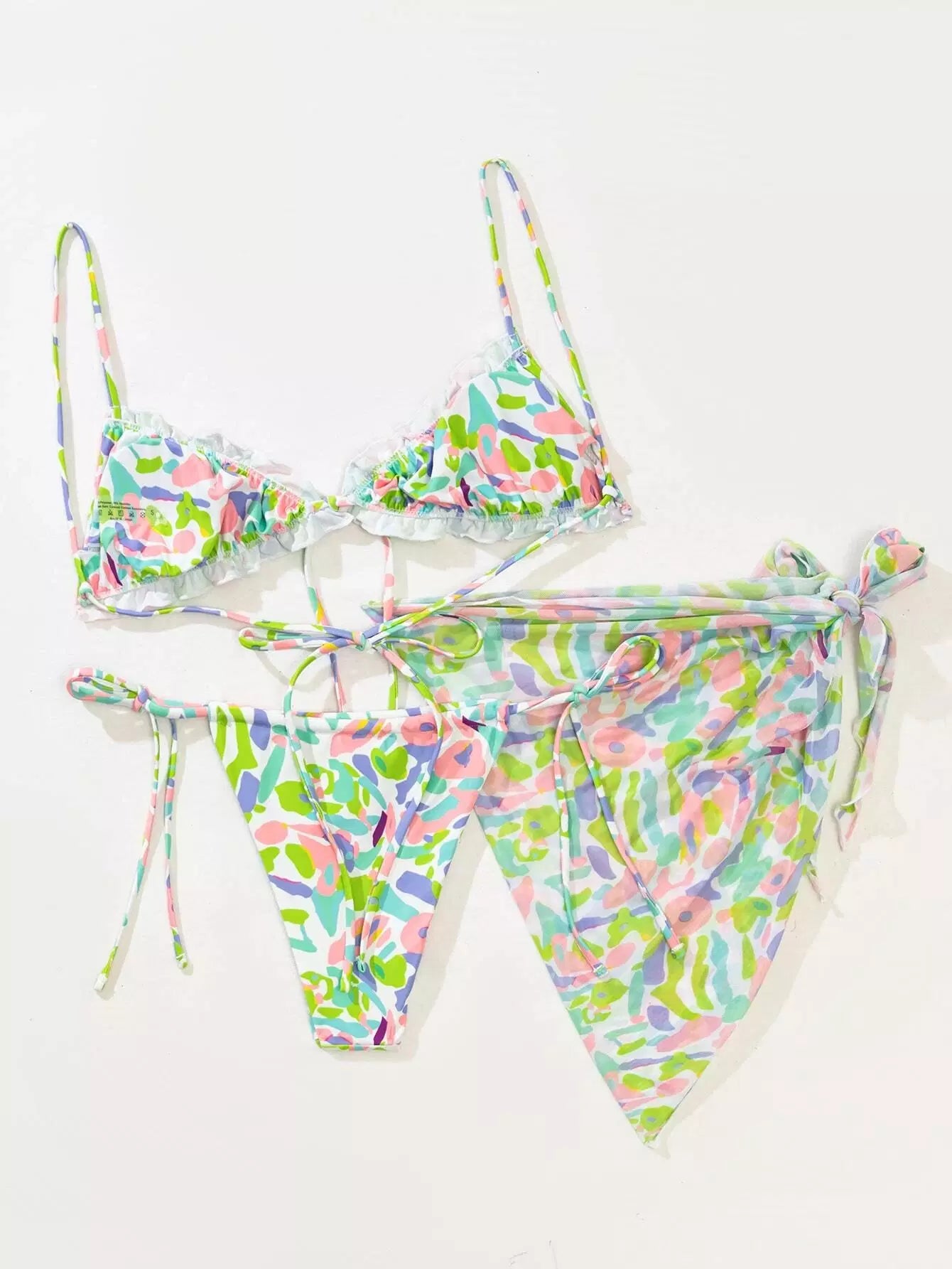 3pack Allover Print Frill Bikini Swimsuit & Beach Skirt