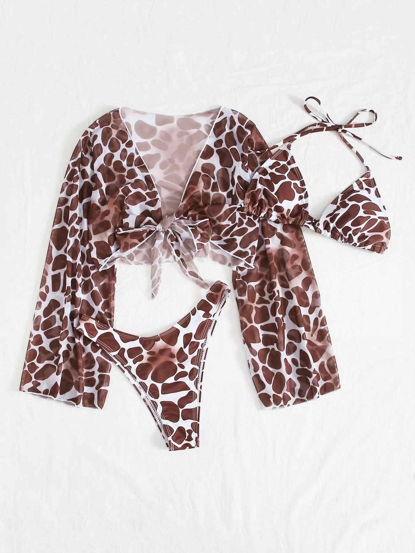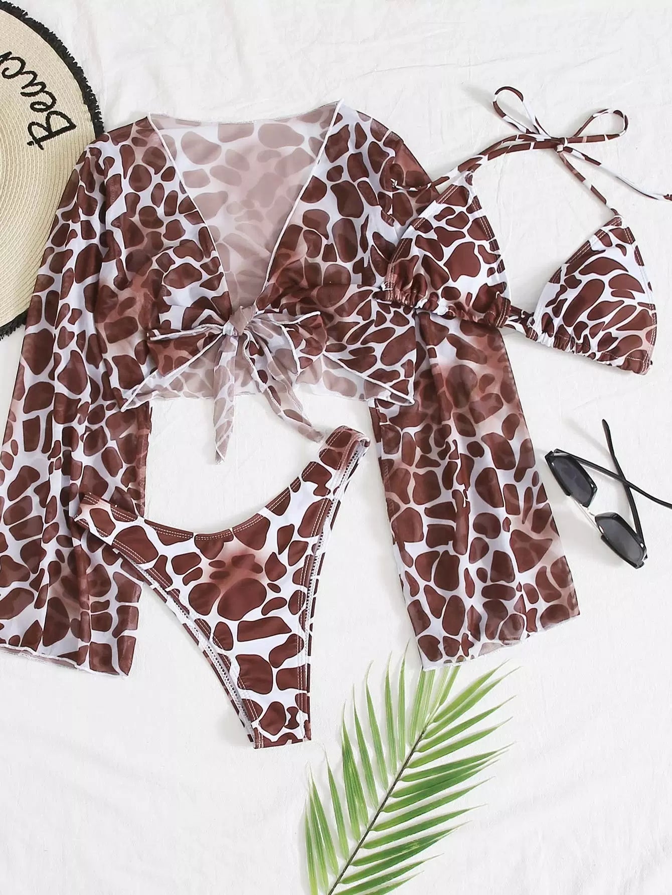 3pack Allover Print Triangle Co-ord Bikini Swimsuit