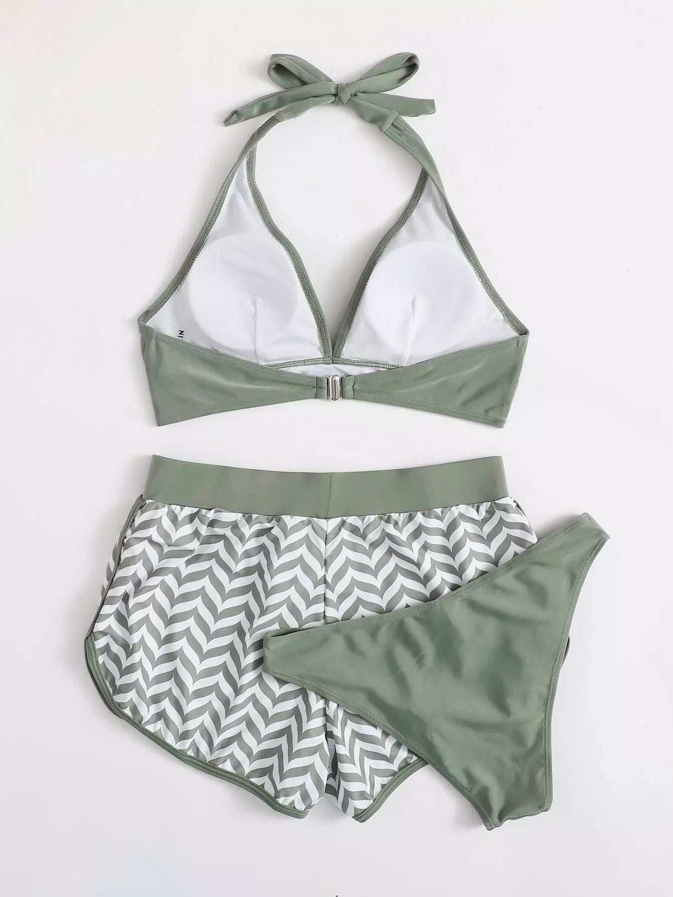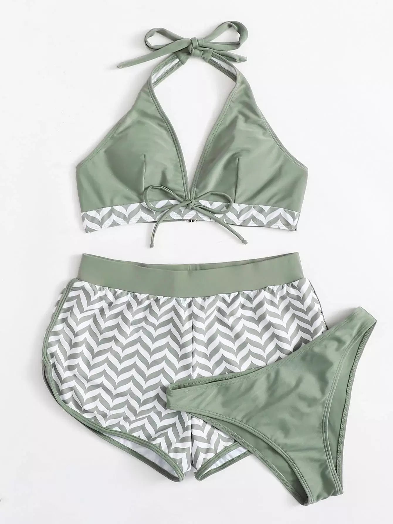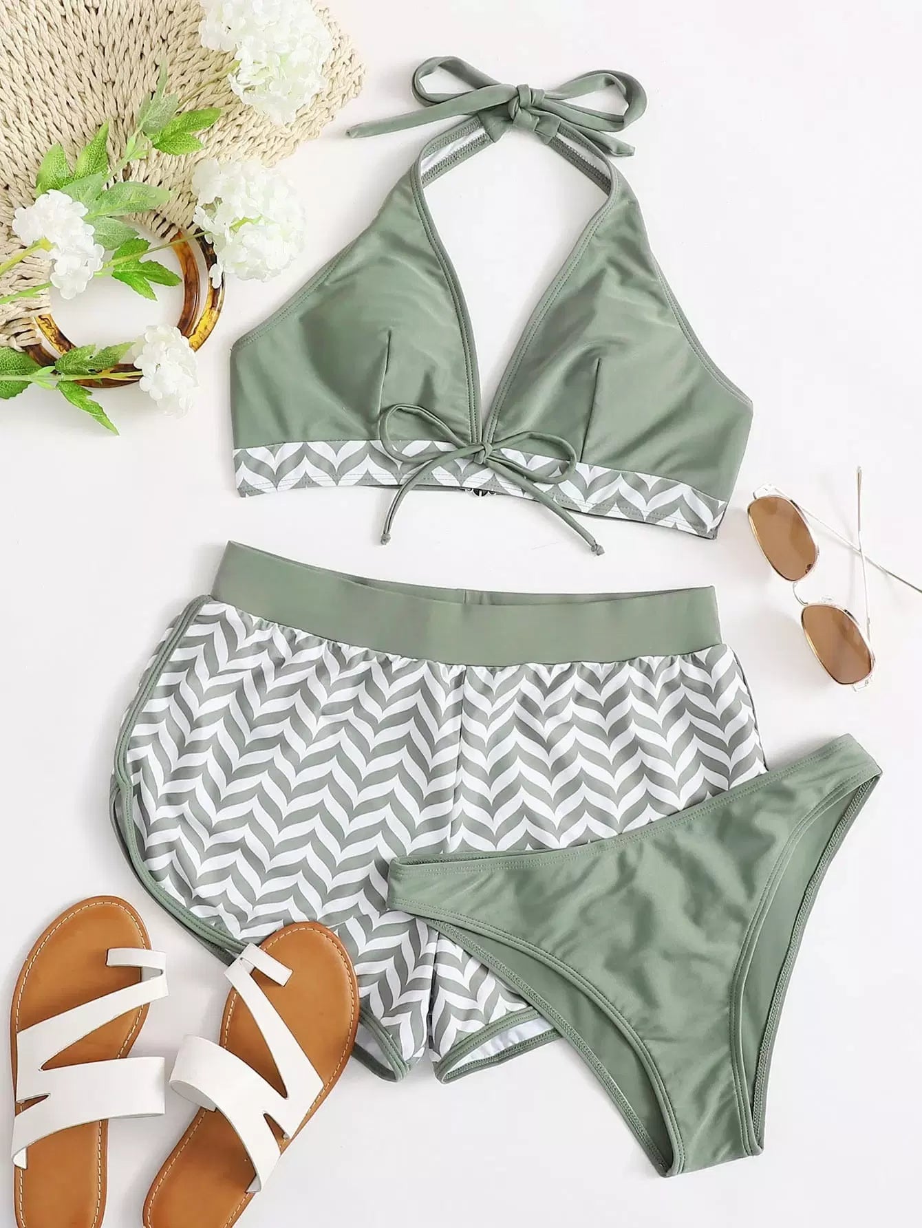3pack Chevron Print Halter Co-ord Bikini Swimsuit