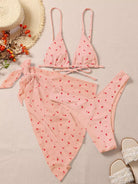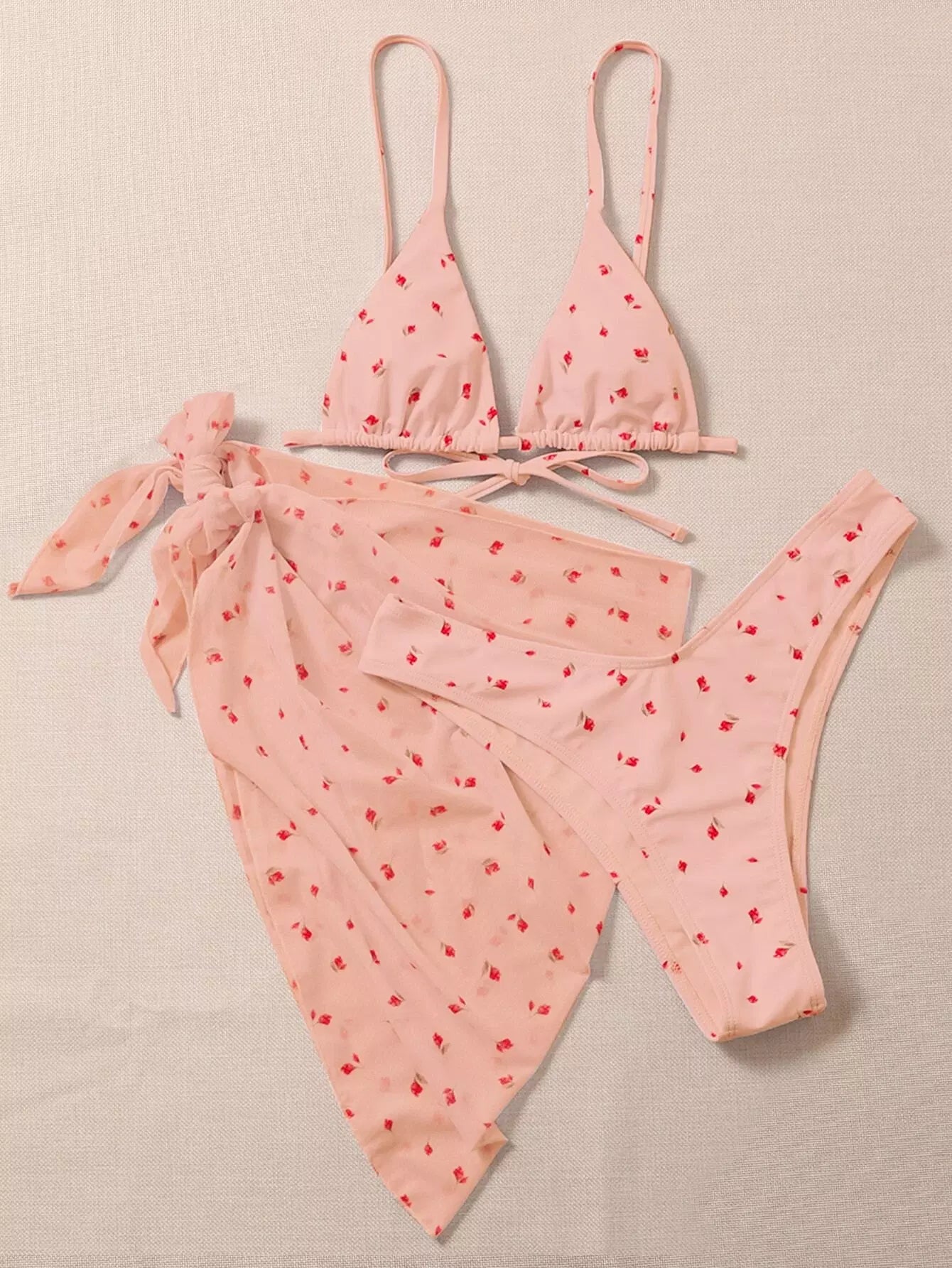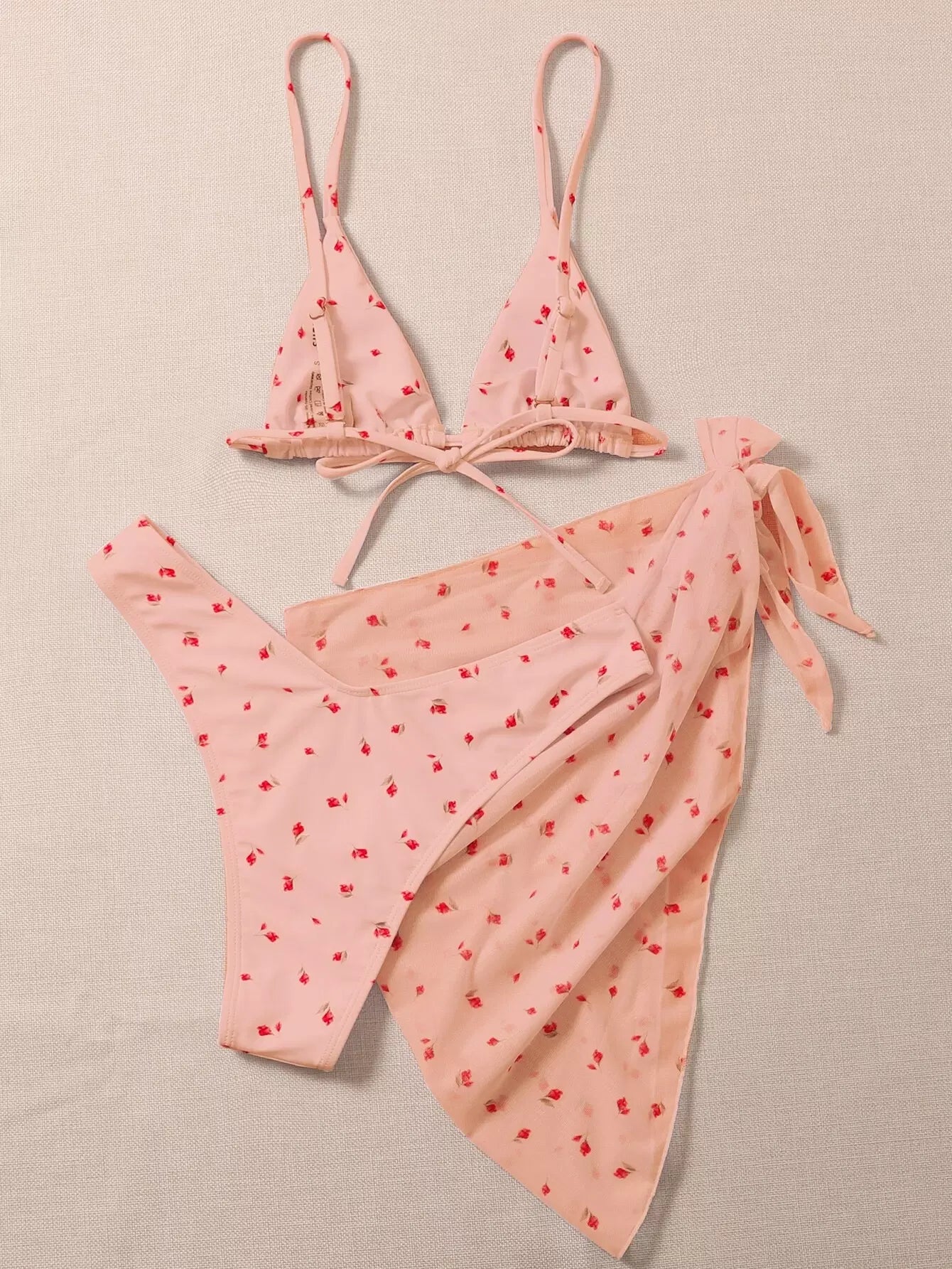 3pack Floral Triangle Bikini Swimsuit With Beach Skirt