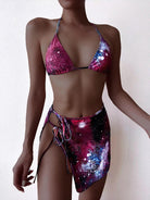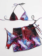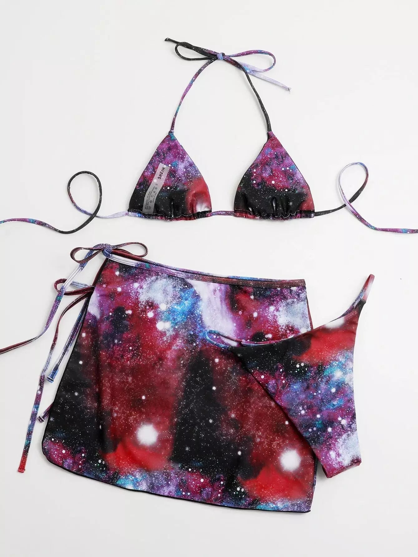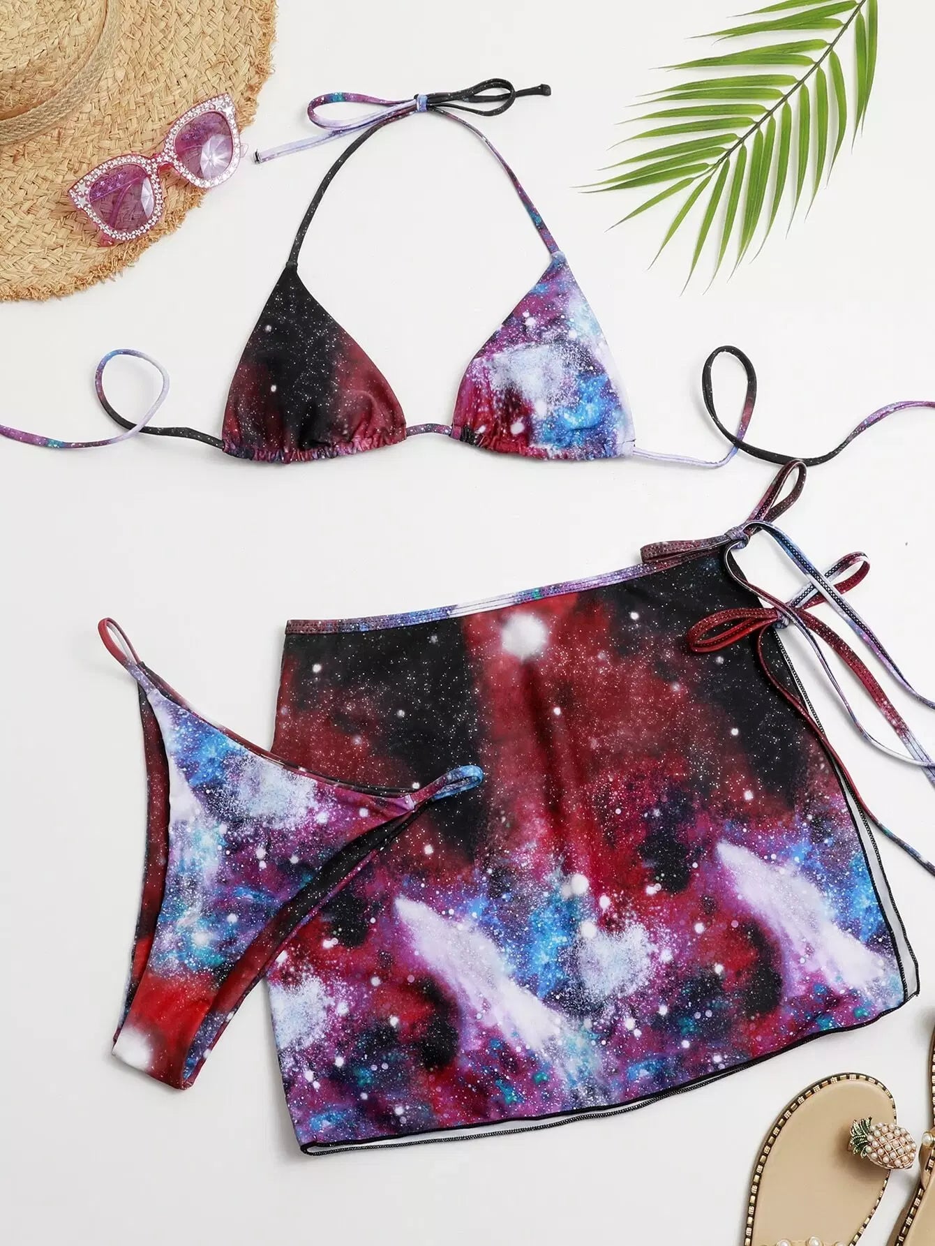 3pack Galaxy Print Bikini Swimsuit & Beach Skirt