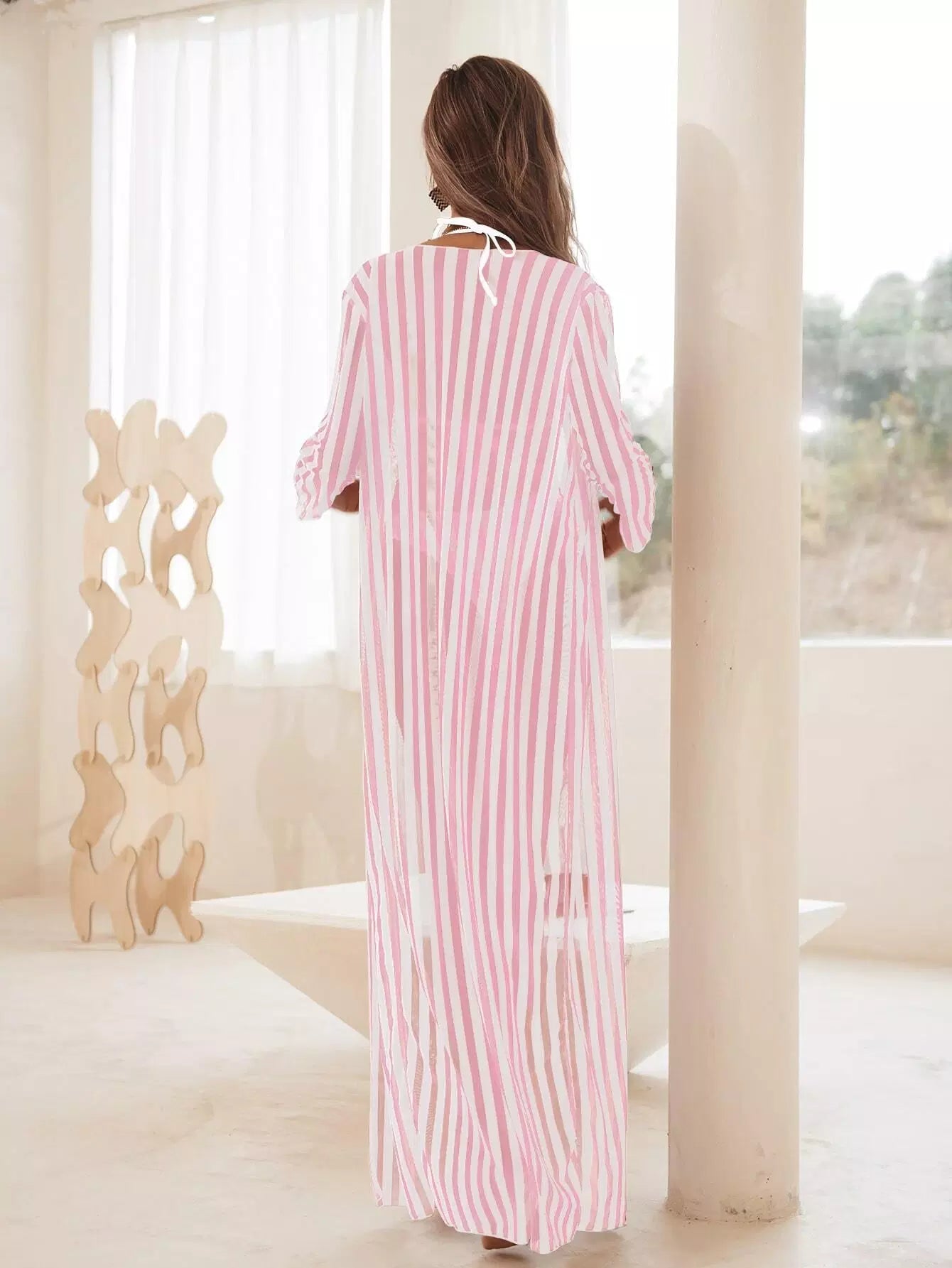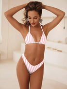 3pack Striped Triangle Bikini Swimsuit With Kimono