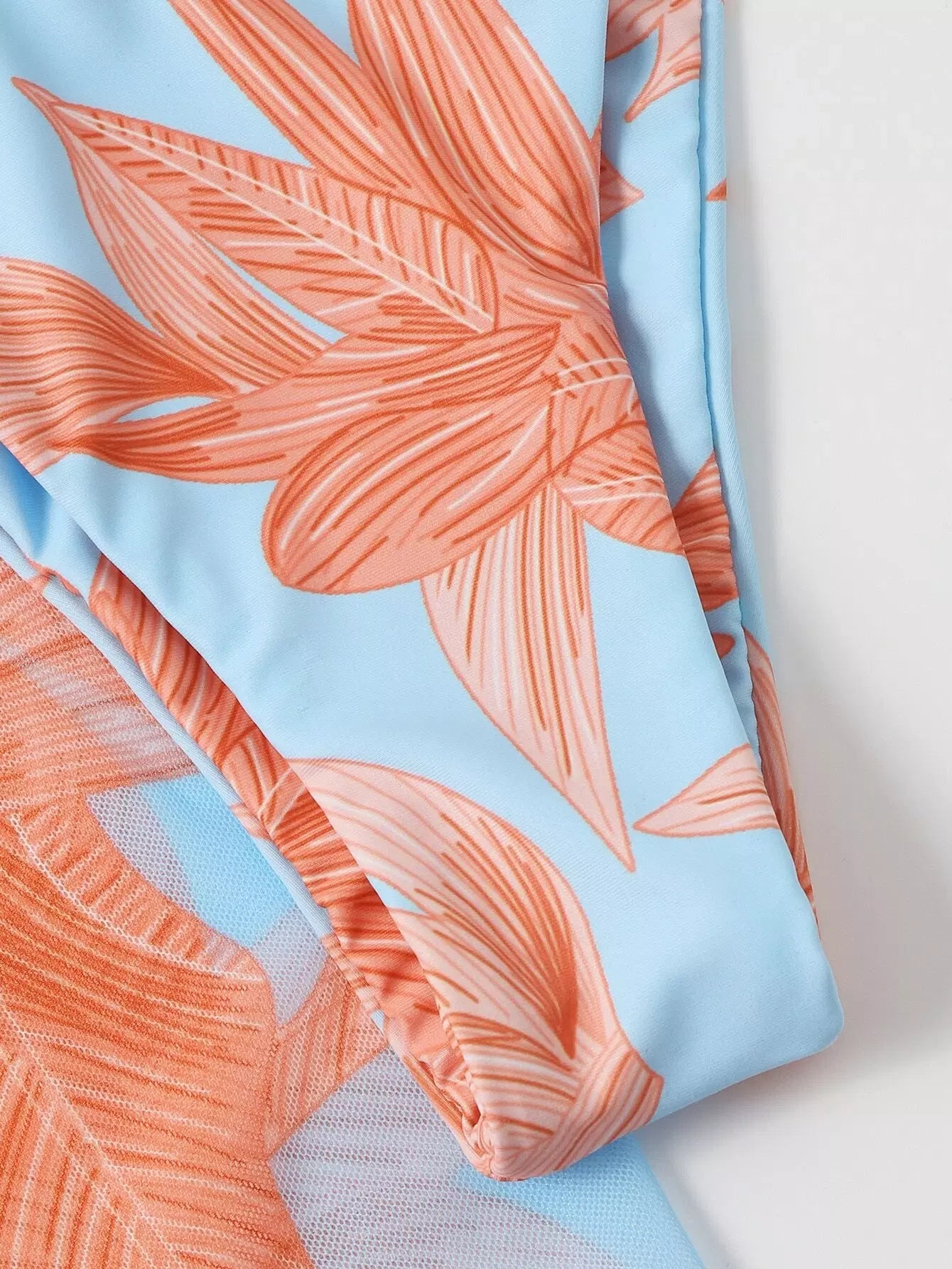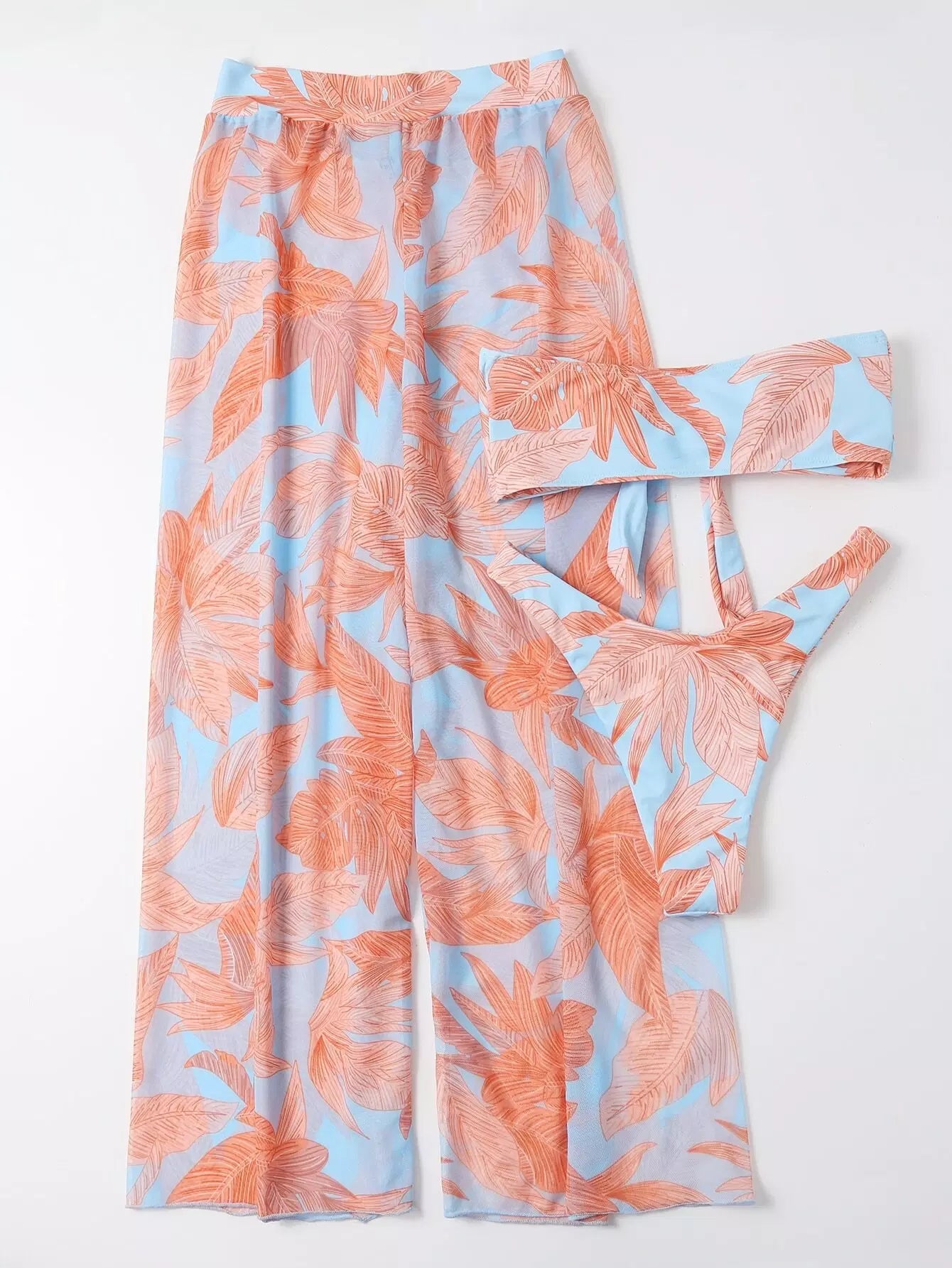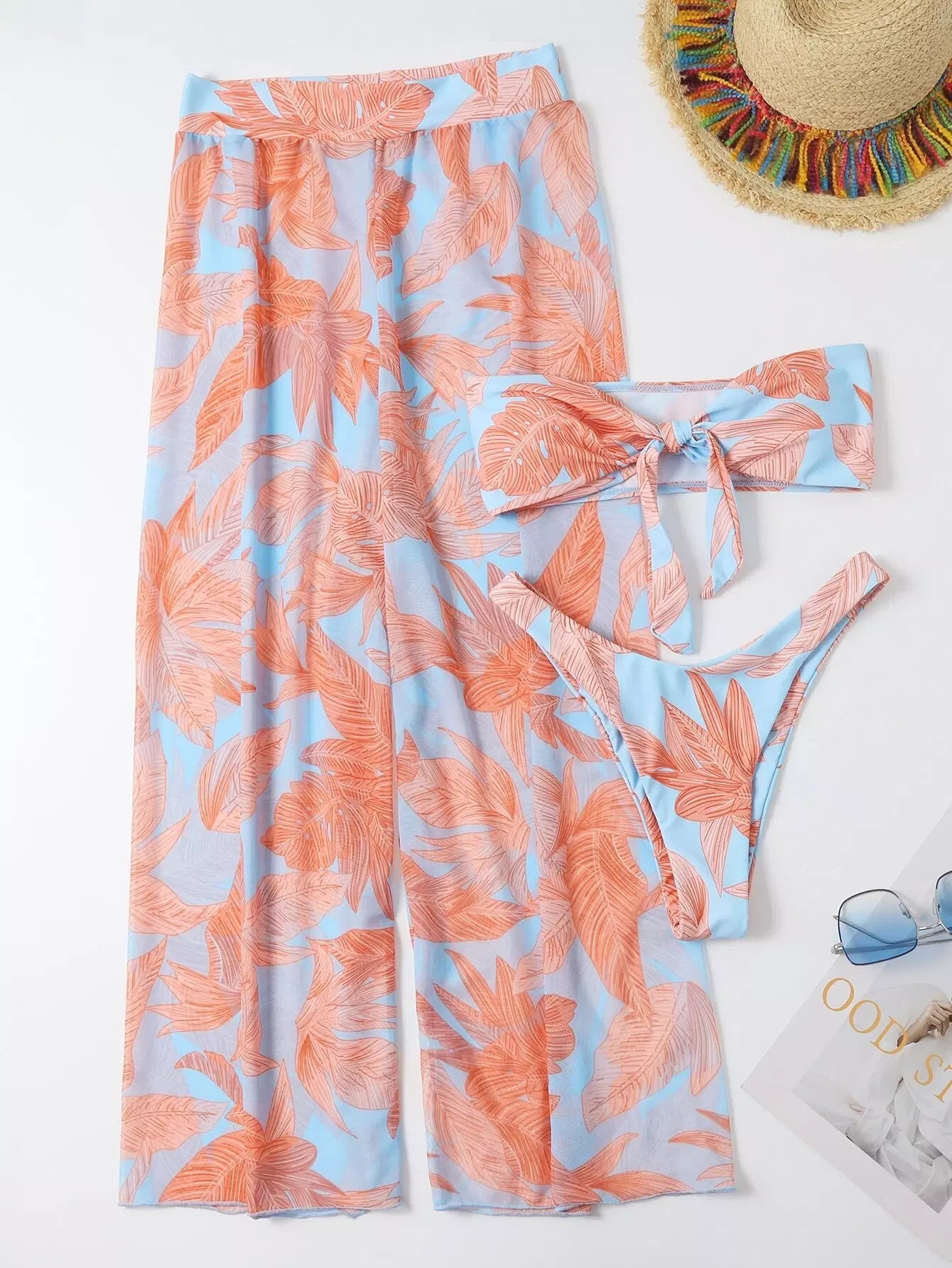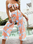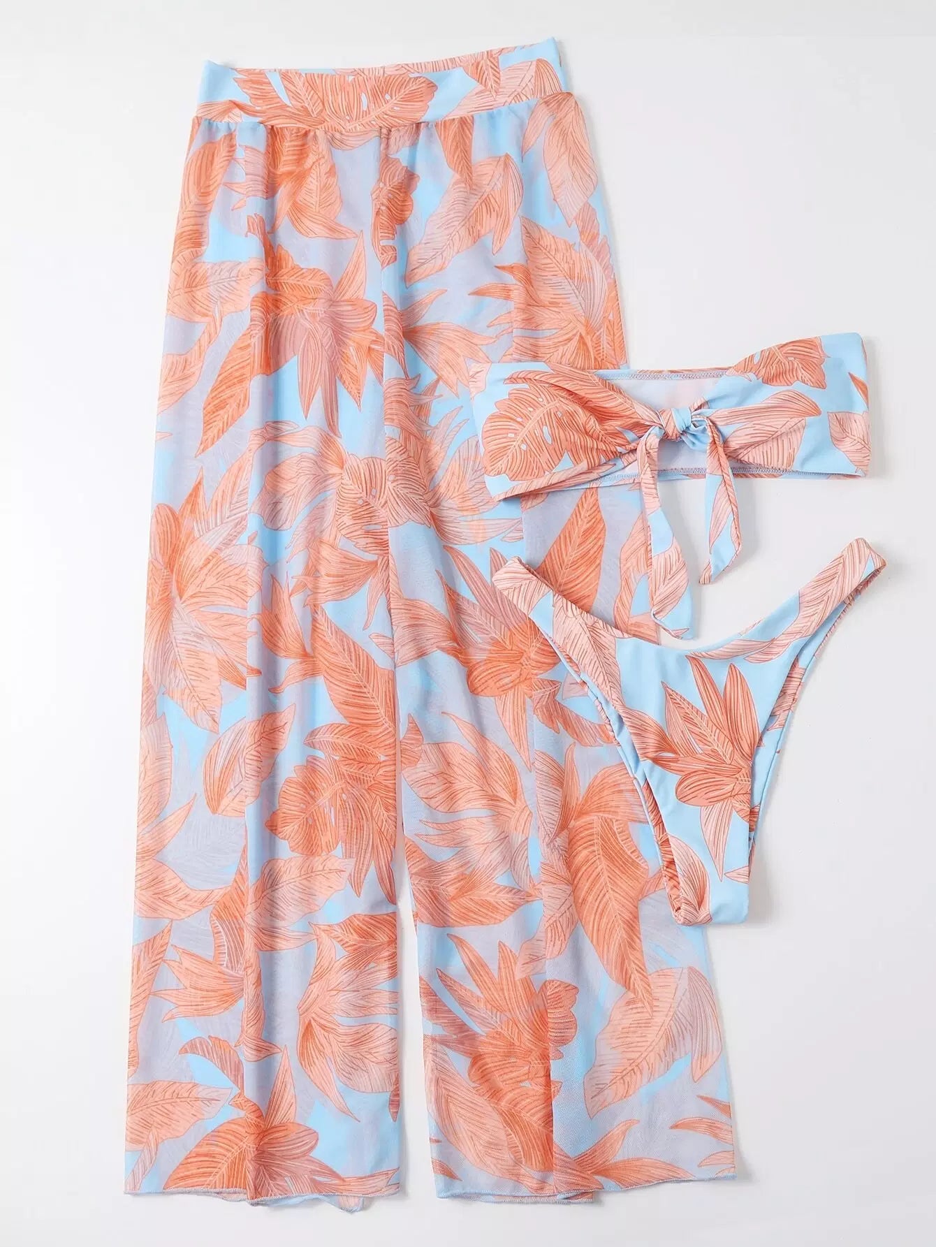 3pack Tropical Print Knot Bandeau Bikini Swimsuit & Beach Pants
