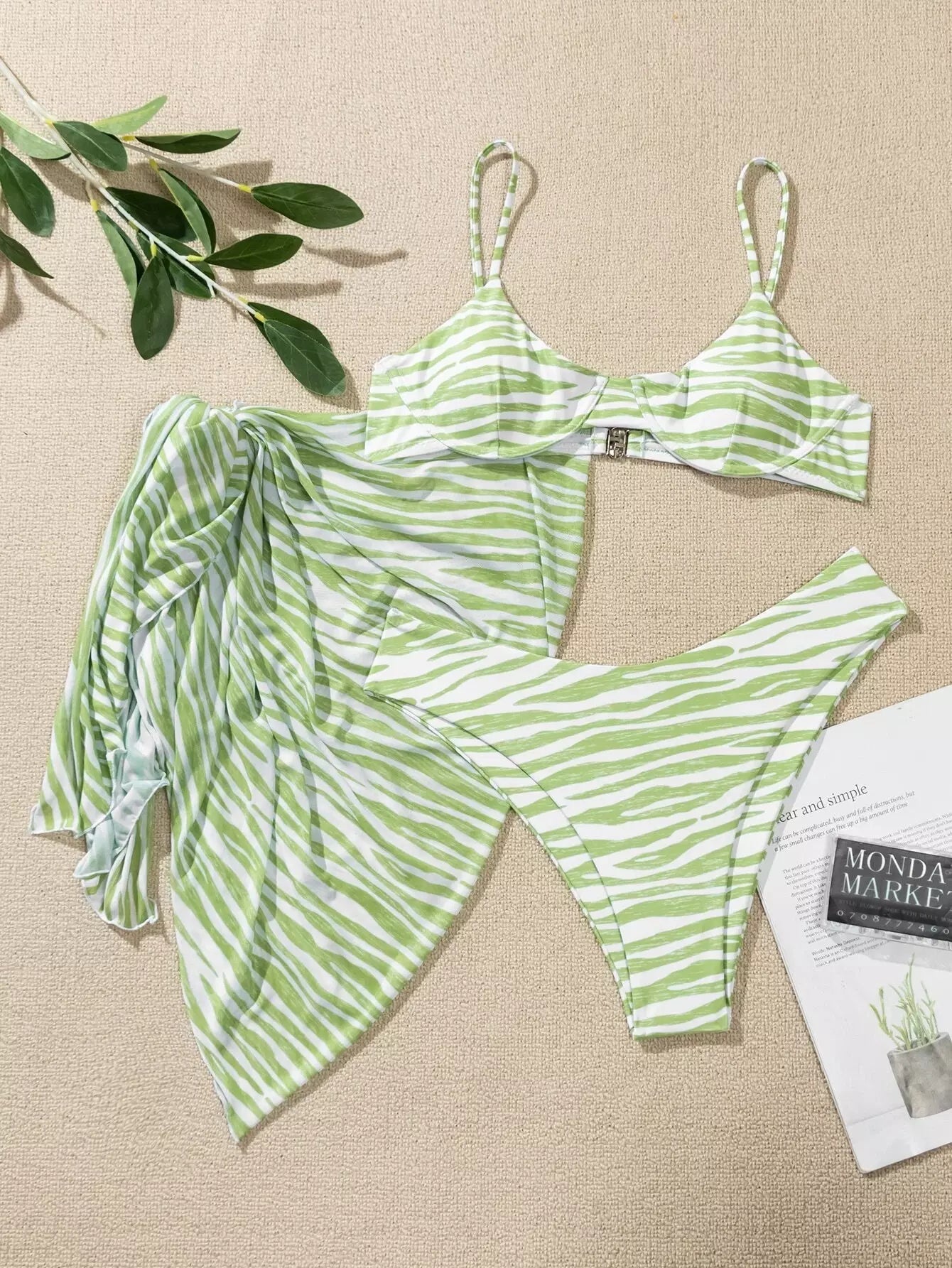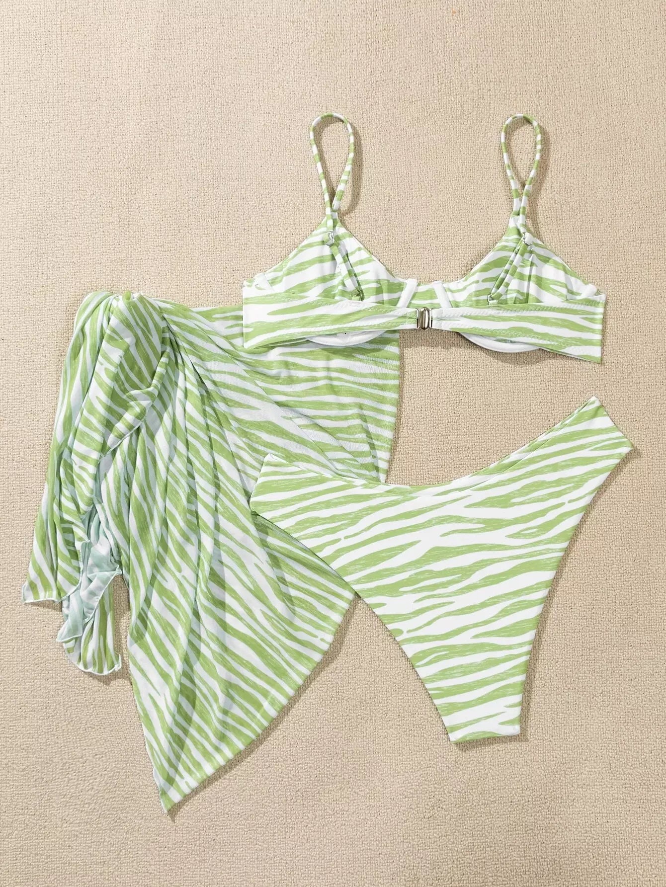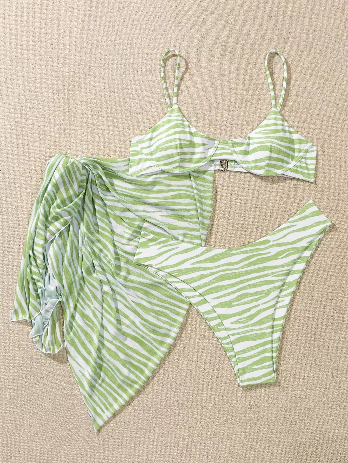 3pack Zebra Stripe Underwire Bikini Swimsuit & Cover Up