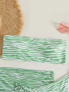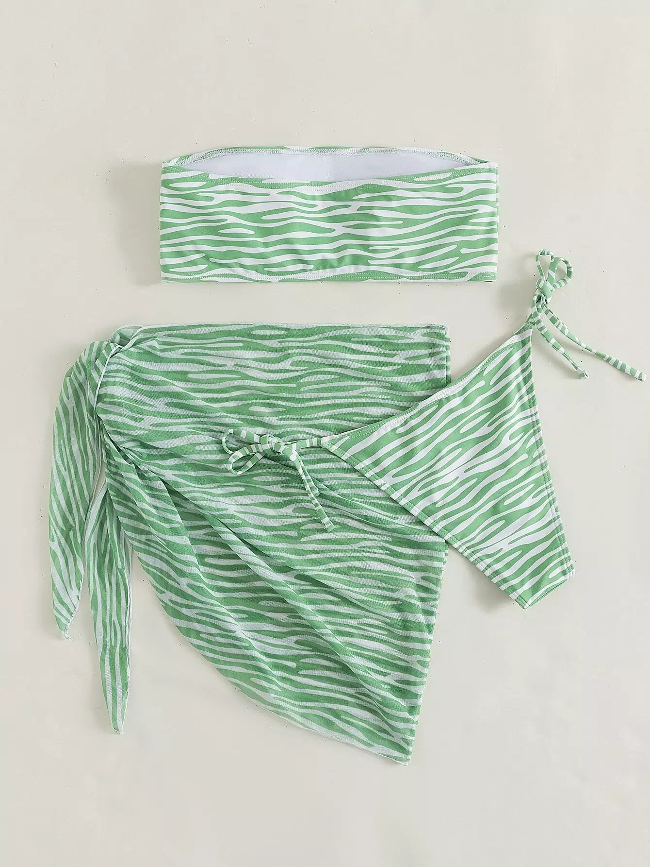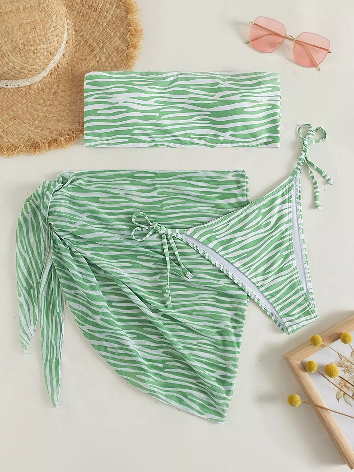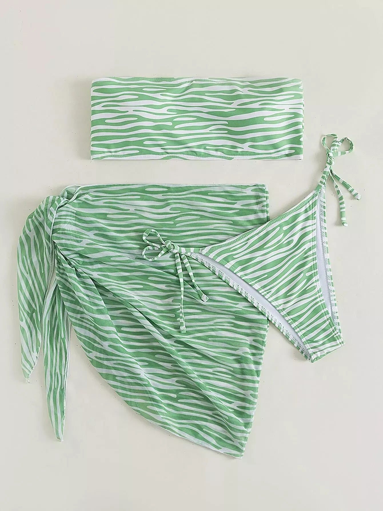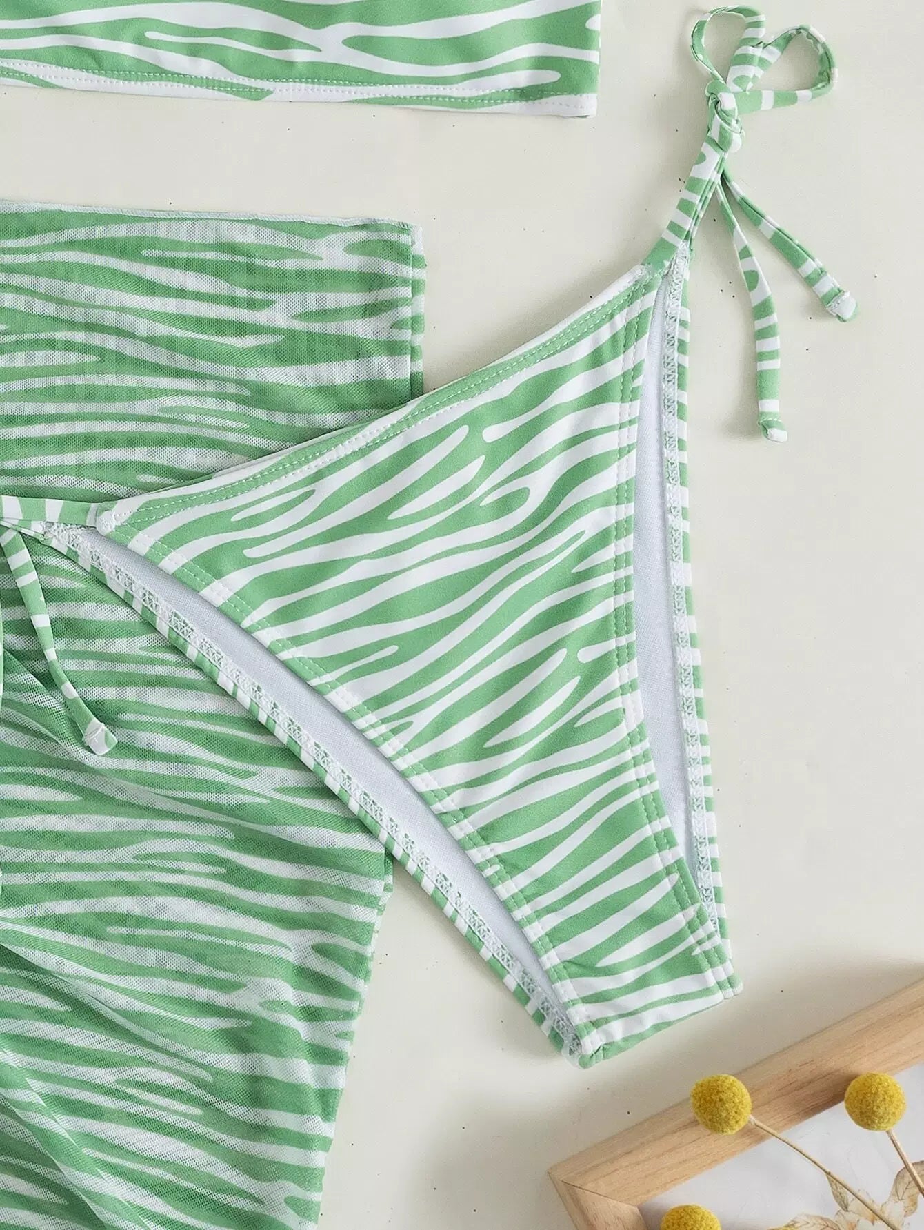 3pack Zebra Striped Bandeau Bikini Swimsuit & Beach Skirt