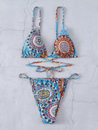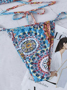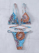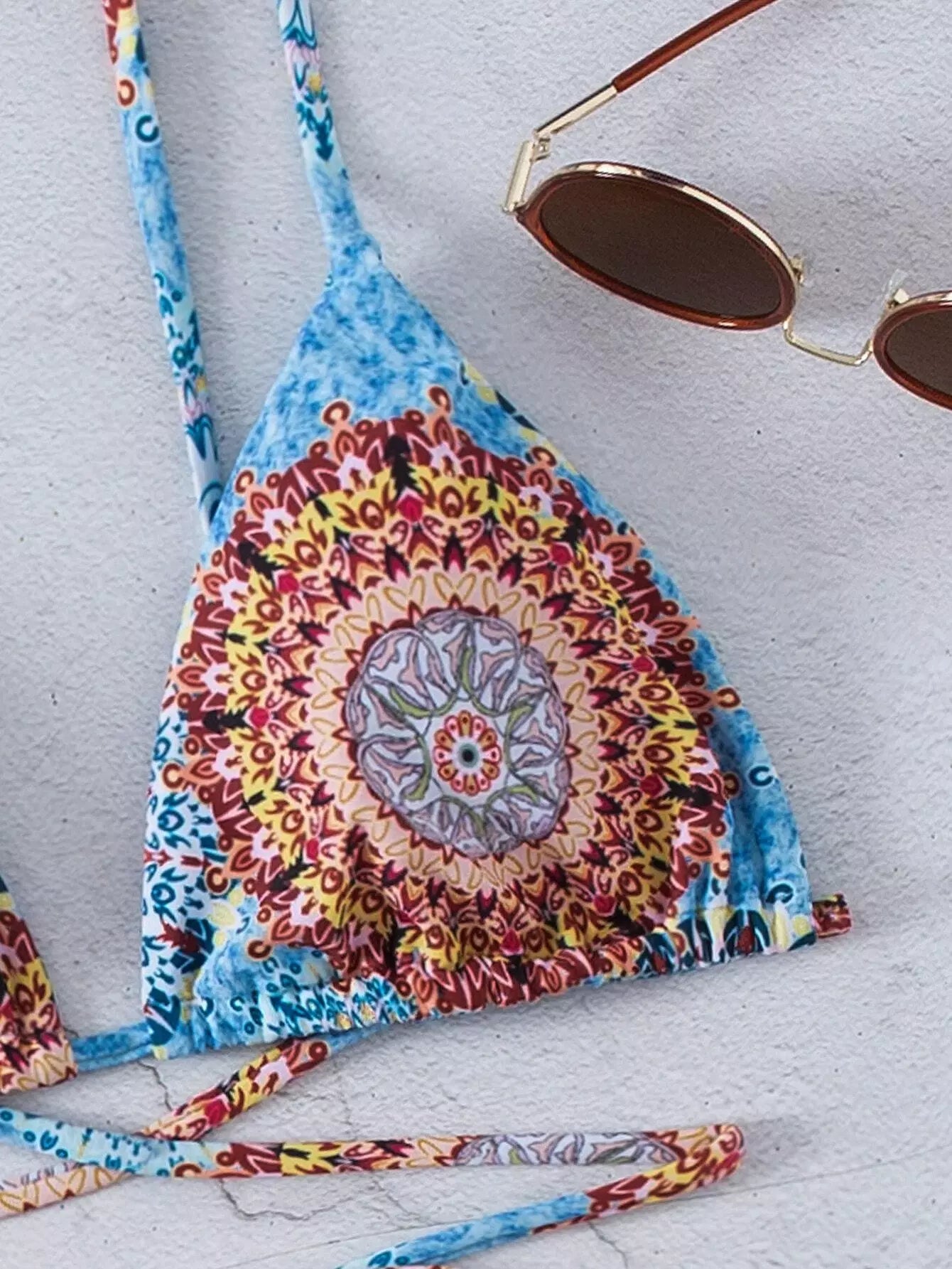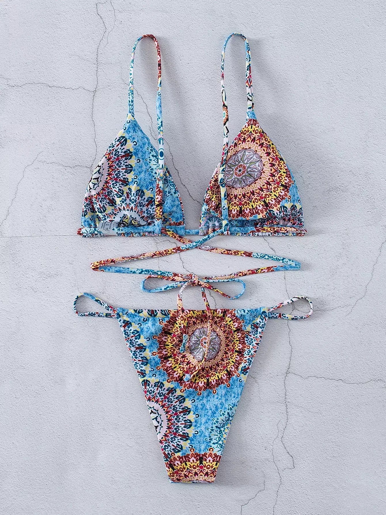 Allover Graphic Triangle Thong Bikini Swimsuit