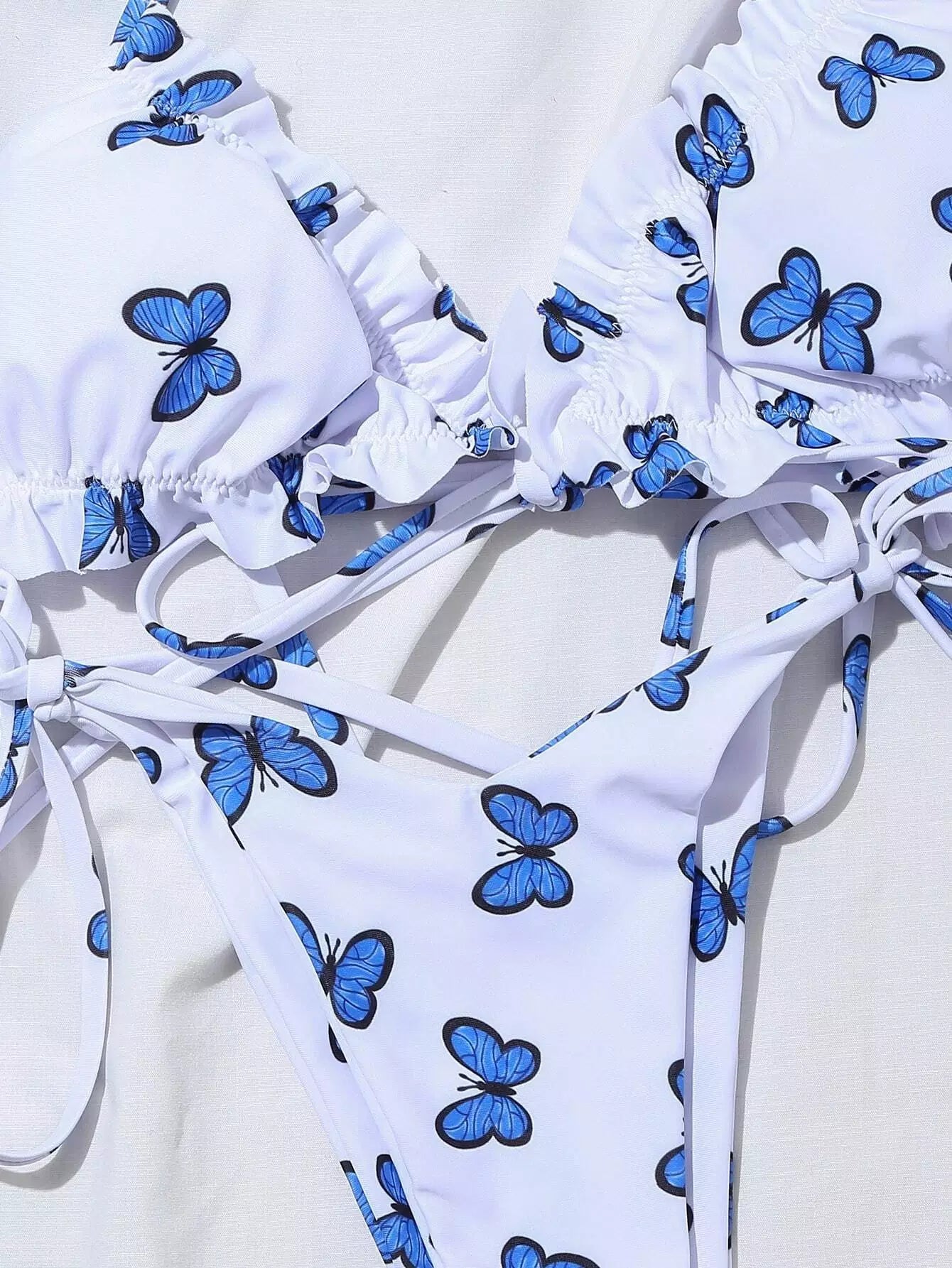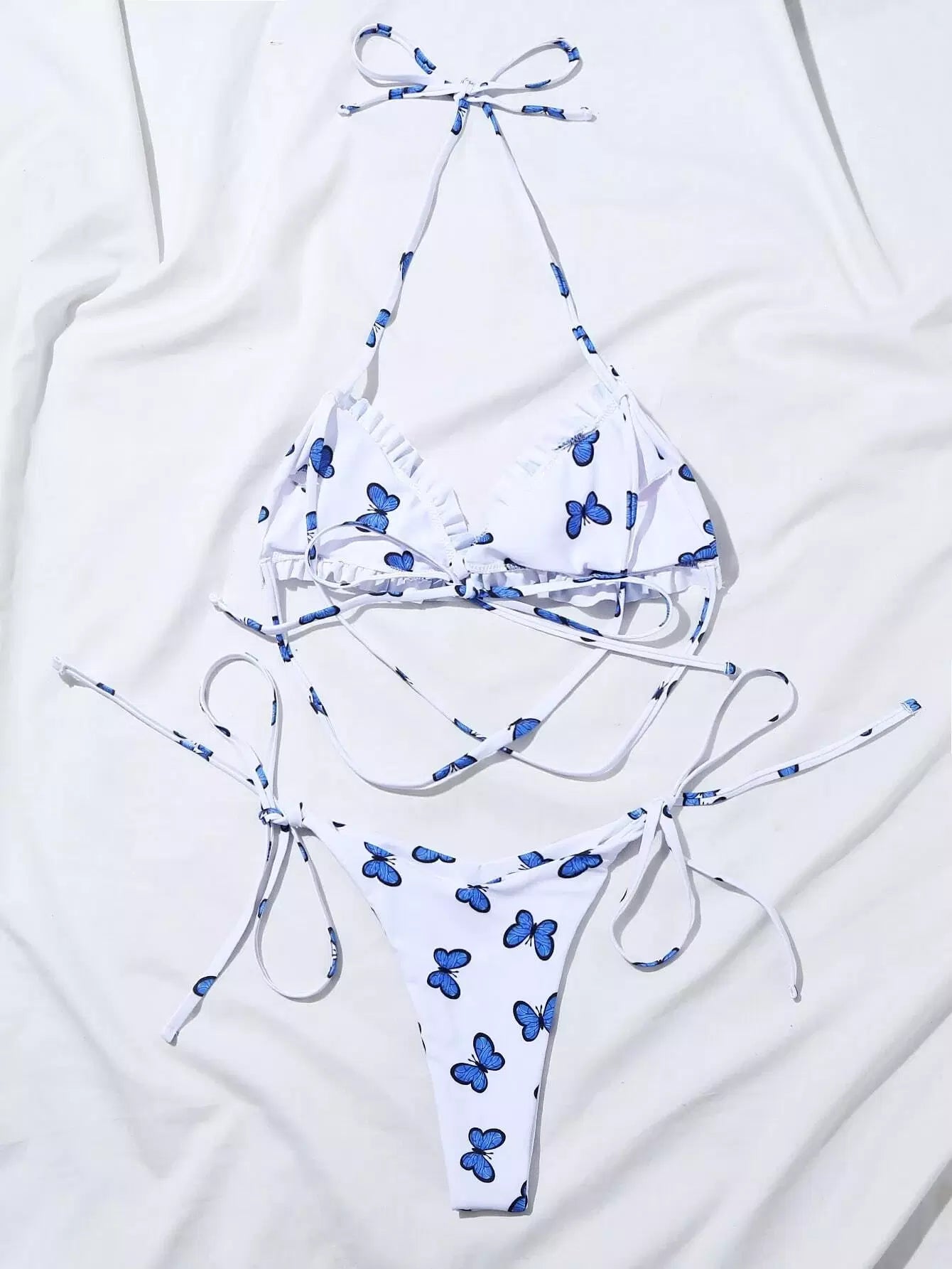 Butterfly Print Self-Tie Halter Bikini Swimsuit