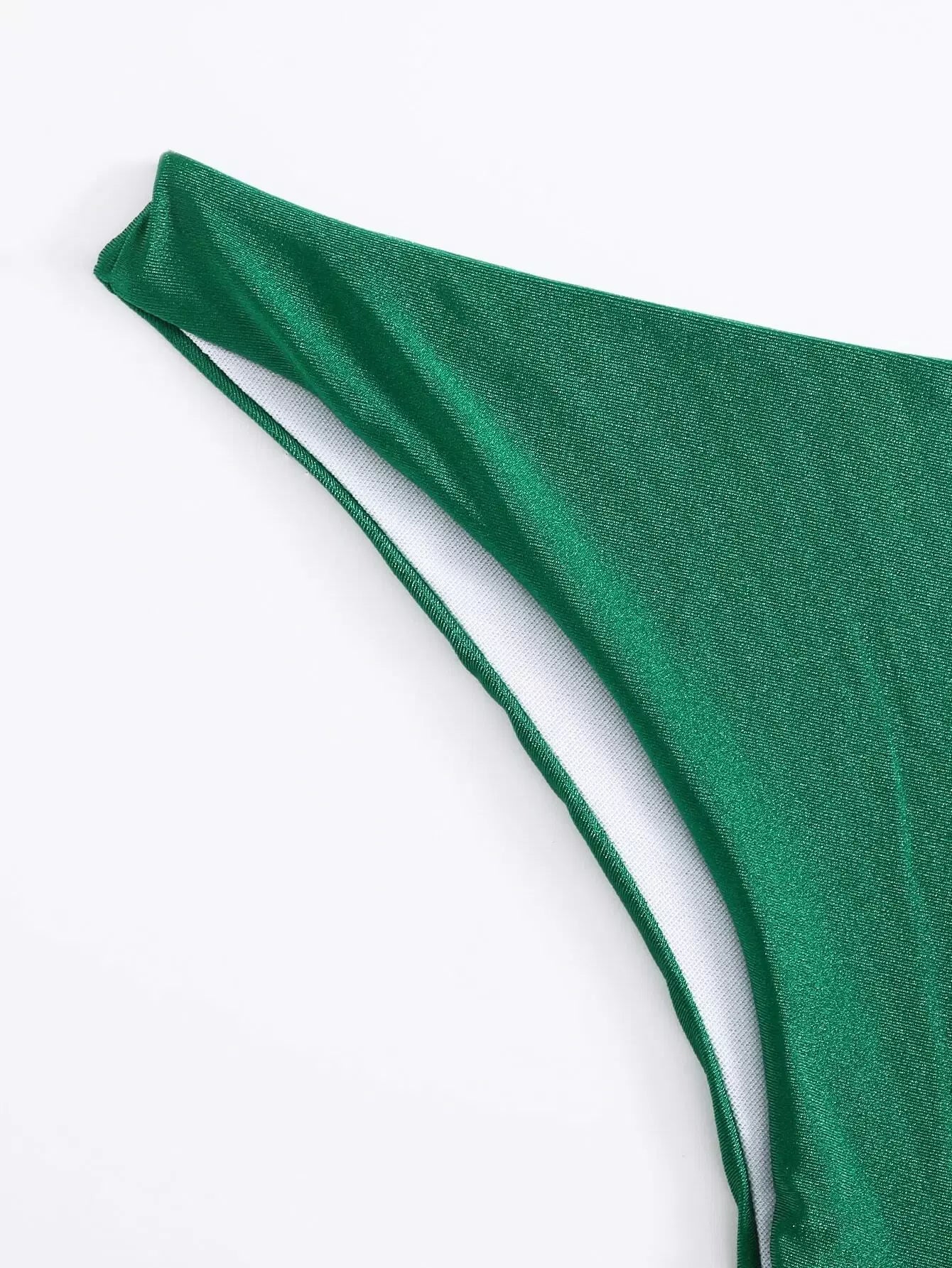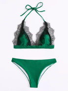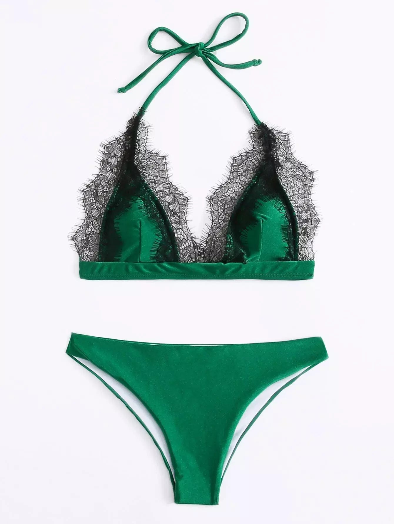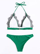 Contrast Lace Triangle Halter Bikini Swimsuit