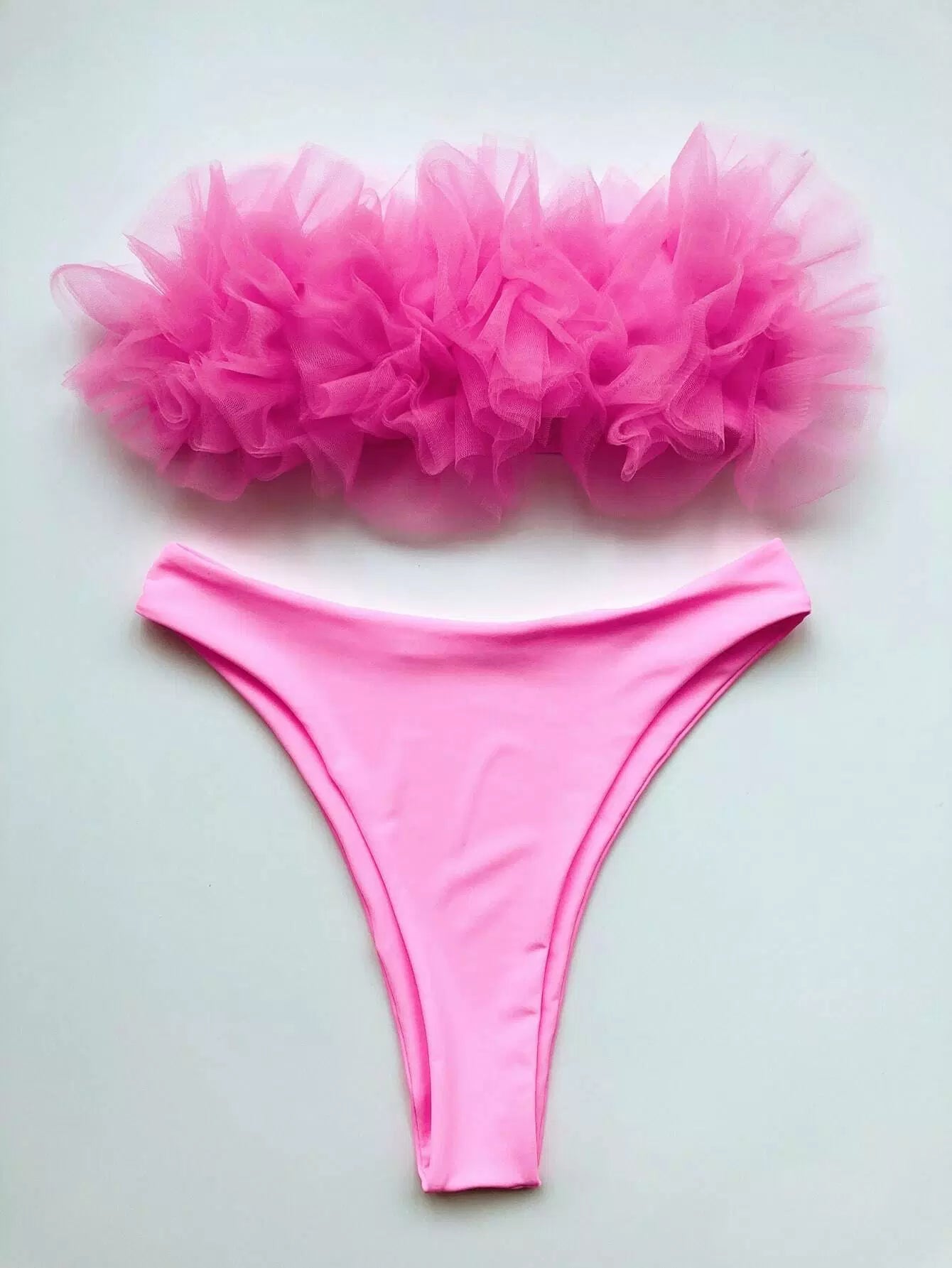 Contrast Mesh Bandeau High Cut Bikini Swimsuit