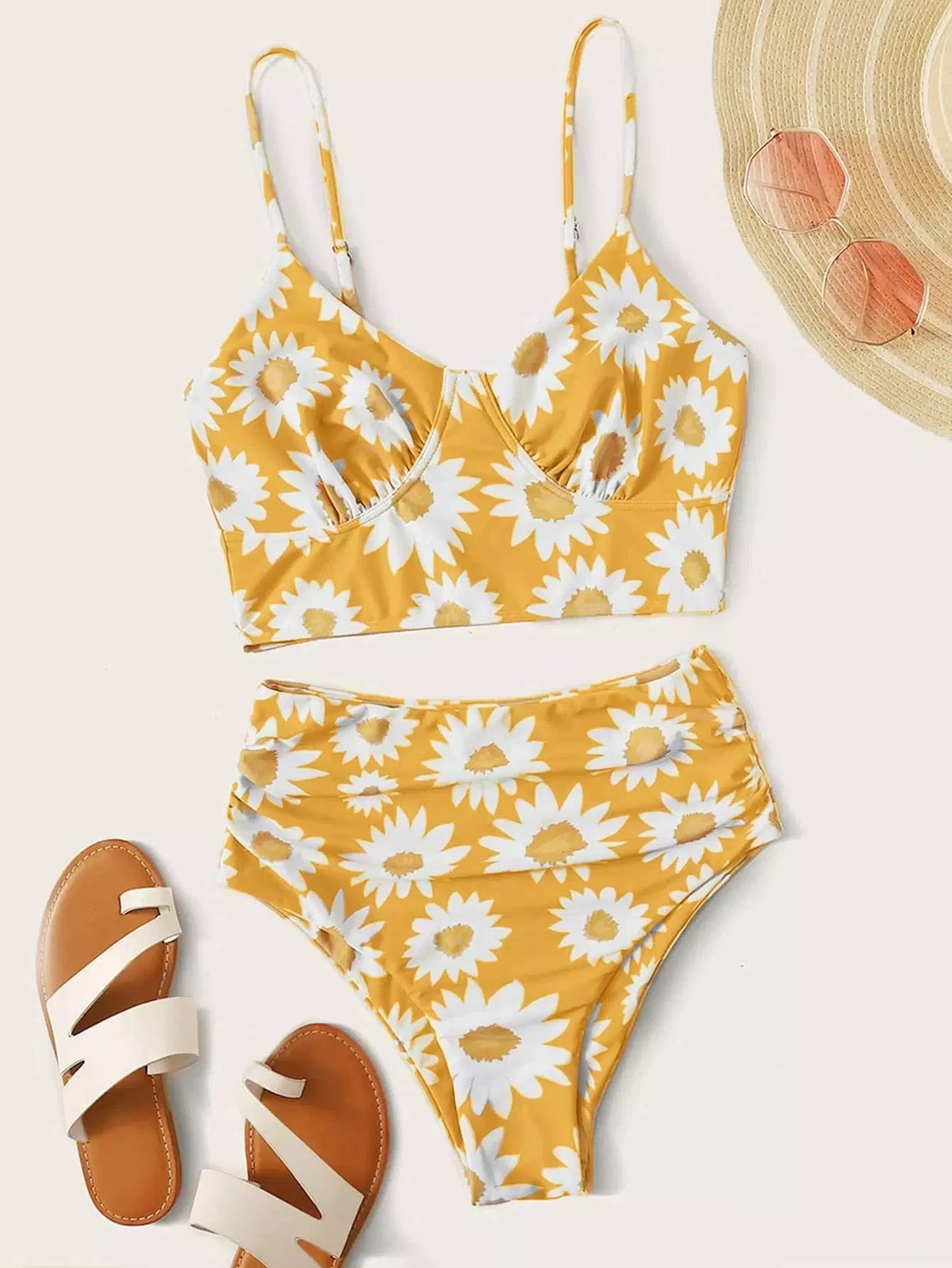Daisy Floral High Waisted Bikini Swimsuit