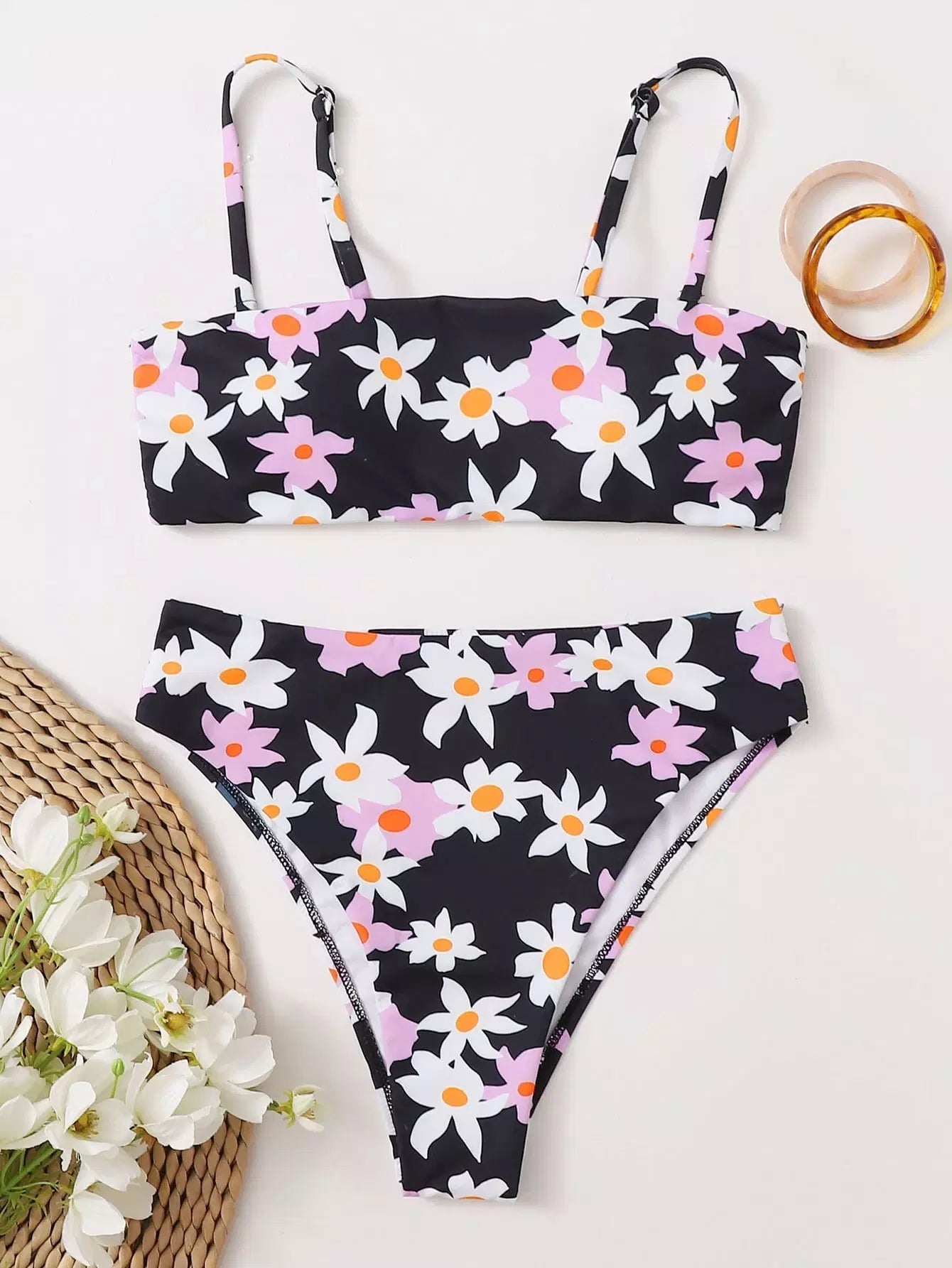 Floral High Waisted Bikini Swimsuit