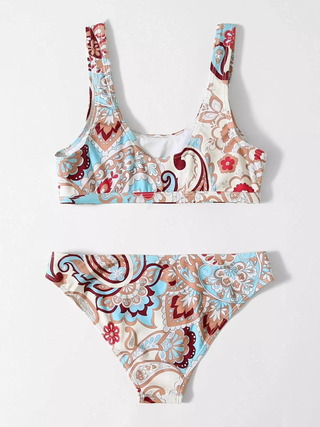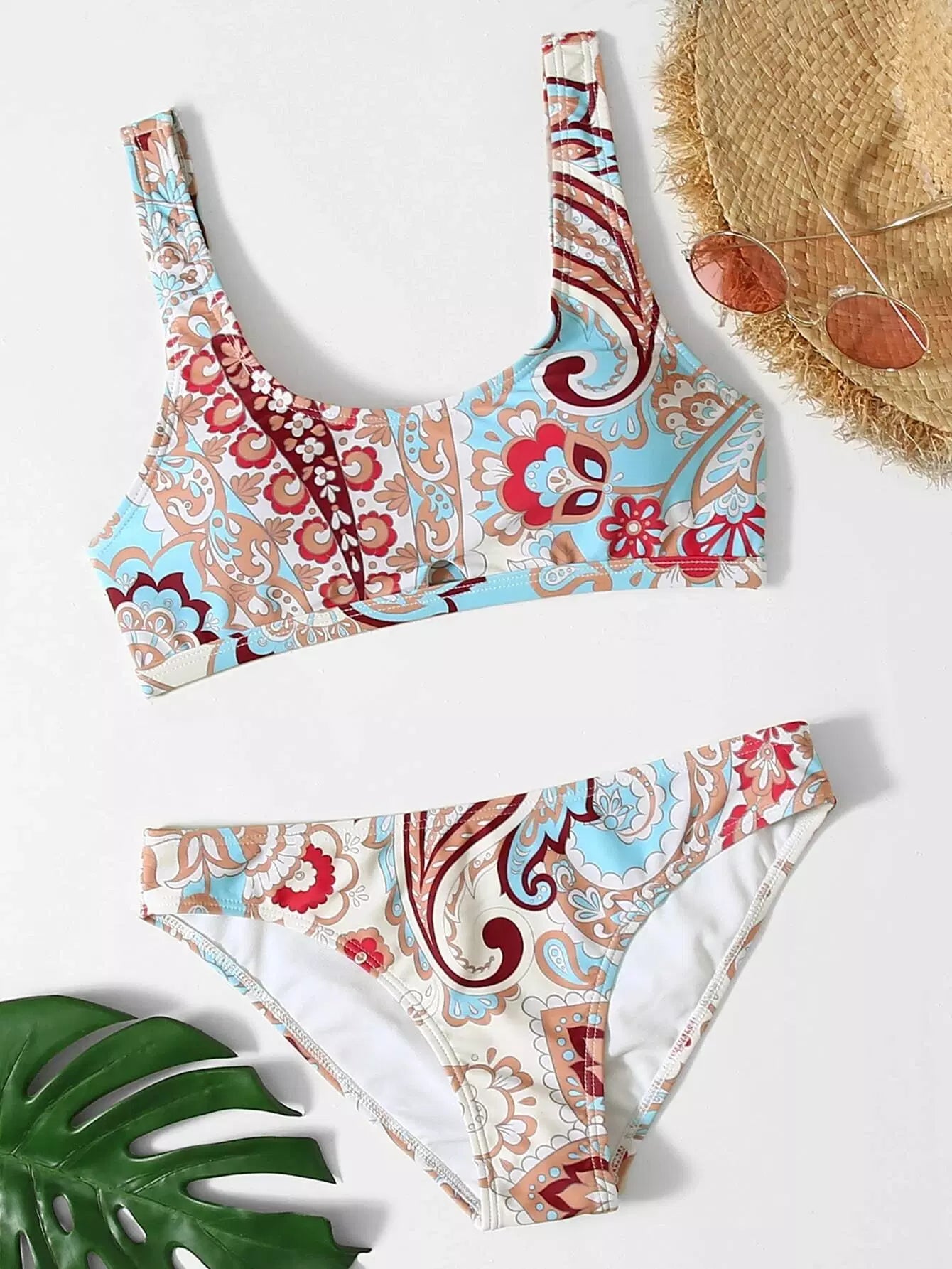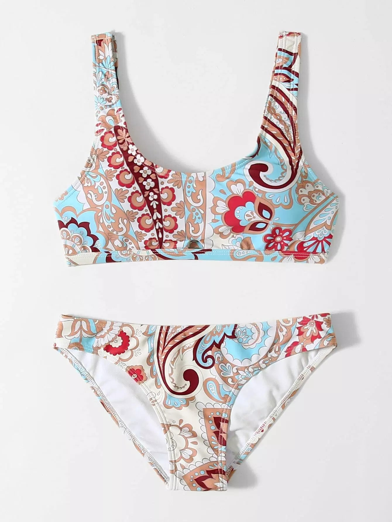Floral & Paisley Print Bikini Swimsuit