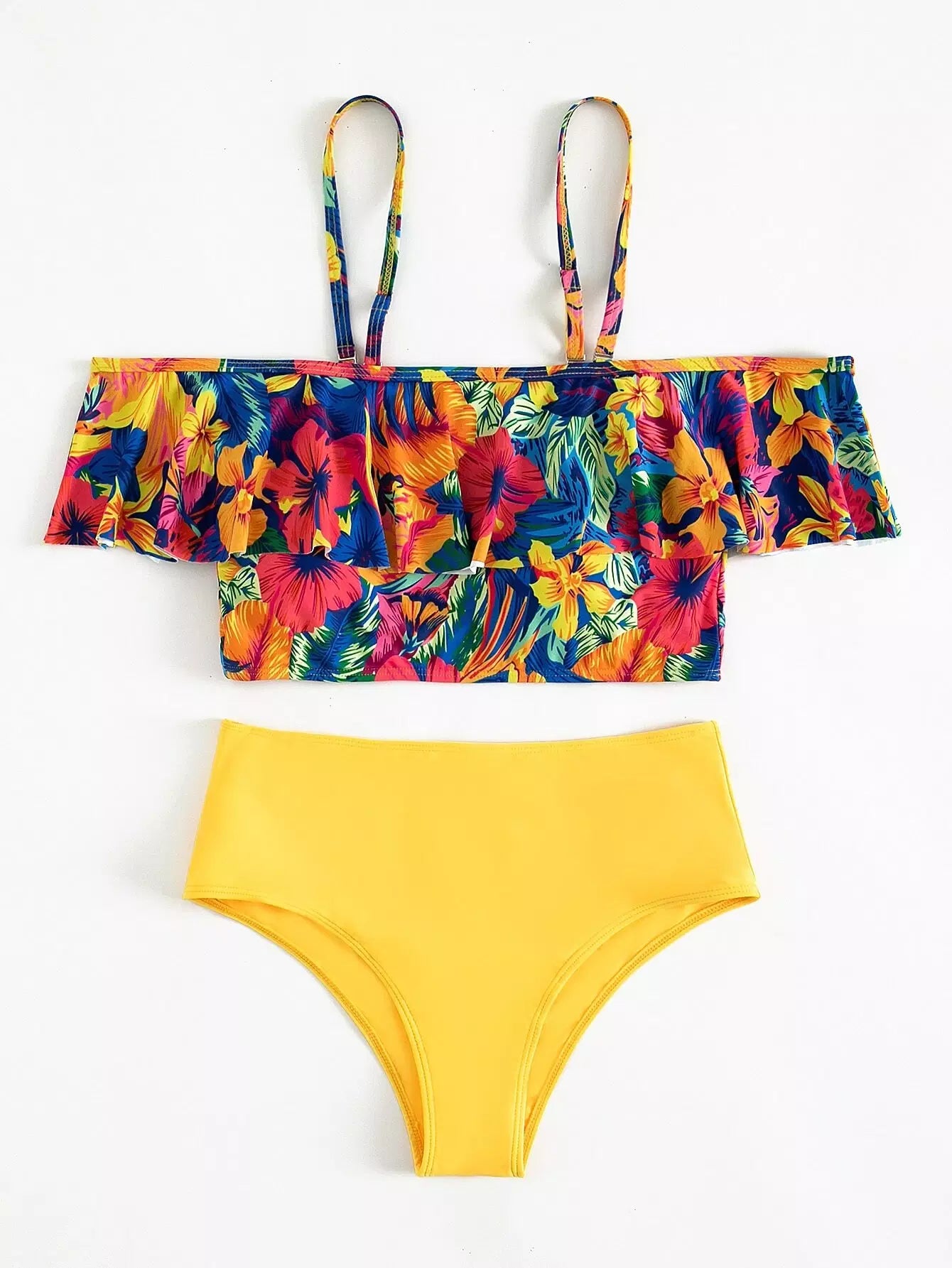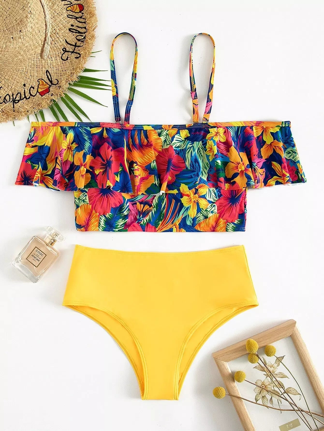 Floral Print Flounce Bardot Bikini Swimsuit