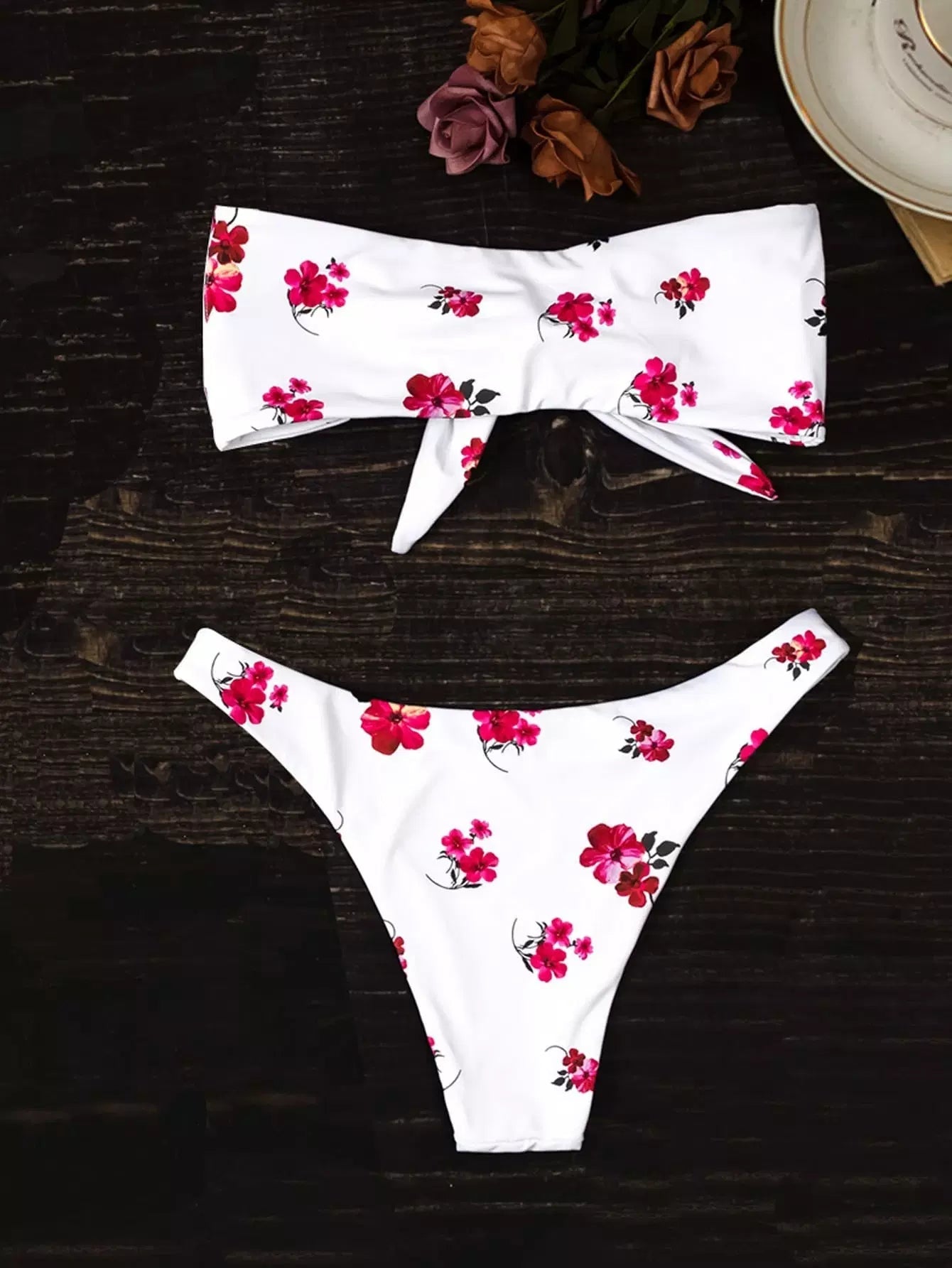 Floral Random Print Knot Bandeau Bikini Swimsuit