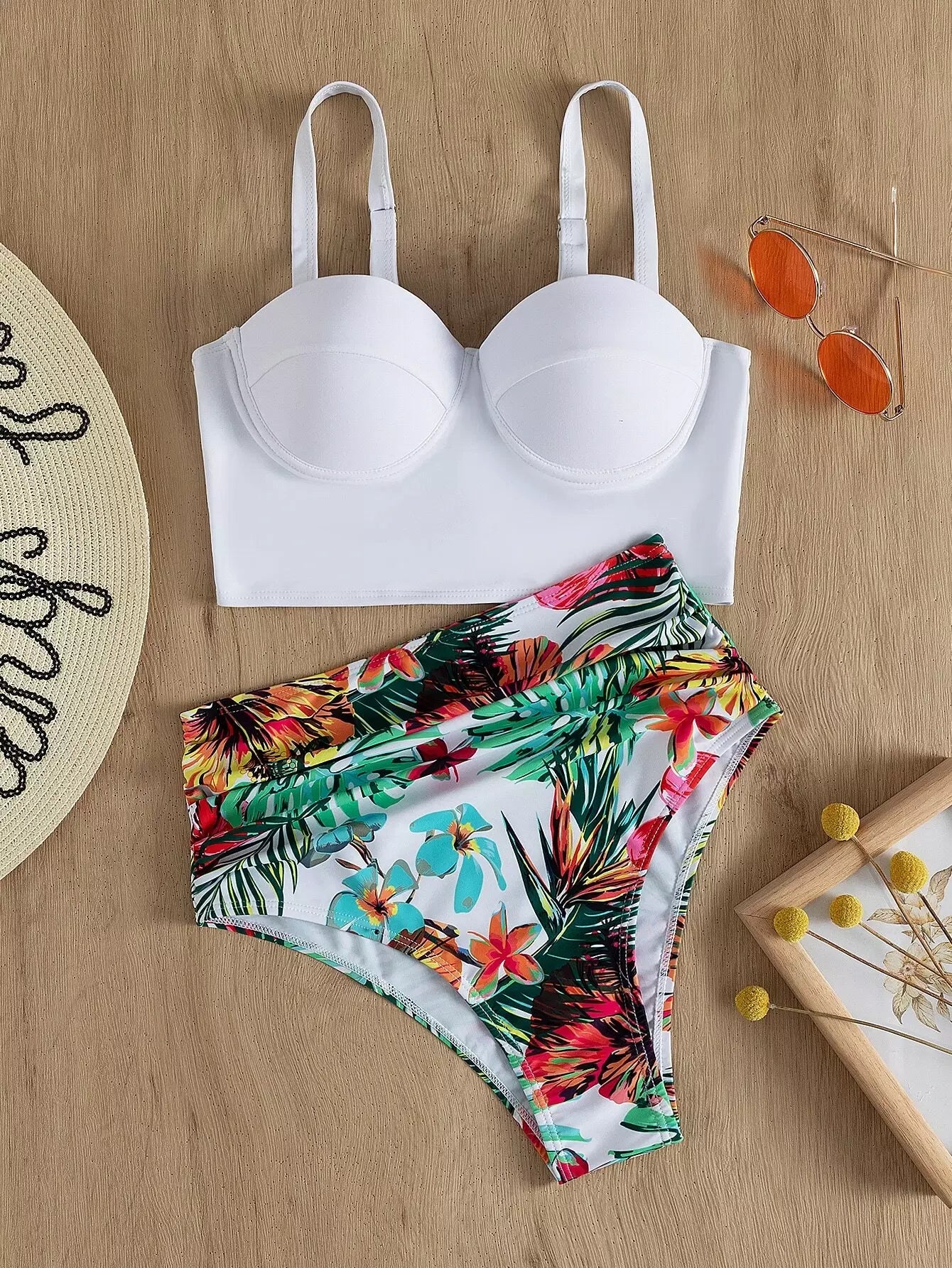 Floral & Tropical Ruched Push Up Bikini Swimsuit