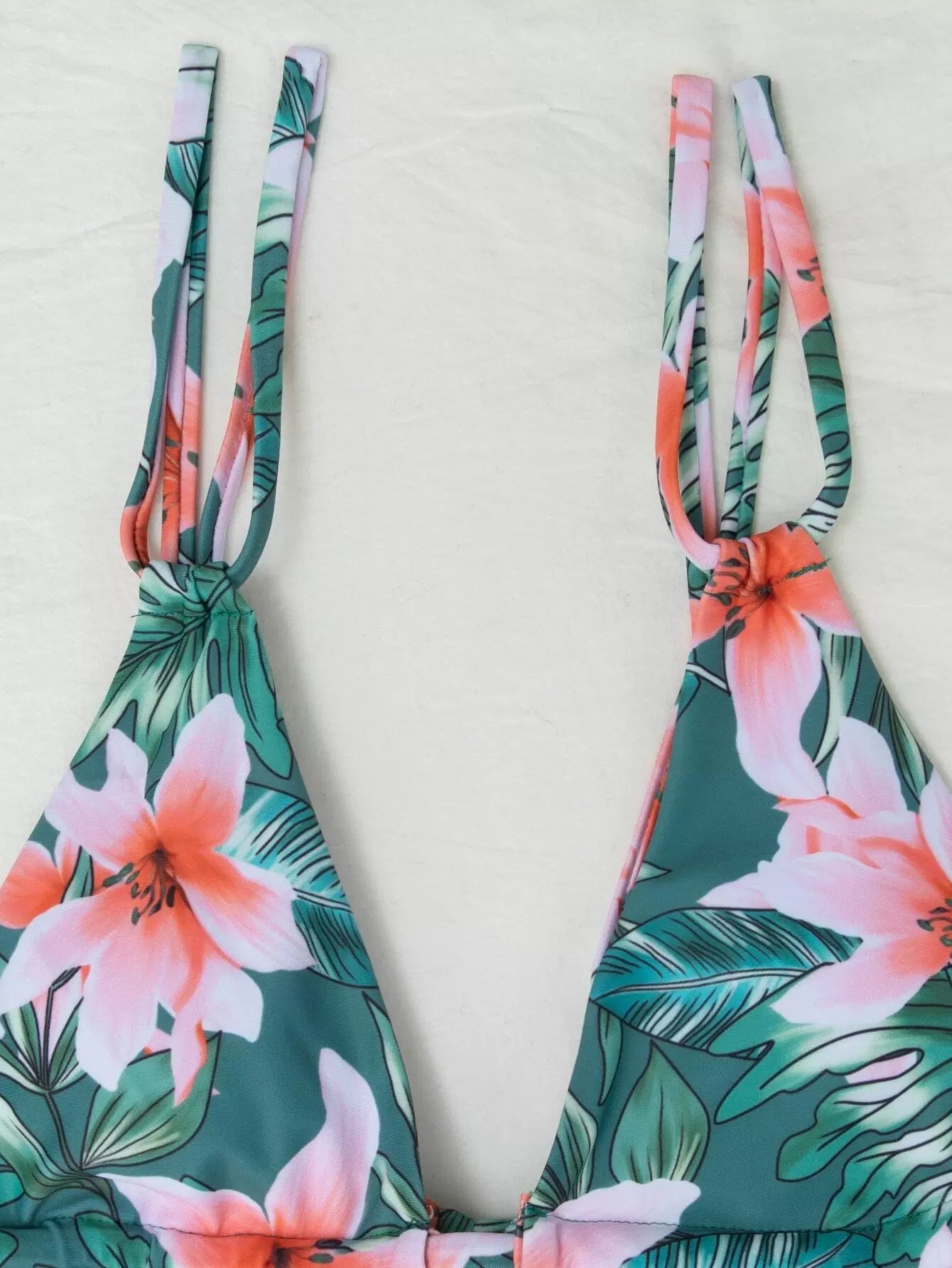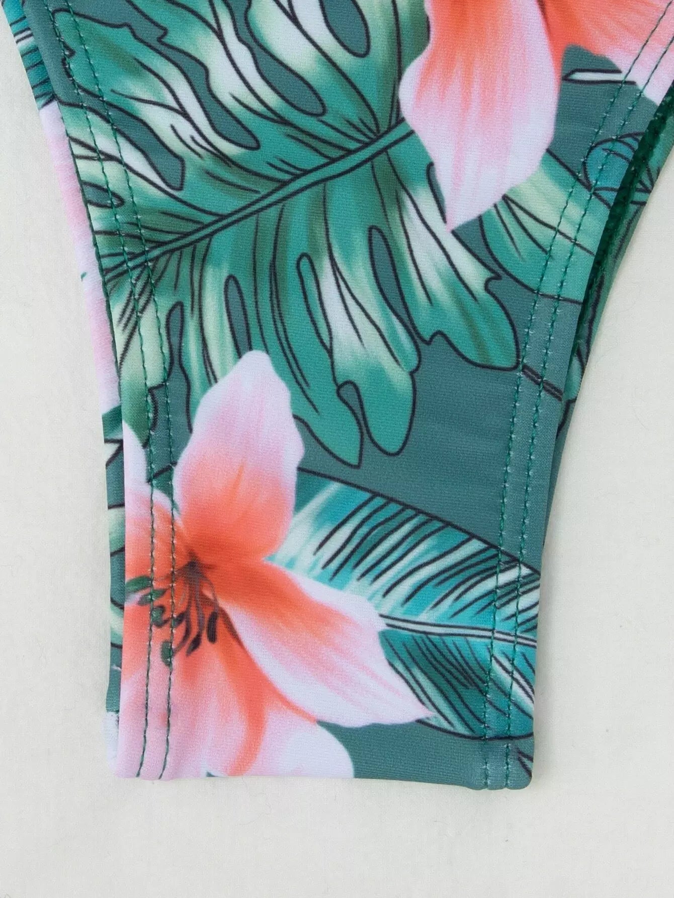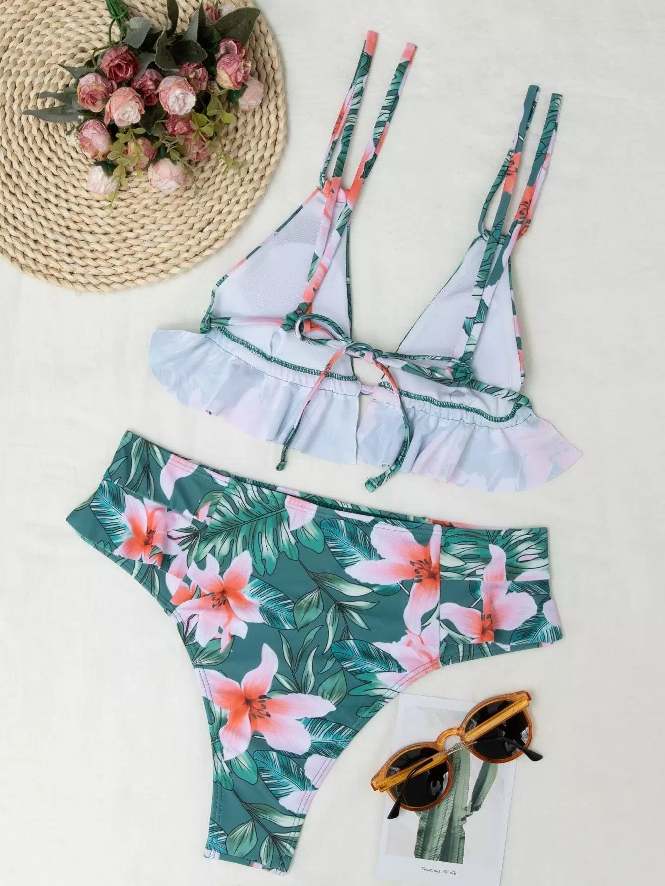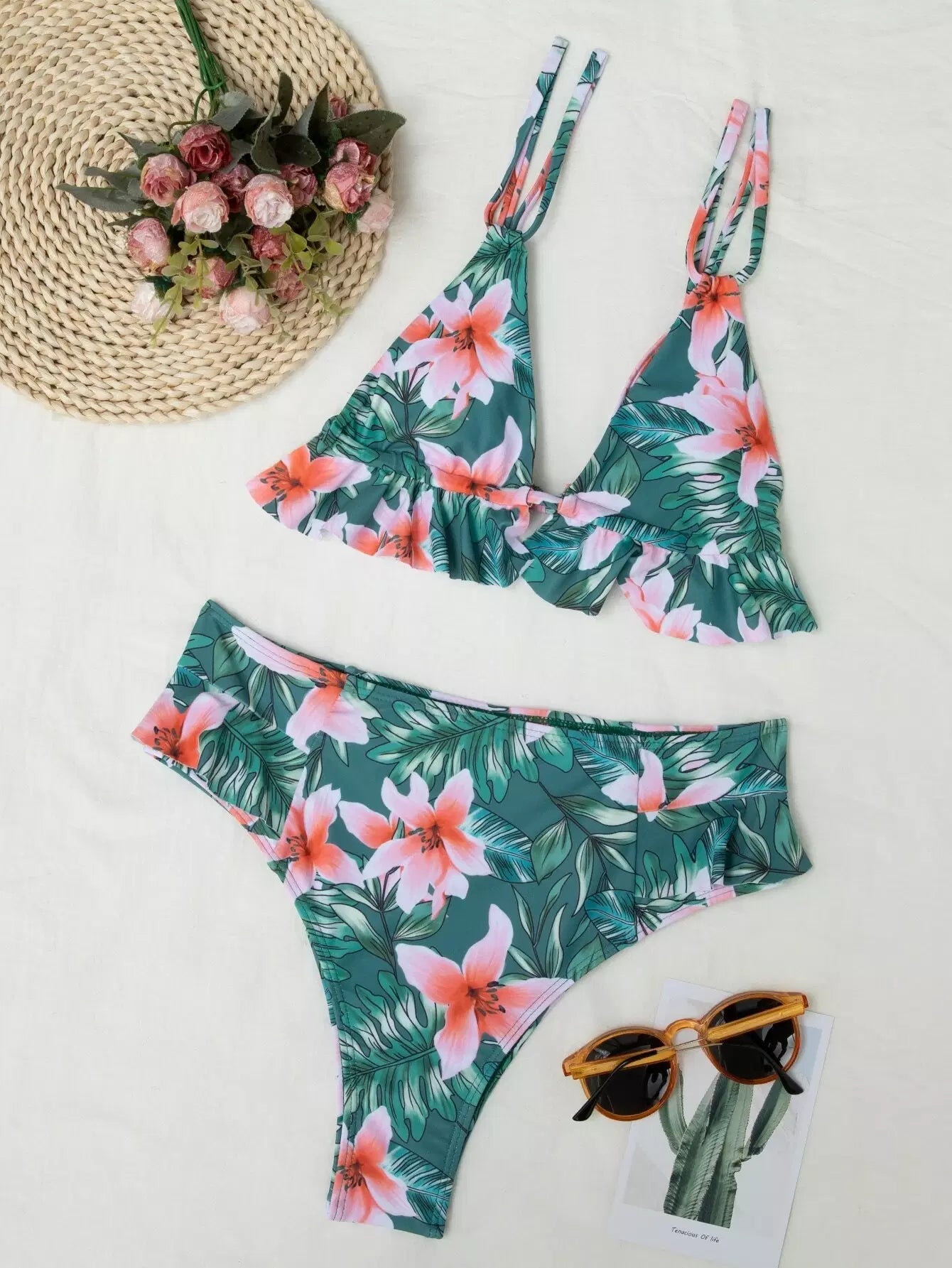Floral & Tropical Ruffle Hem Bikini Swimsuit