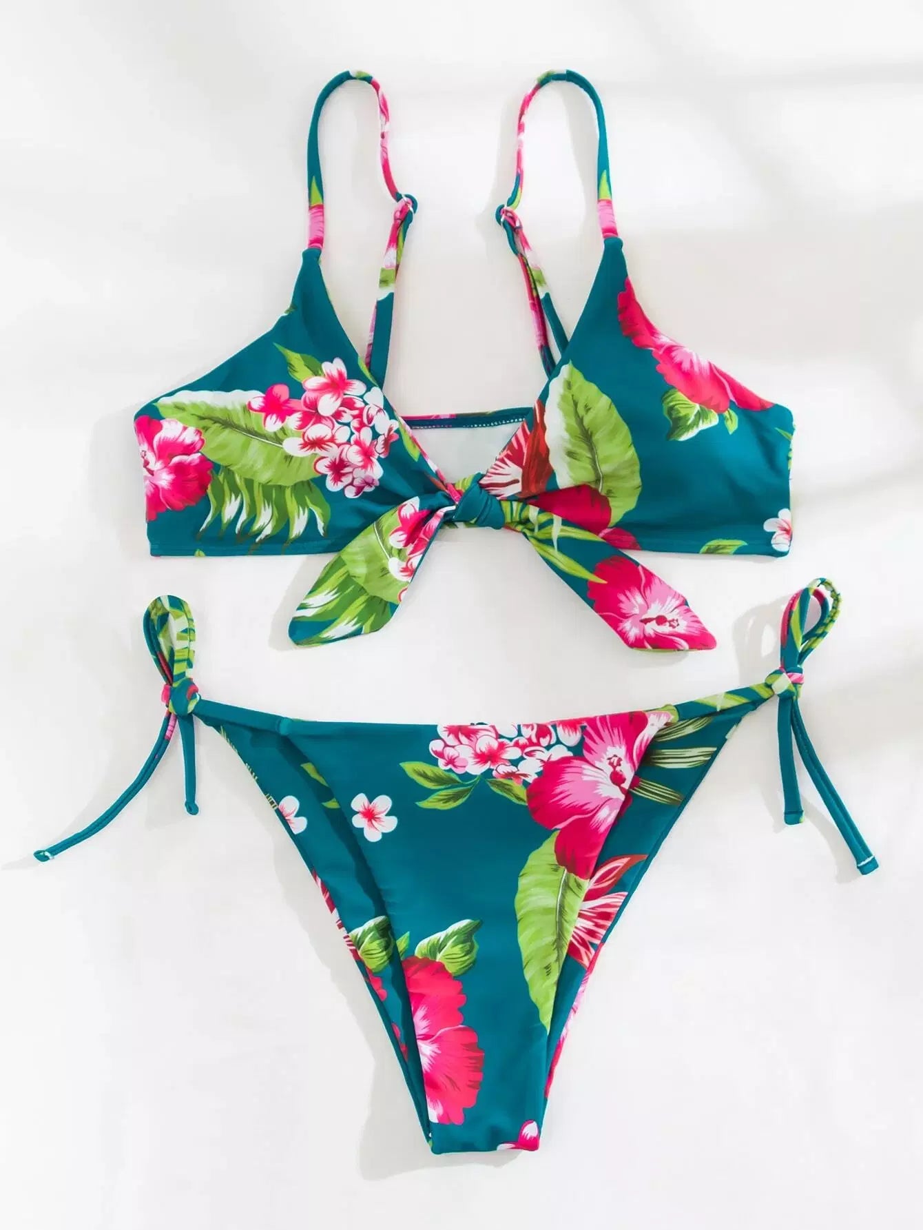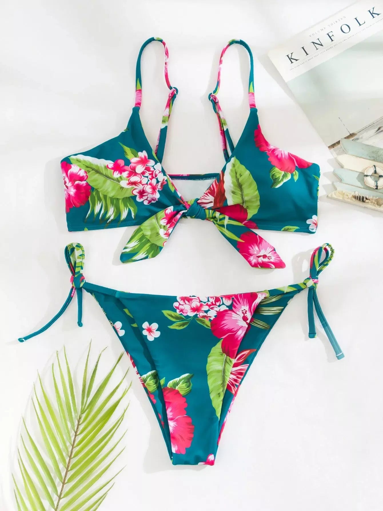 Women - Floral & Tropical Self Tie Bikini Swimsuit