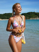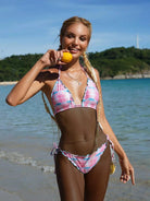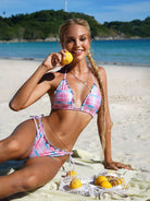 Lettuce Trim Plaid Print Bikini Swimsuit